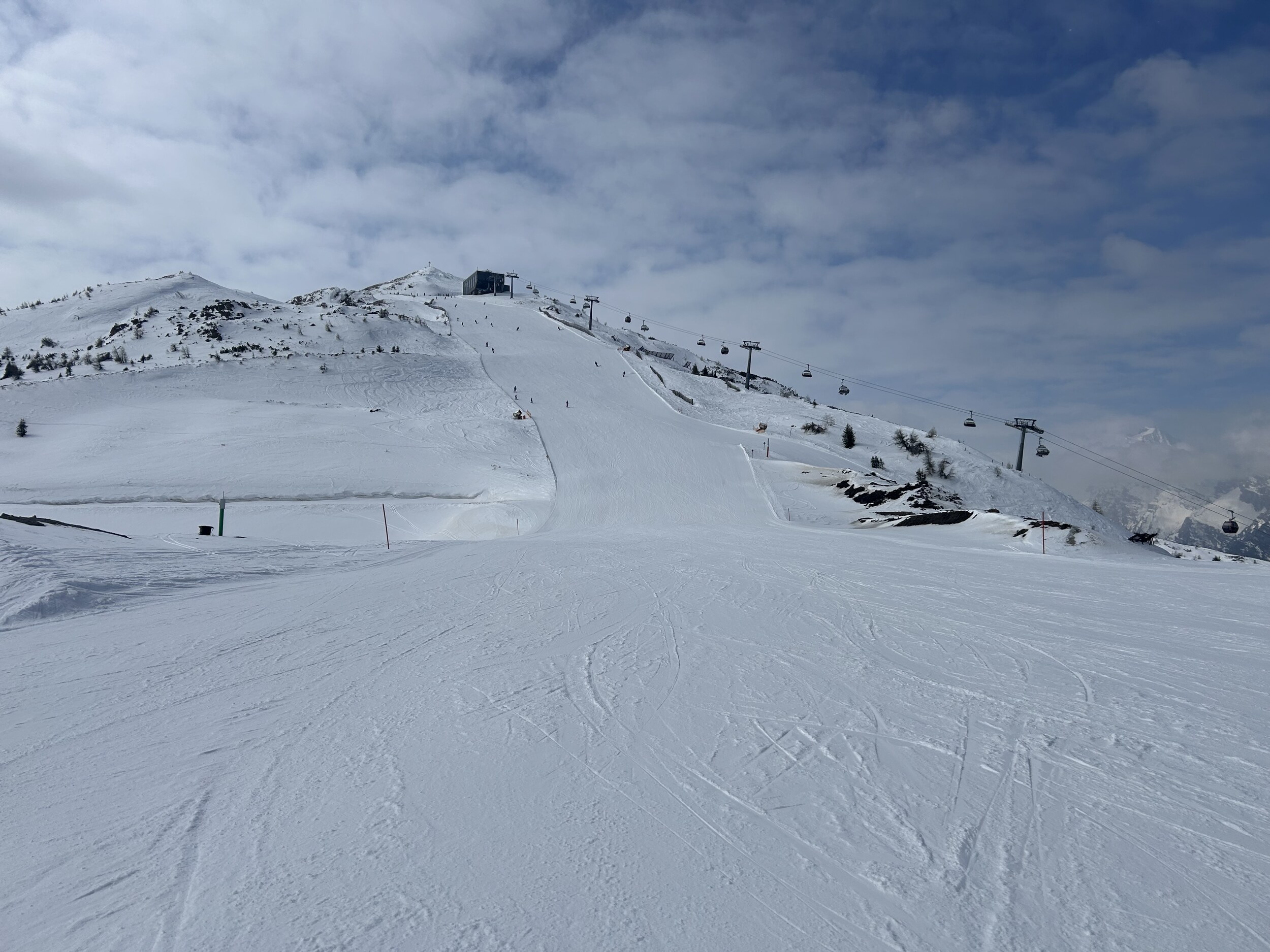 Fazit: wenig los, Pisten oben am Sessel gut (Mini Knollen aber völlig unproblematisch), Talabfahrt leider enttäuschend unten sehr glatt und im Mittelstück riesige Knollen, die es nicht schön zu fahren machen.