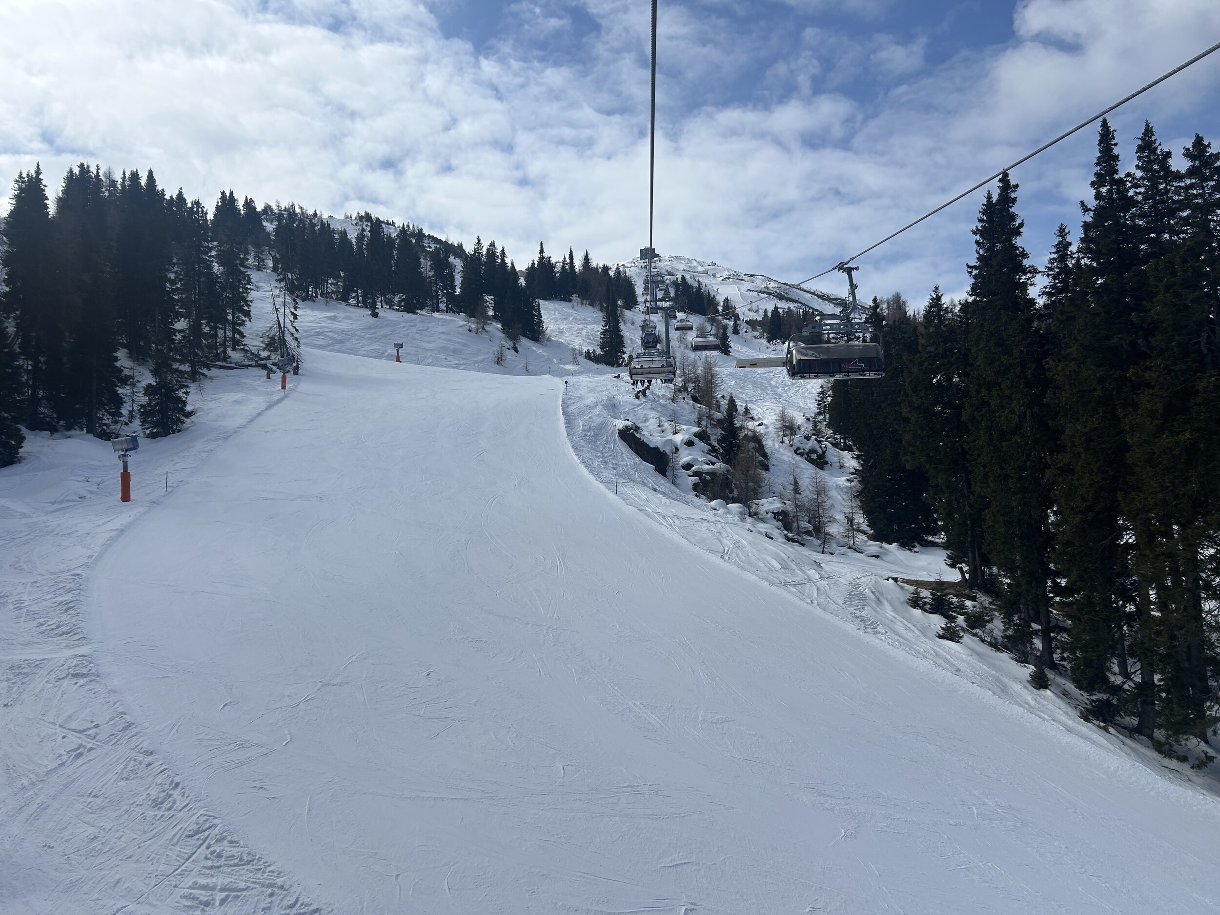 Die Pisten typisch Bergeralm, sauber präperiert und hart bis sehr hart, aber immer griffig.