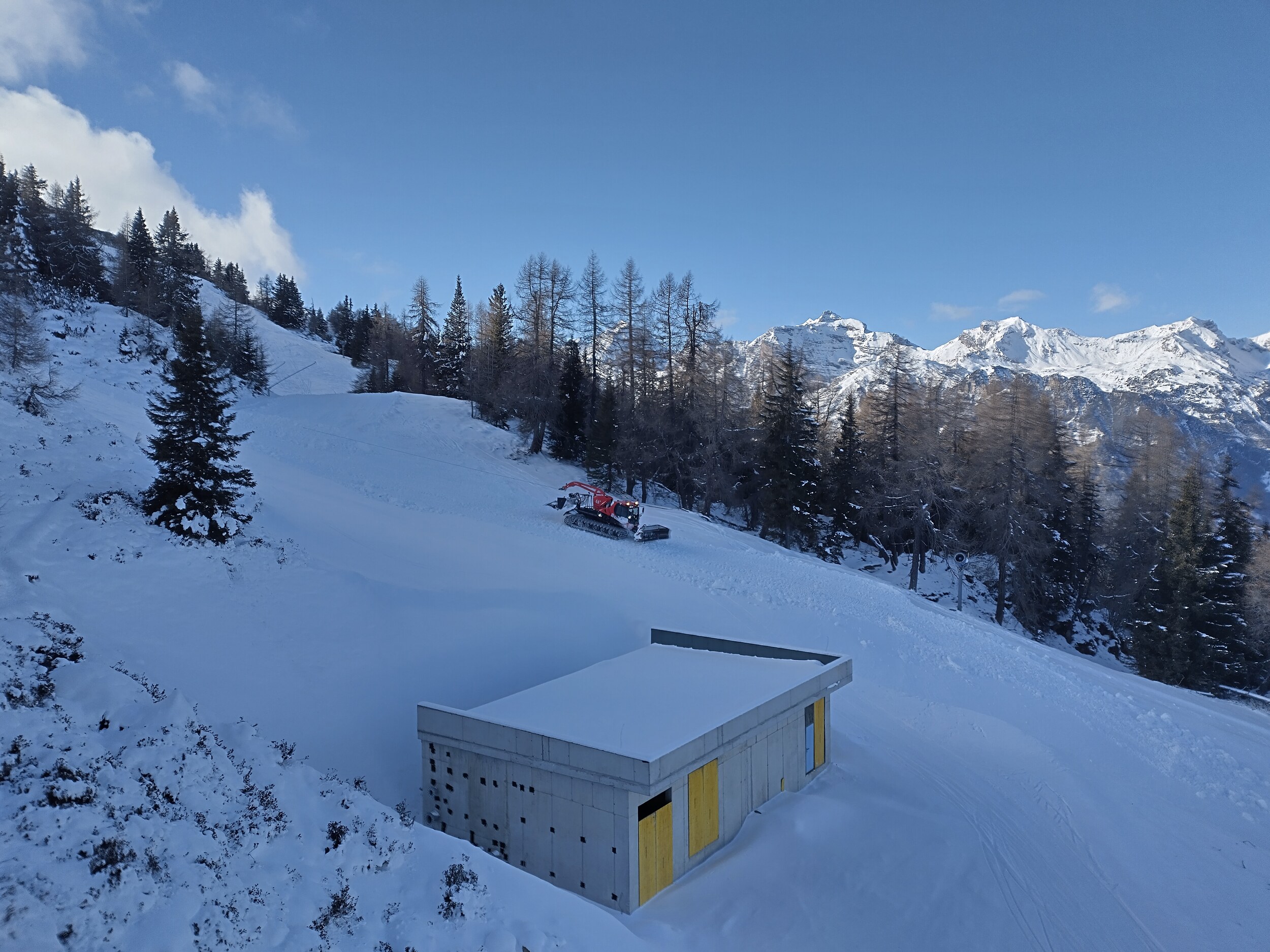 Unterhalb der neuen Pumpstation (?) führt jetzt ein als rote Piste markierter Ziehweg von der schwarzen auf die blaue Piste. Oh, laut Pistenplan ist die obere Schwarze Variante damit jetzt rot: https://www.bergeralm.net/pisten-und-mehr/ und die eigentlich nie geöffnete "Buckelpiste" sowie der untere Skiroutenteil der Manni-Pranger Piste tauchen nicht mehr auf.