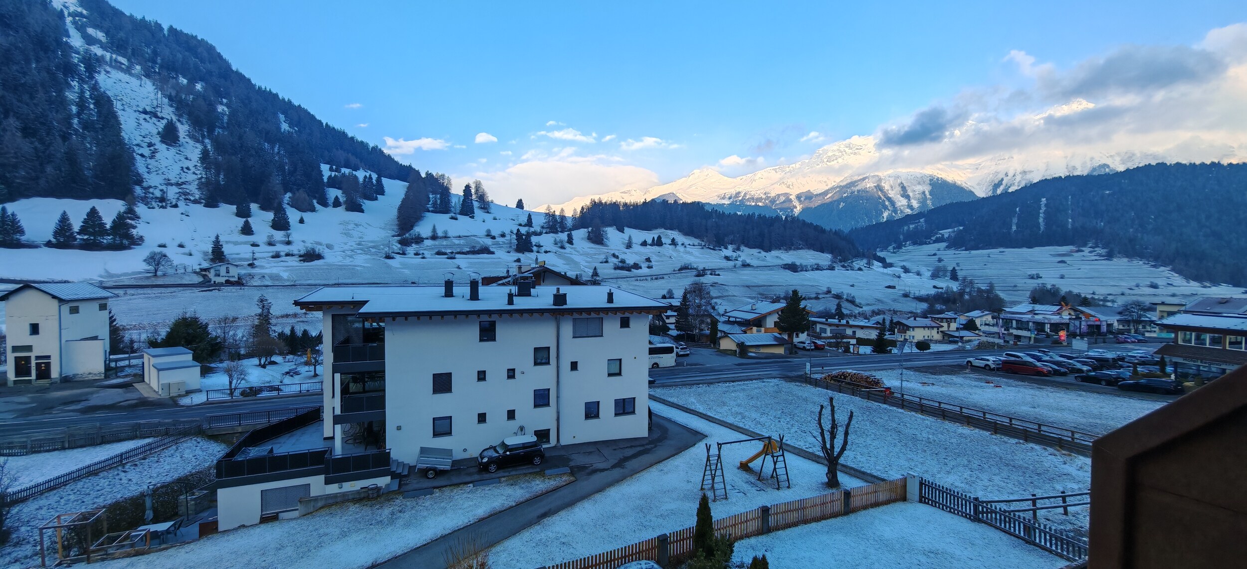 Nach einem Tag Skifahren in Nauders (auch für mich ein erster Besuch) wachte ich heute Morgen mit etwas Neuschnee auf, den ich von meinem Zimmerfenster aus sehen konnte (gemütliche, einfache Pension in Nauders).