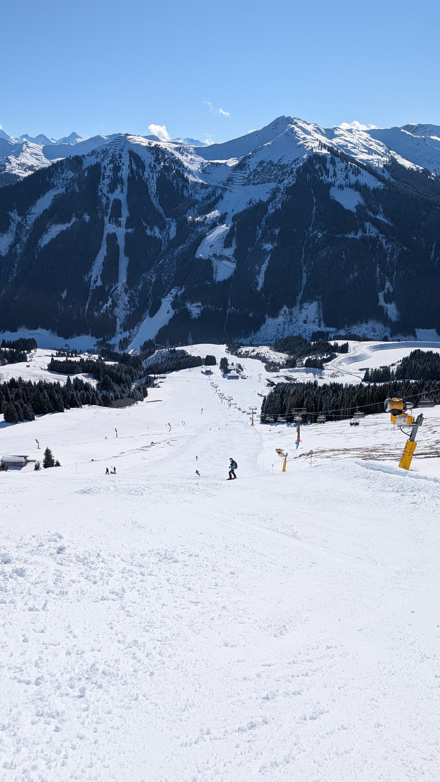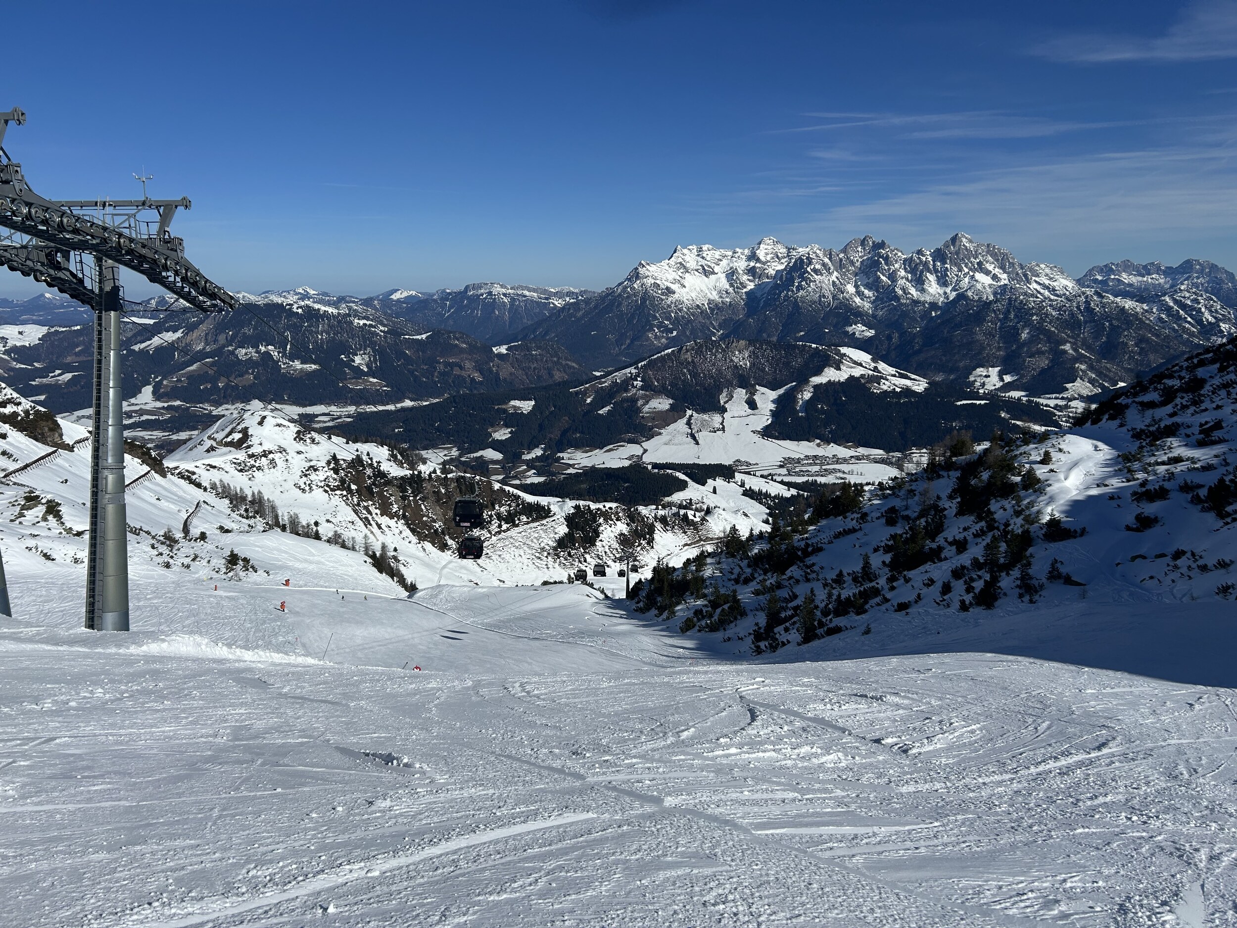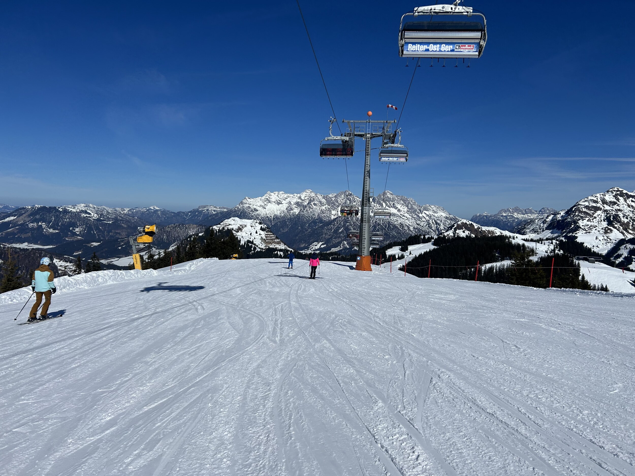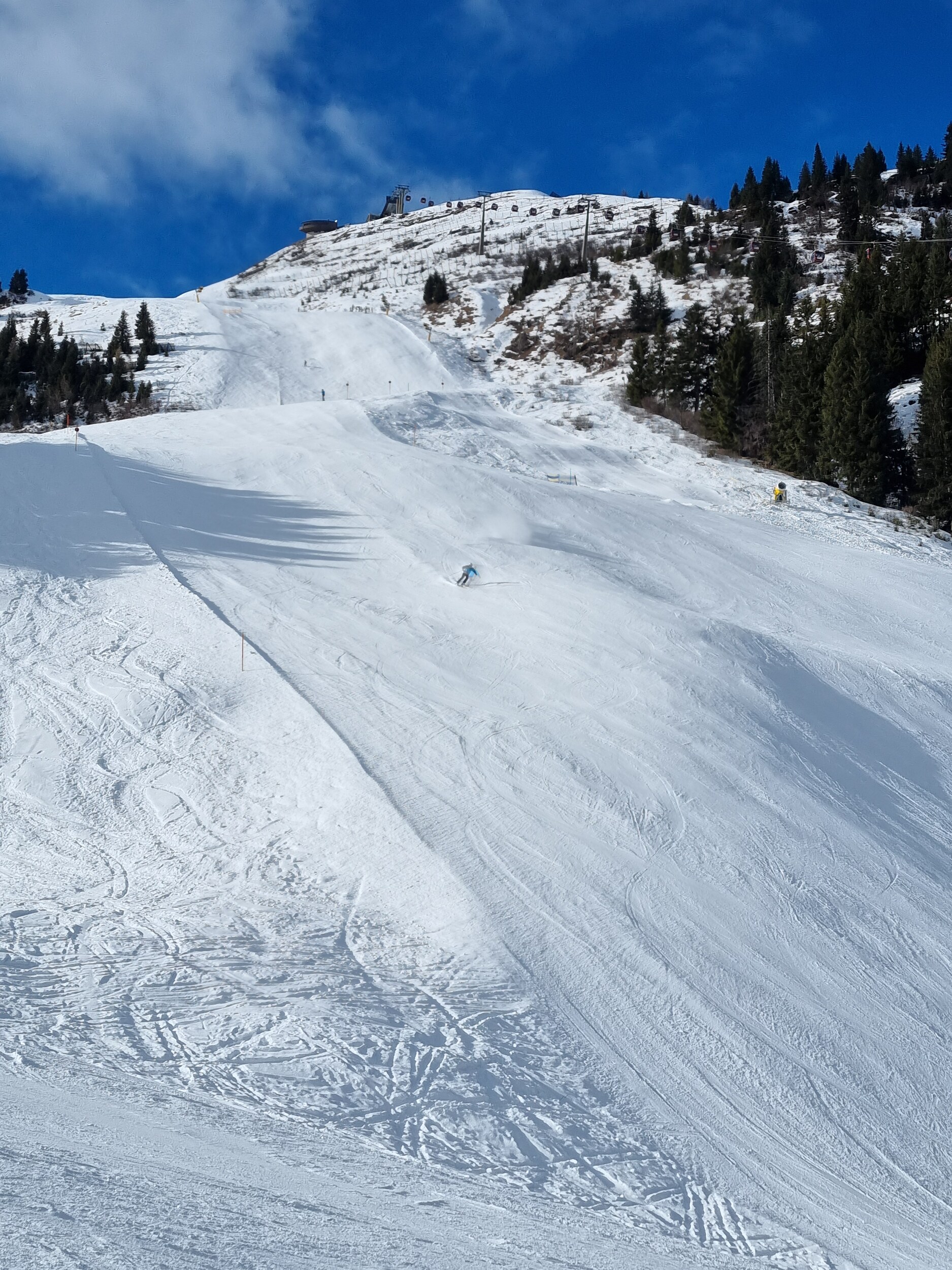 Saalbach Zentrum ( Kohlmais und Panorama 6er) am Nachmittag dann dichtes Gewusel, großteils Anfänger unterwegs dort. Die Abfahrt am Bernkogel ausgelassen (Ausblick aus der EUB hat gereicht), die hab ich noch nie gut erlebt, wahrscheinlich bin ich immer zur falschen Zeit dort. Schattberg und Fieberbrunn am späteren Nachmittag angenehm.