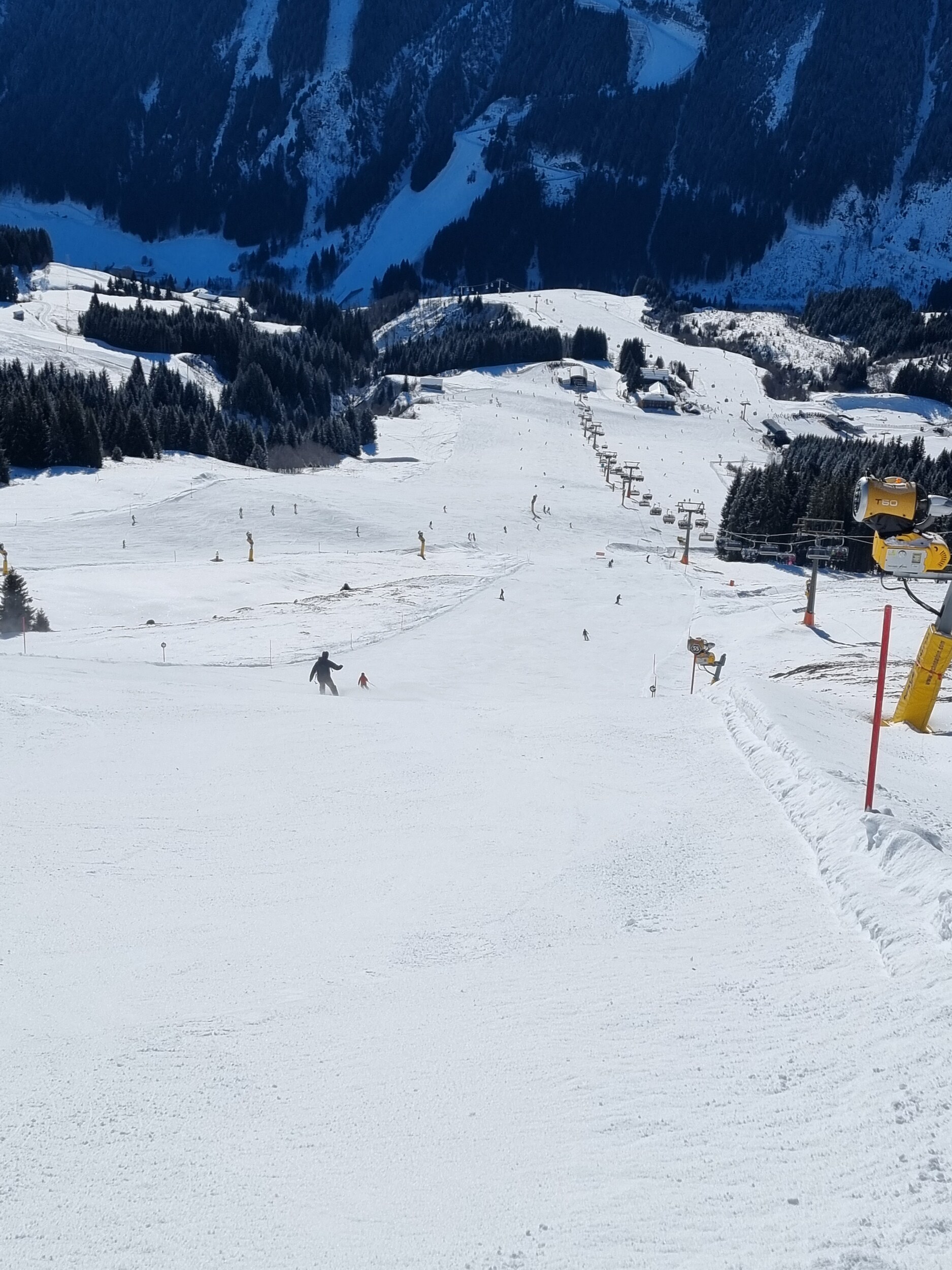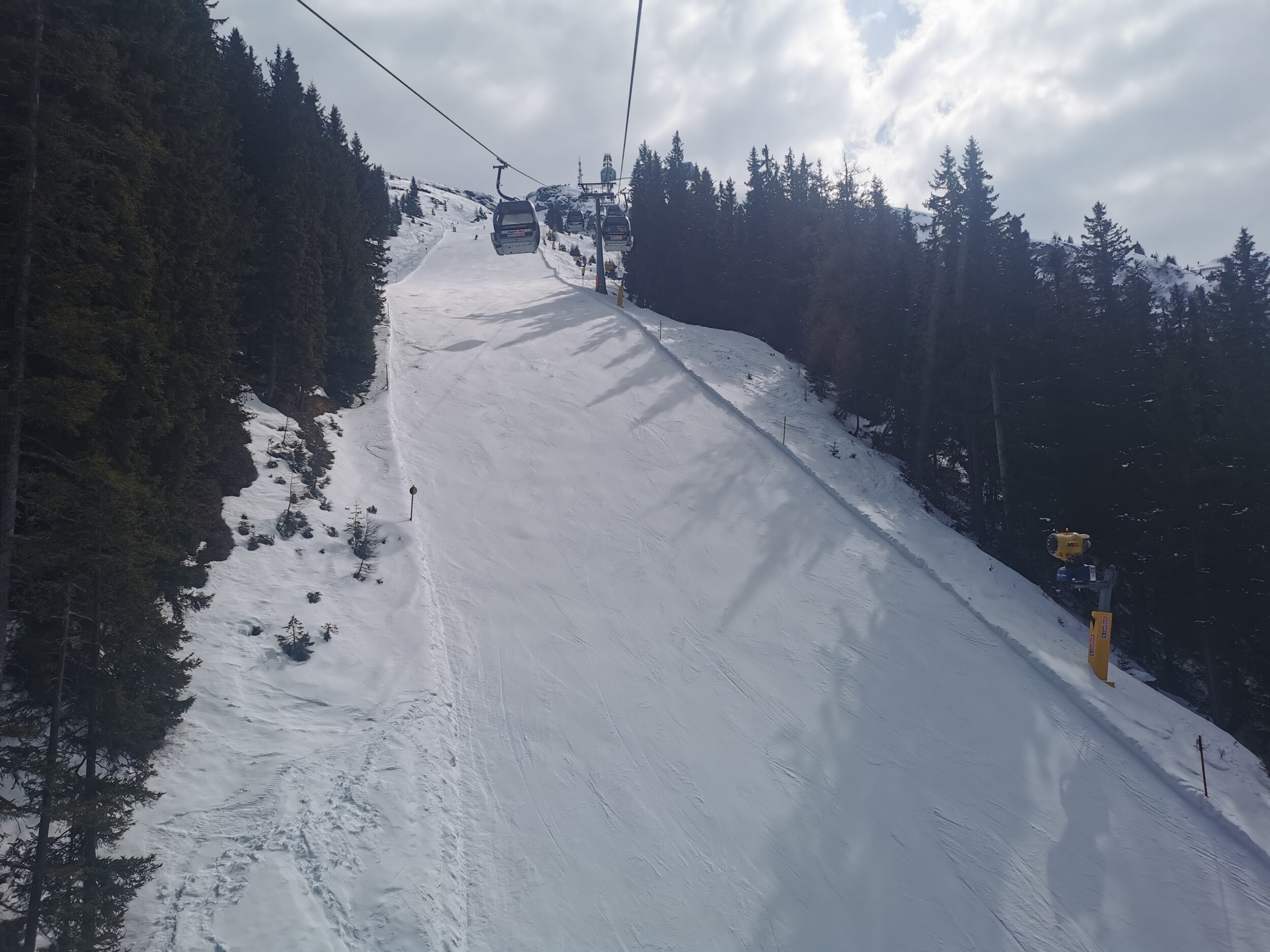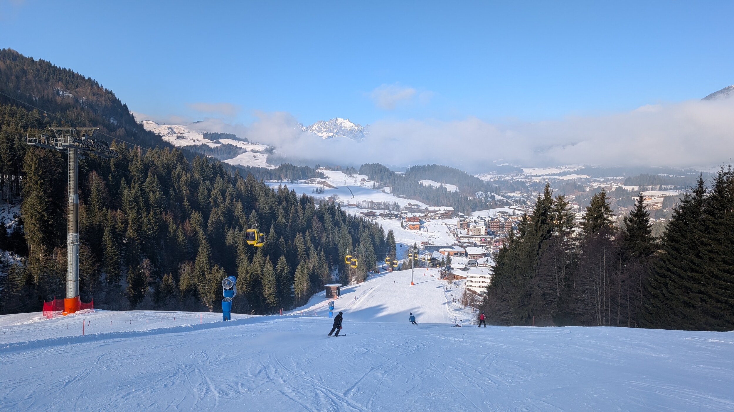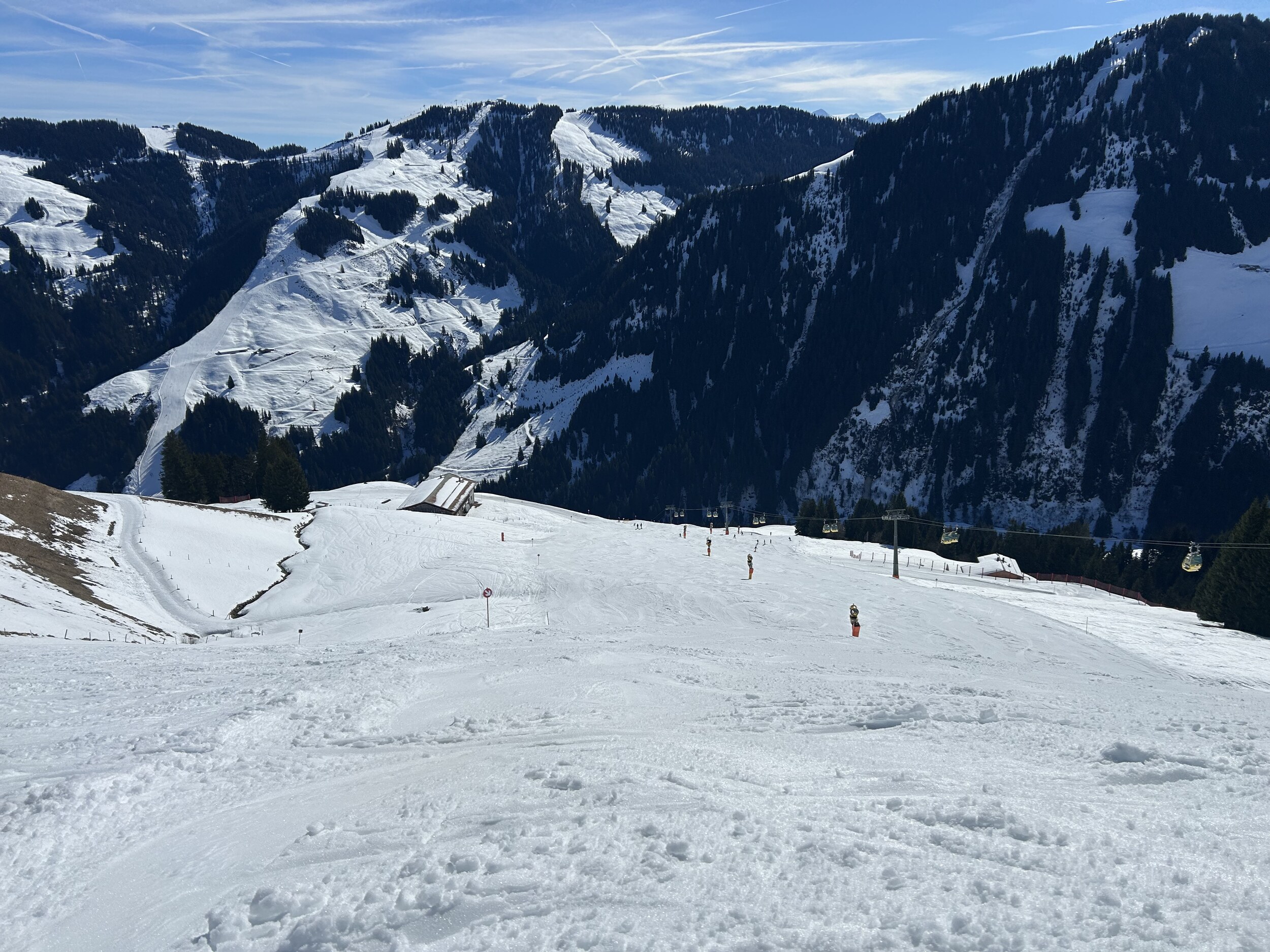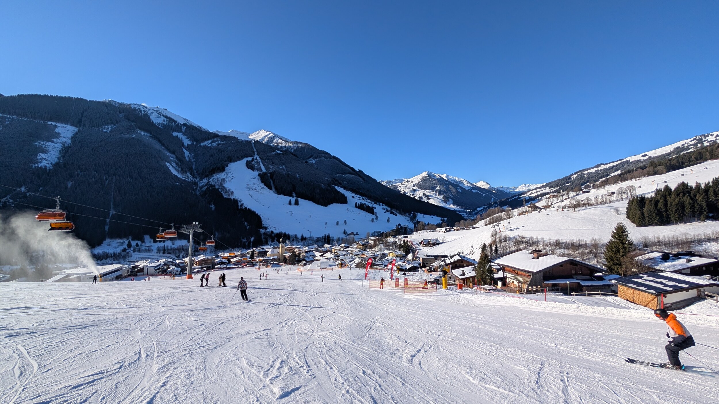 Saalbach Zentrum ( Kohlmais und Panorama 6er) am Nachmittag dann dichtes Gewusel, großteils Anfänger unterwegs dort. Die Abfahrt am Bernkogel ausgelassen (Ausblick aus der EUB hat gereicht), die hab ich noch nie gut erlebt, wahrscheinlich bin ich immer zur falschen Zeit dort. Schattberg und Fieberbrunn am späteren Nachmittag angenehm.