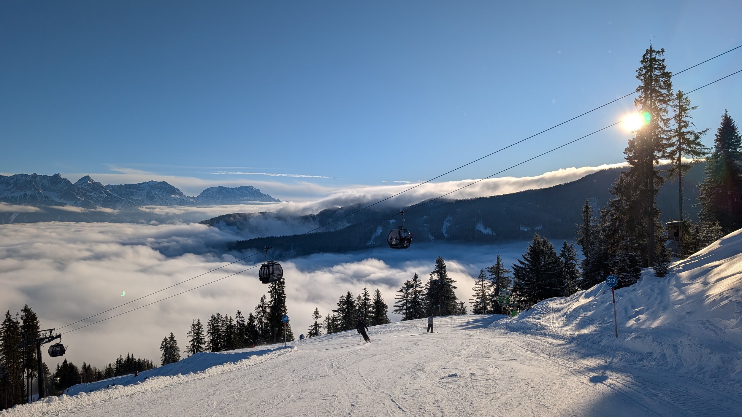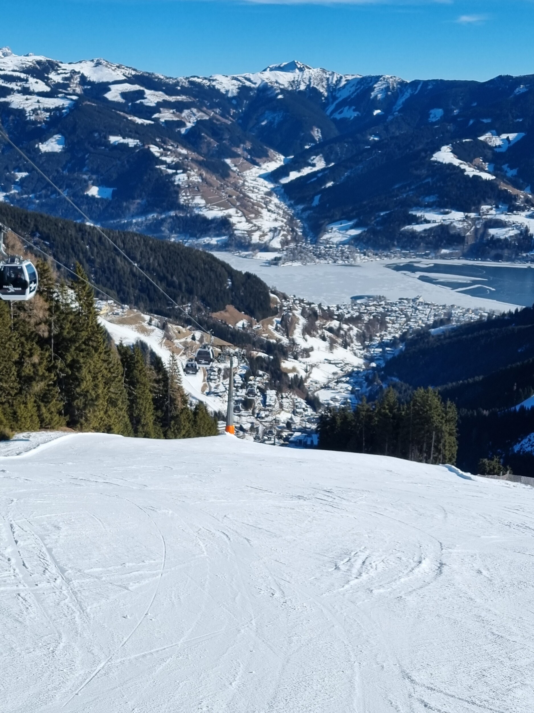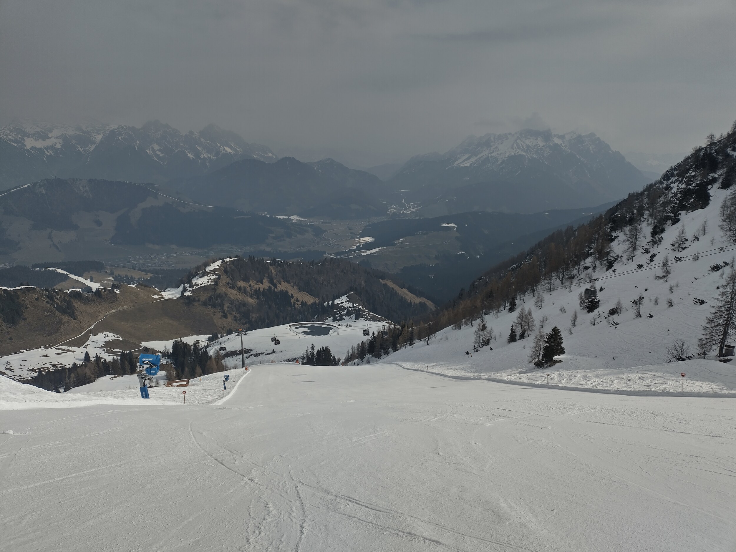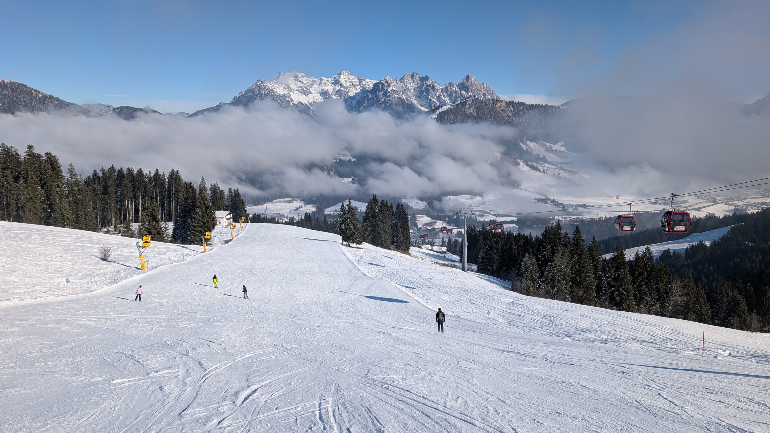 Saalbach Zentrum ( Kohlmais und Panorama 6er) am Nachmittag dann dichtes Gewusel, großteils Anfänger unterwegs dort. Die Abfahrt am Bernkogel ausgelassen (Ausblick aus der EUB hat gereicht), die hab ich noch nie gut erlebt, wahrscheinlich bin ich immer zur falschen Zeit dort. Schattberg und Fieberbrunn am späteren Nachmittag angenehm.