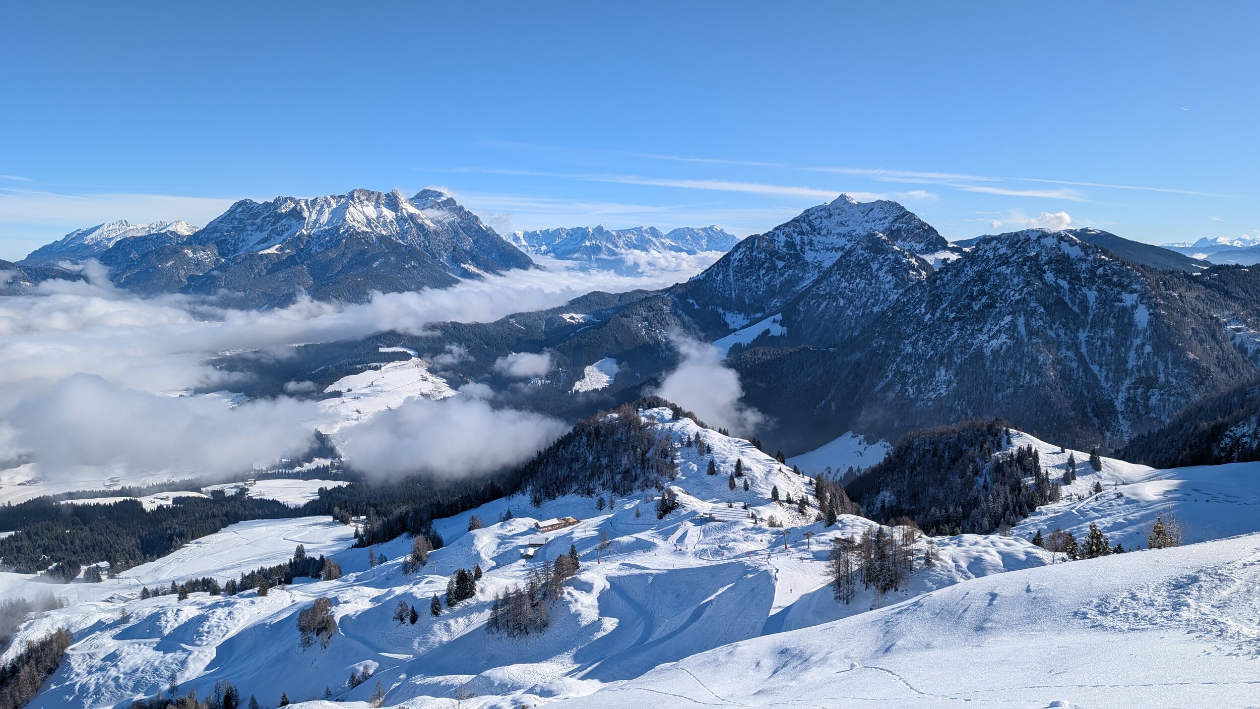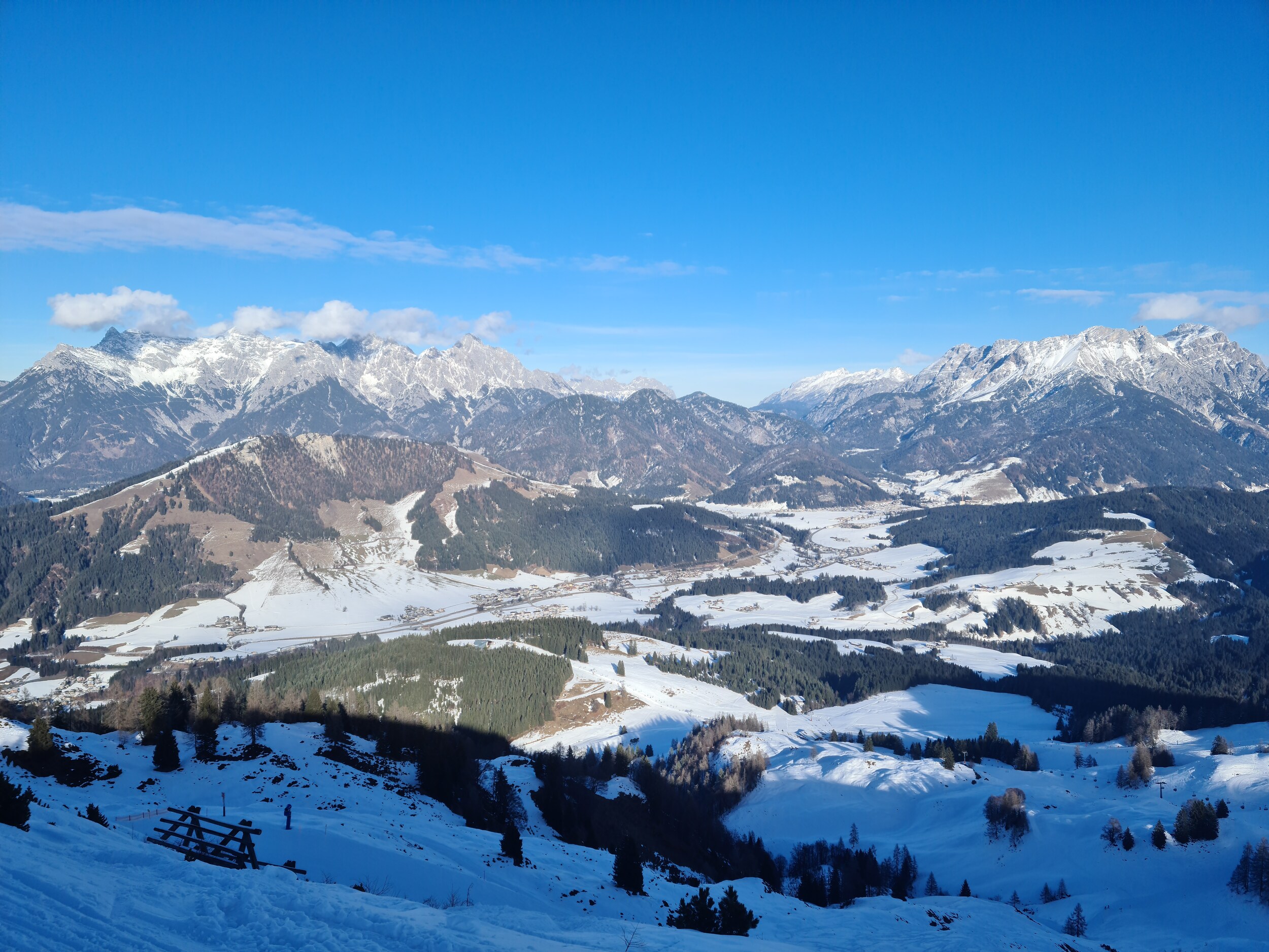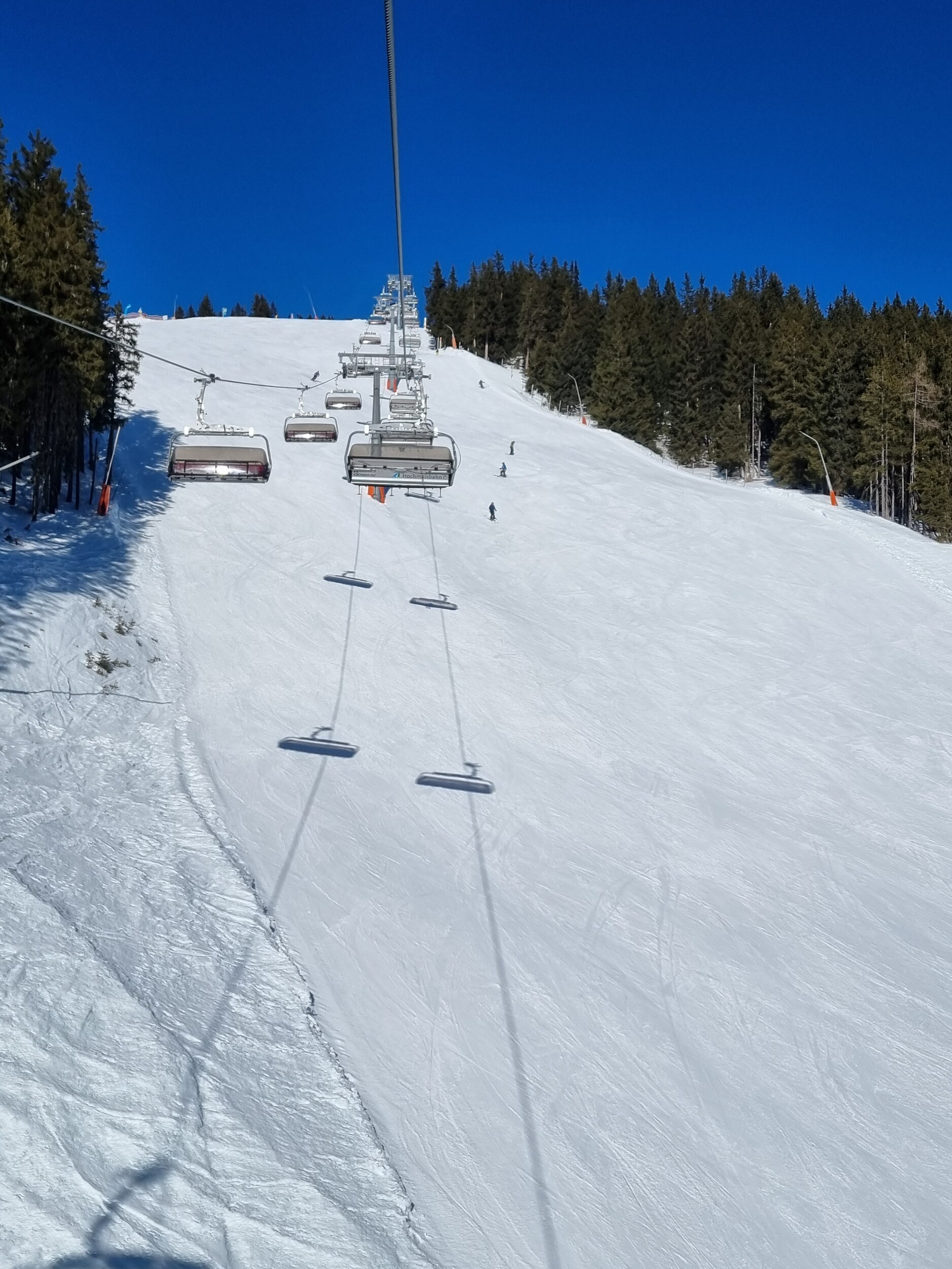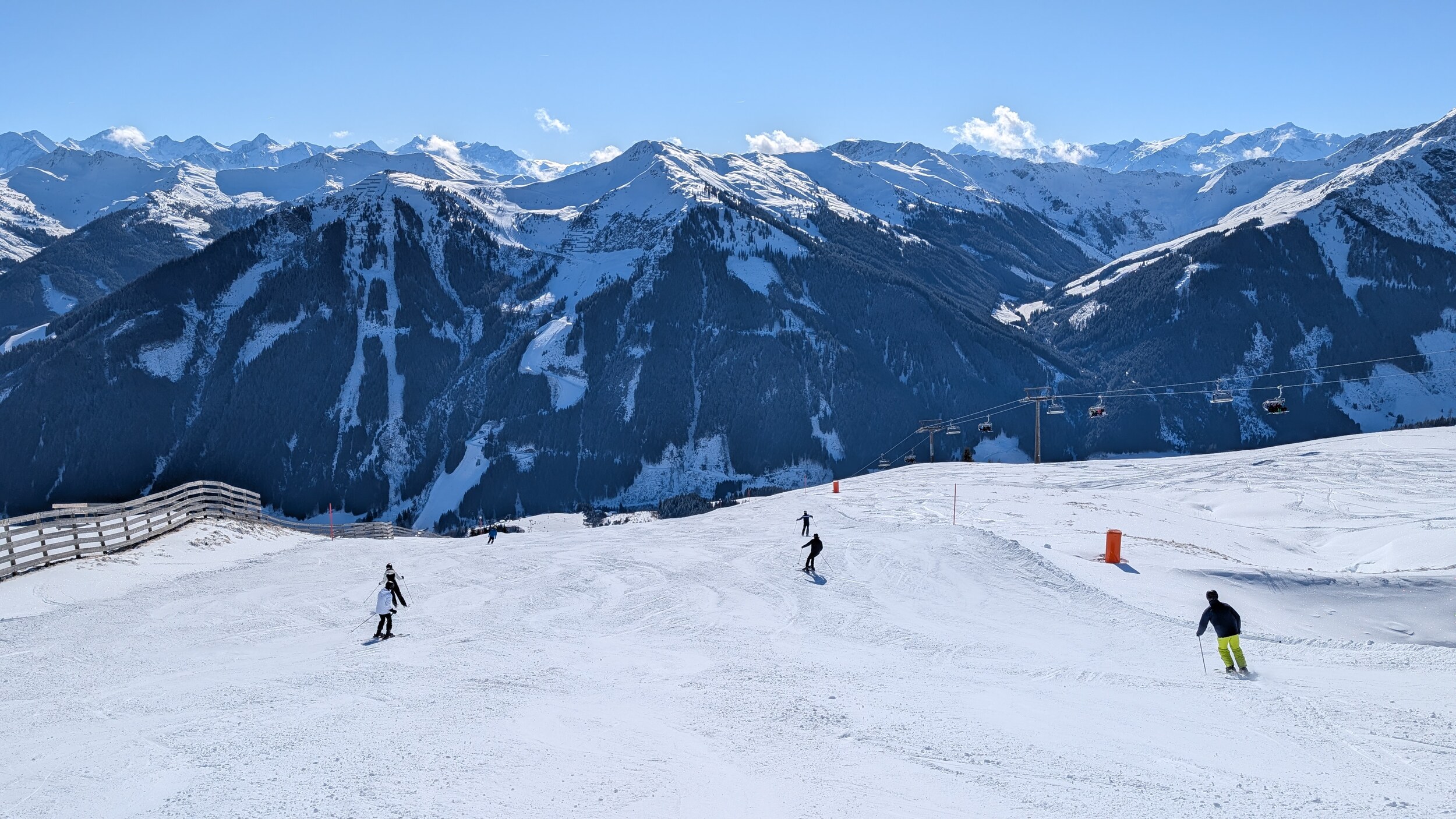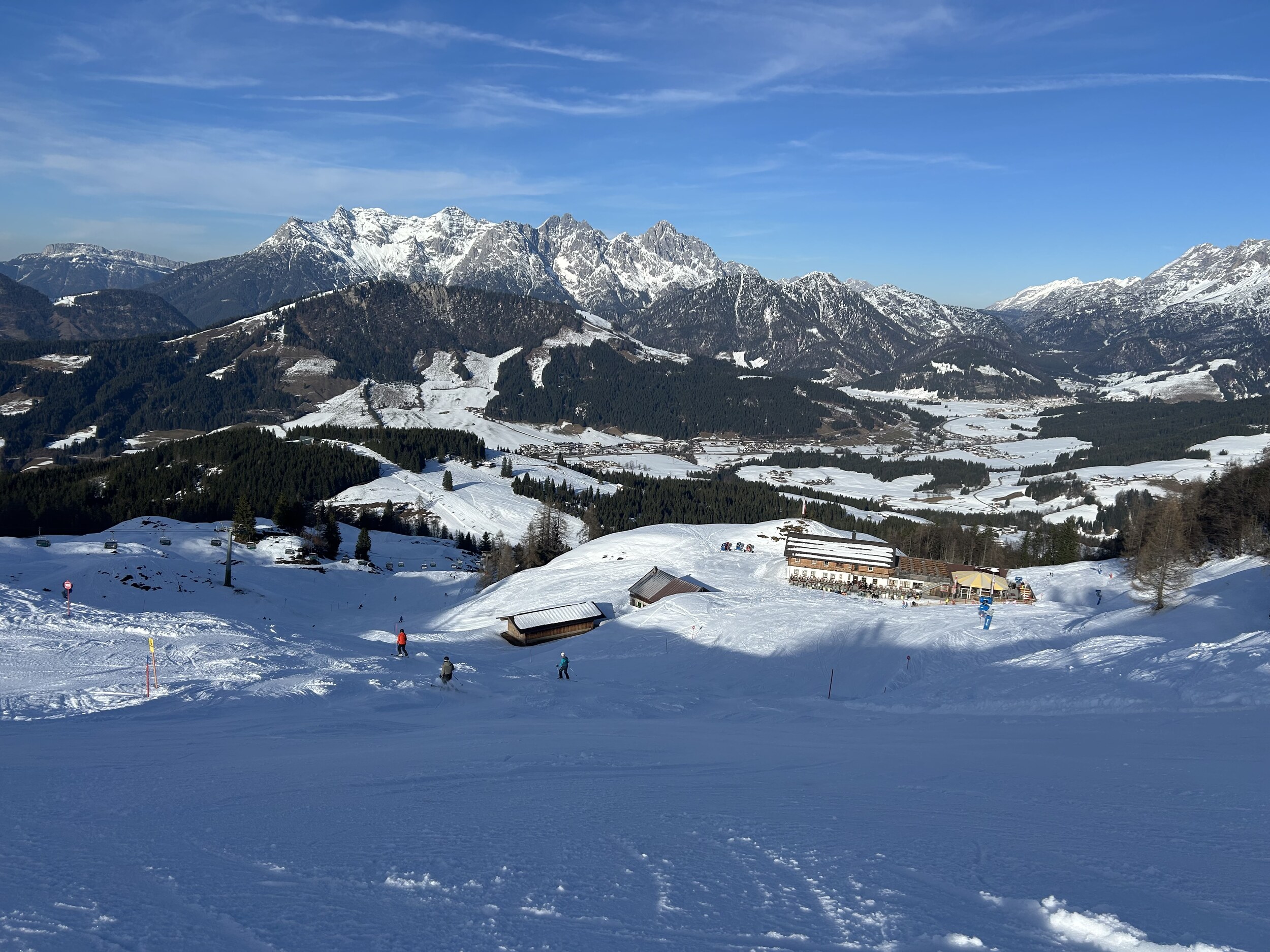 Saalbach Zentrum ( Kohlmais und Panorama 6er) am Nachmittag dann dichtes Gewusel, großteils Anfänger unterwegs dort. Die Abfahrt am Bernkogel ausgelassen (Ausblick aus der EUB hat gereicht), die hab ich noch nie gut erlebt, wahrscheinlich bin ich immer zur falschen Zeit dort. Schattberg und Fieberbrunn am späteren Nachmittag angenehm.