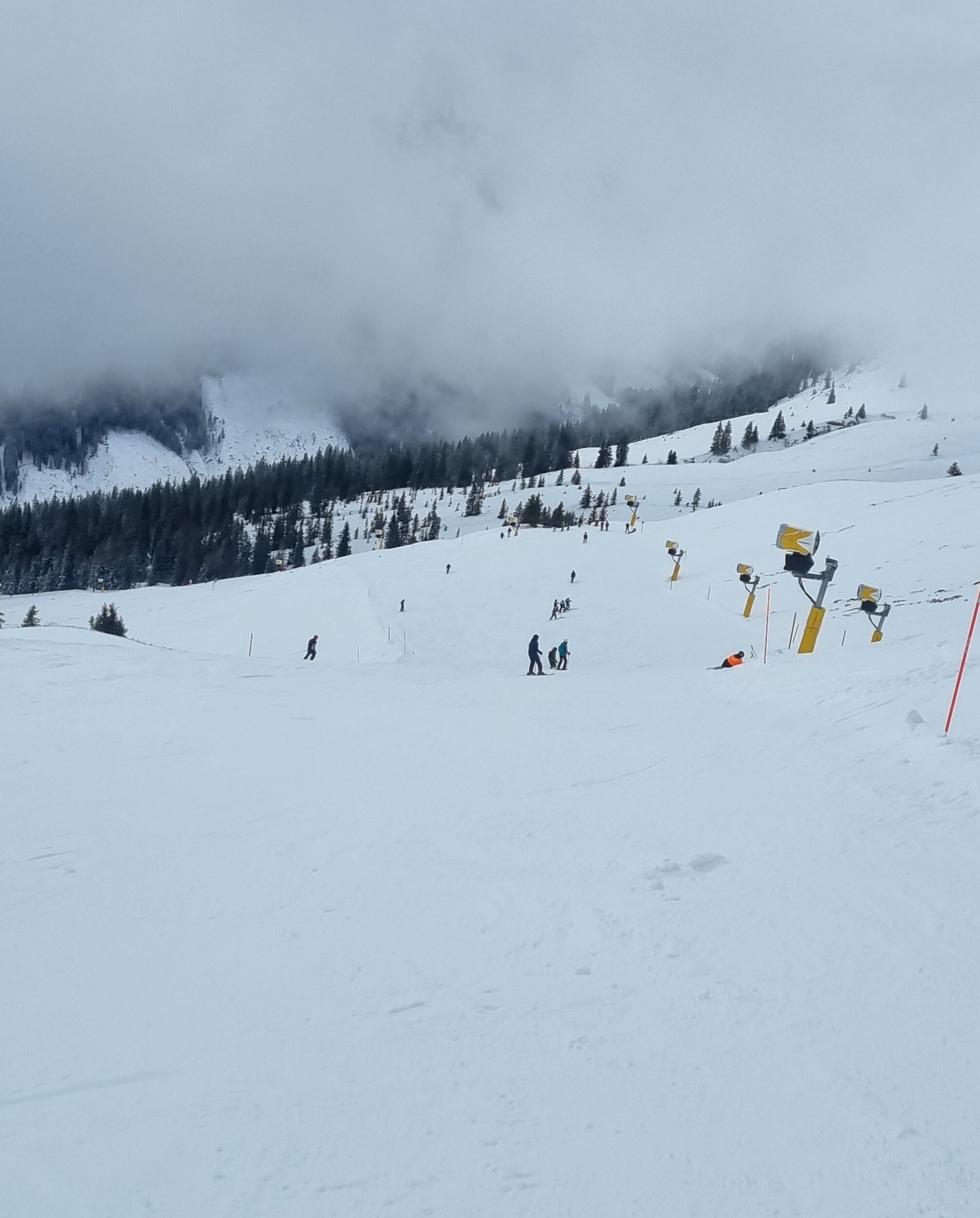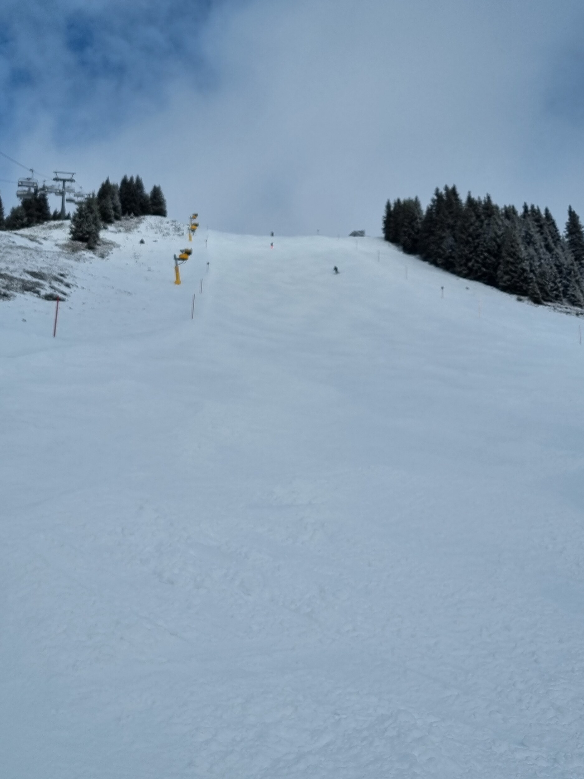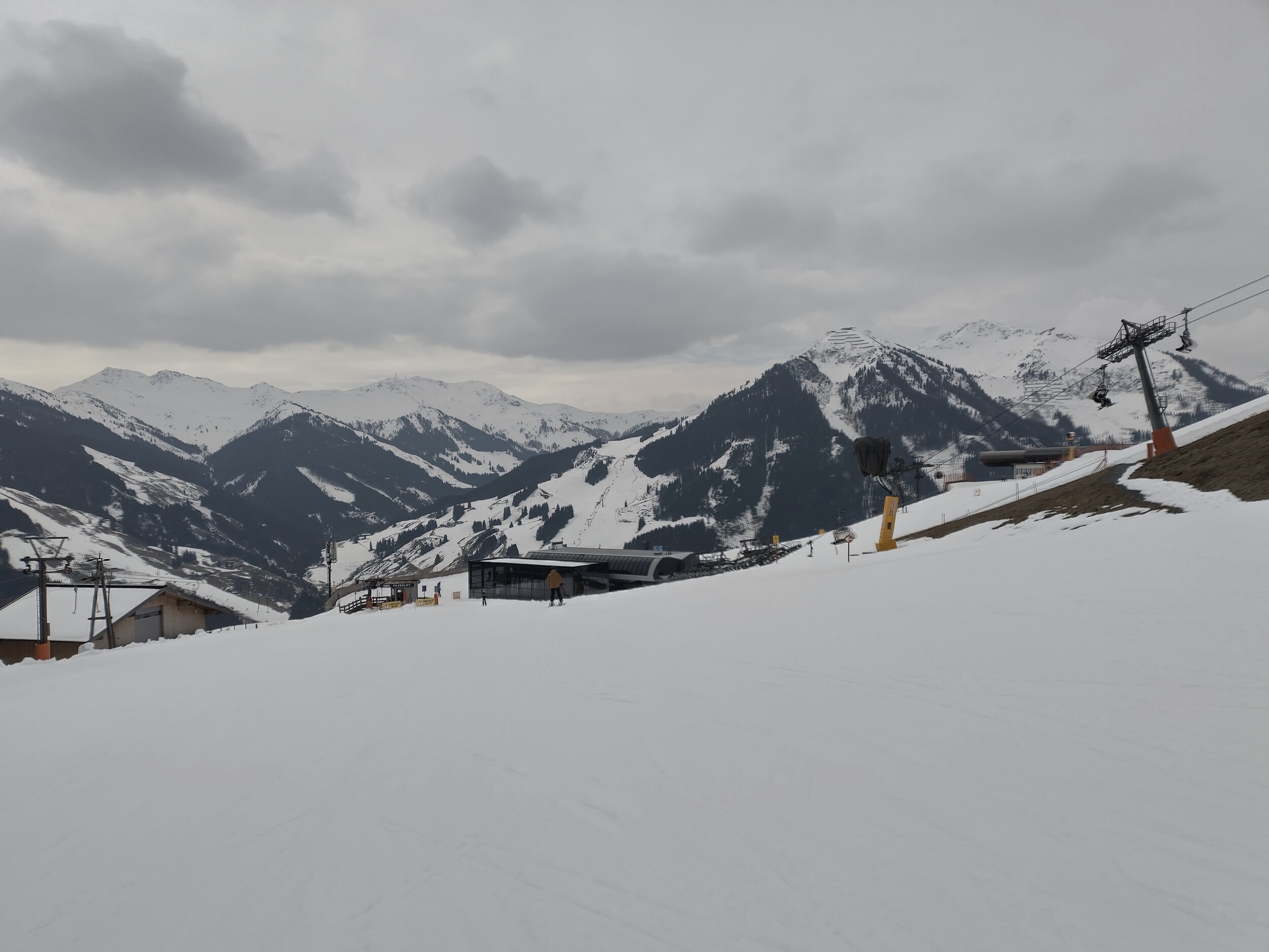 Bewölkter Start in Fieberbrunn. Über Nacht bisschen Neuschnee, entsprechend sind einige Pisten schon zusammengeschoben, andere gehen aber immer noch schön zu fahren. In Saalbach und Hinterglemm ist die Sicht passabel.