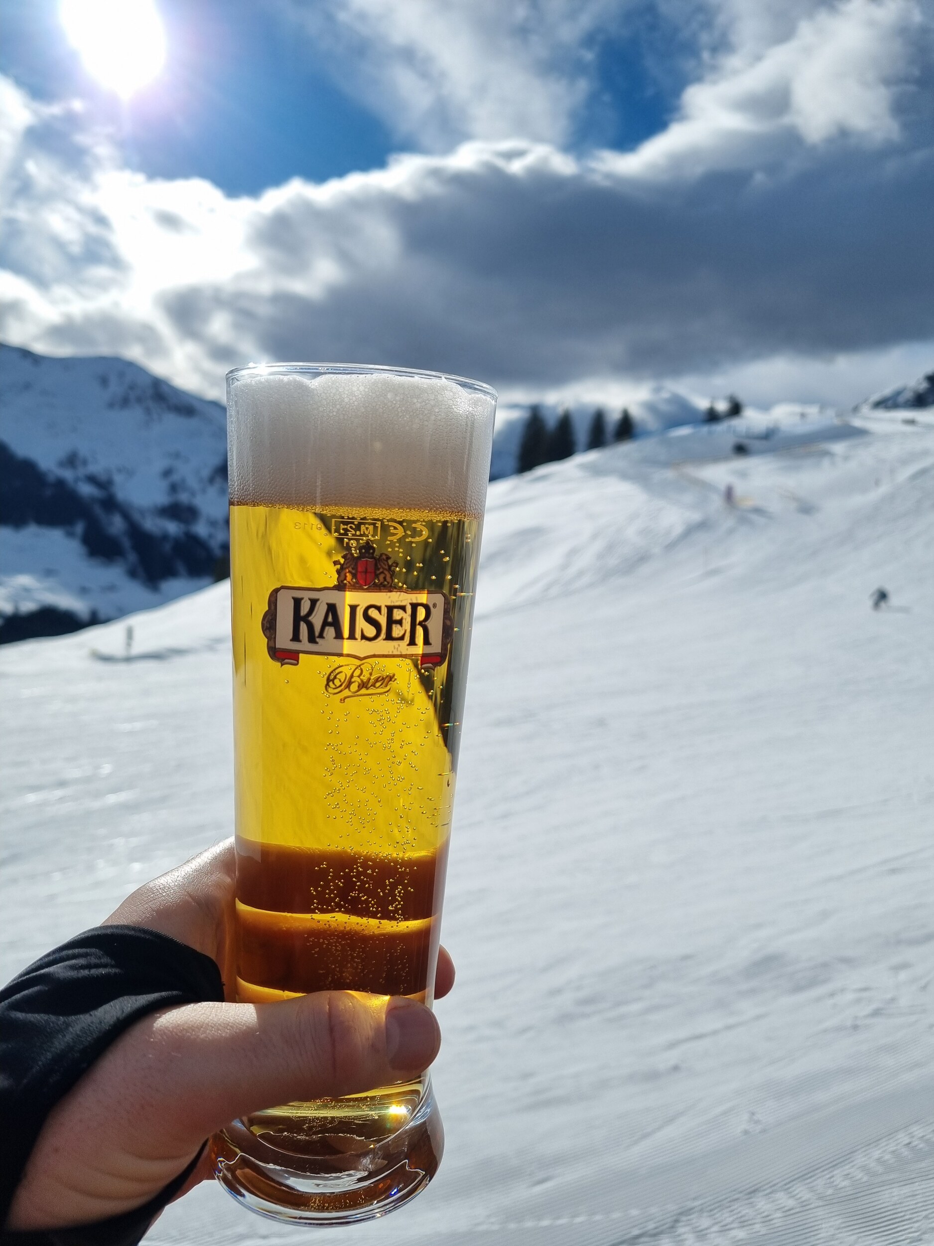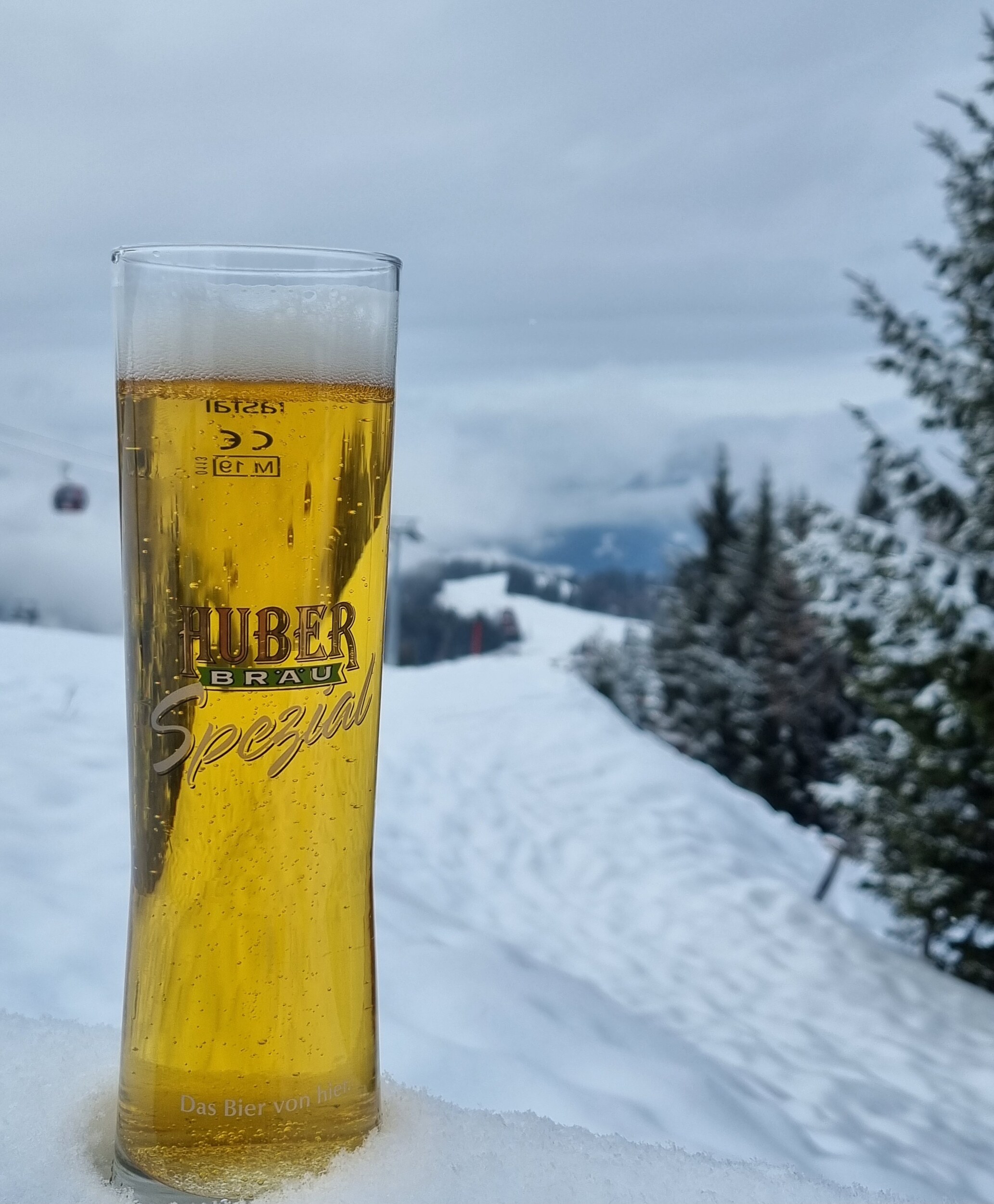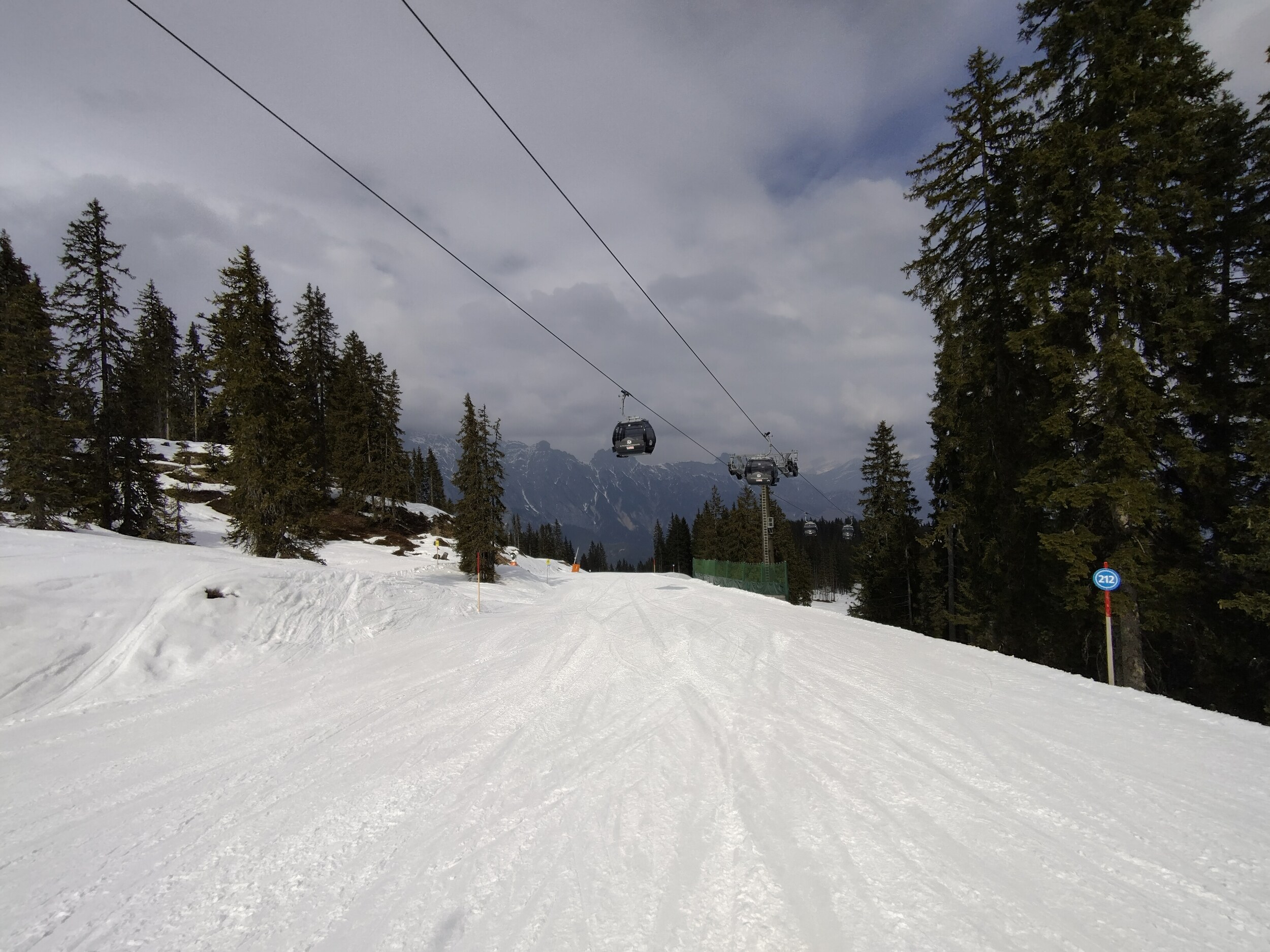 Nach dem Überschreiten der Bundesländergrenze wird dann alles schlechter. Klingt komisch, war aber so. Die Sicht ließ nach und die Schneebindungen auf der Piste wurden schlechter, immer mal wieder mit Eisplatten oder Knollen. Dazu deutlich mehr Andrang, aber immer noch auf sehr humanem Niveau, anstehen musste man auch in Saalbach und Hinterglemm nicht, dafür sich aber die Kabinen oft mit Fremden teilen, und auf den Pisten öfter mal verirrten Skianfängern ausweichen.