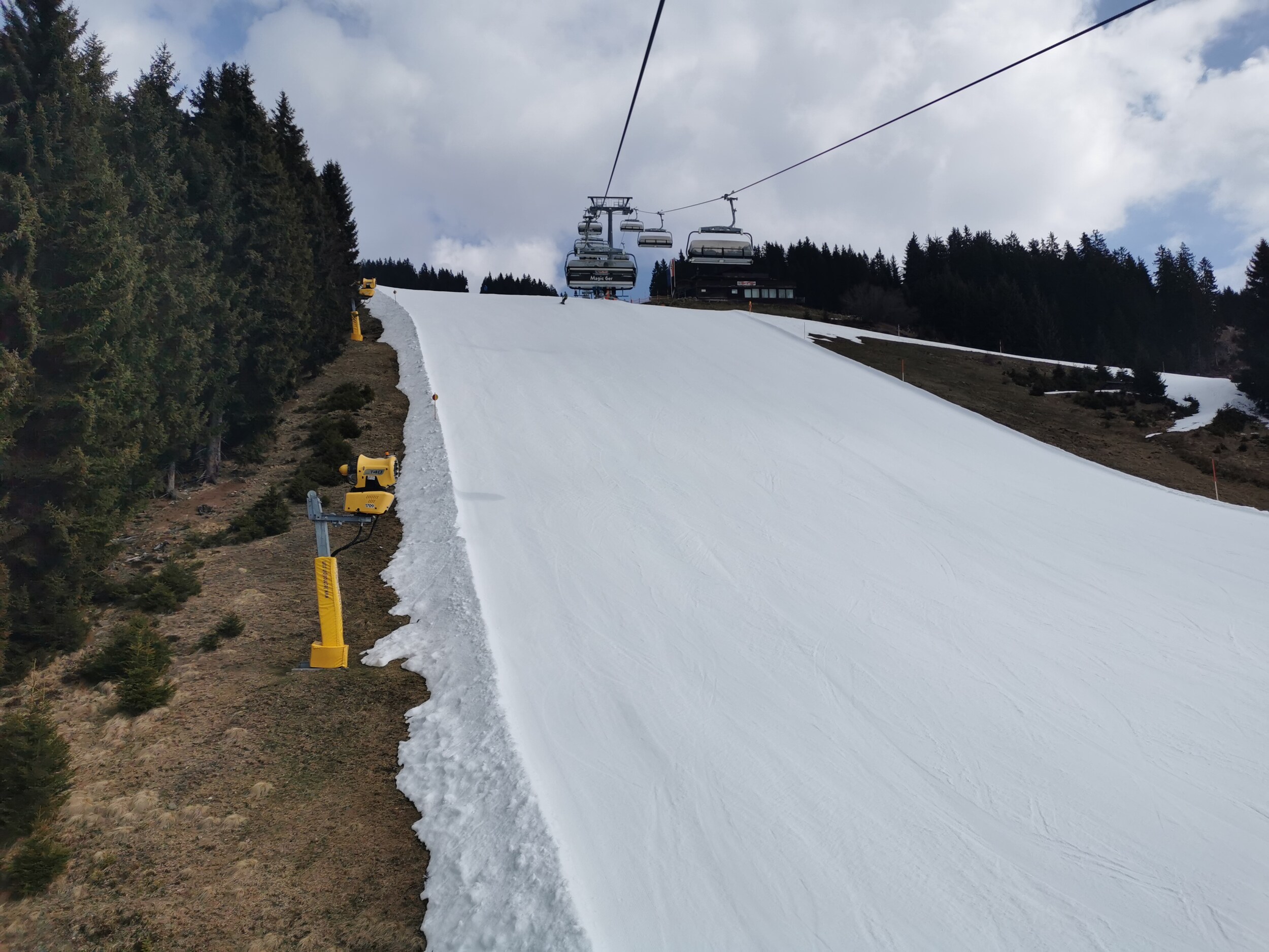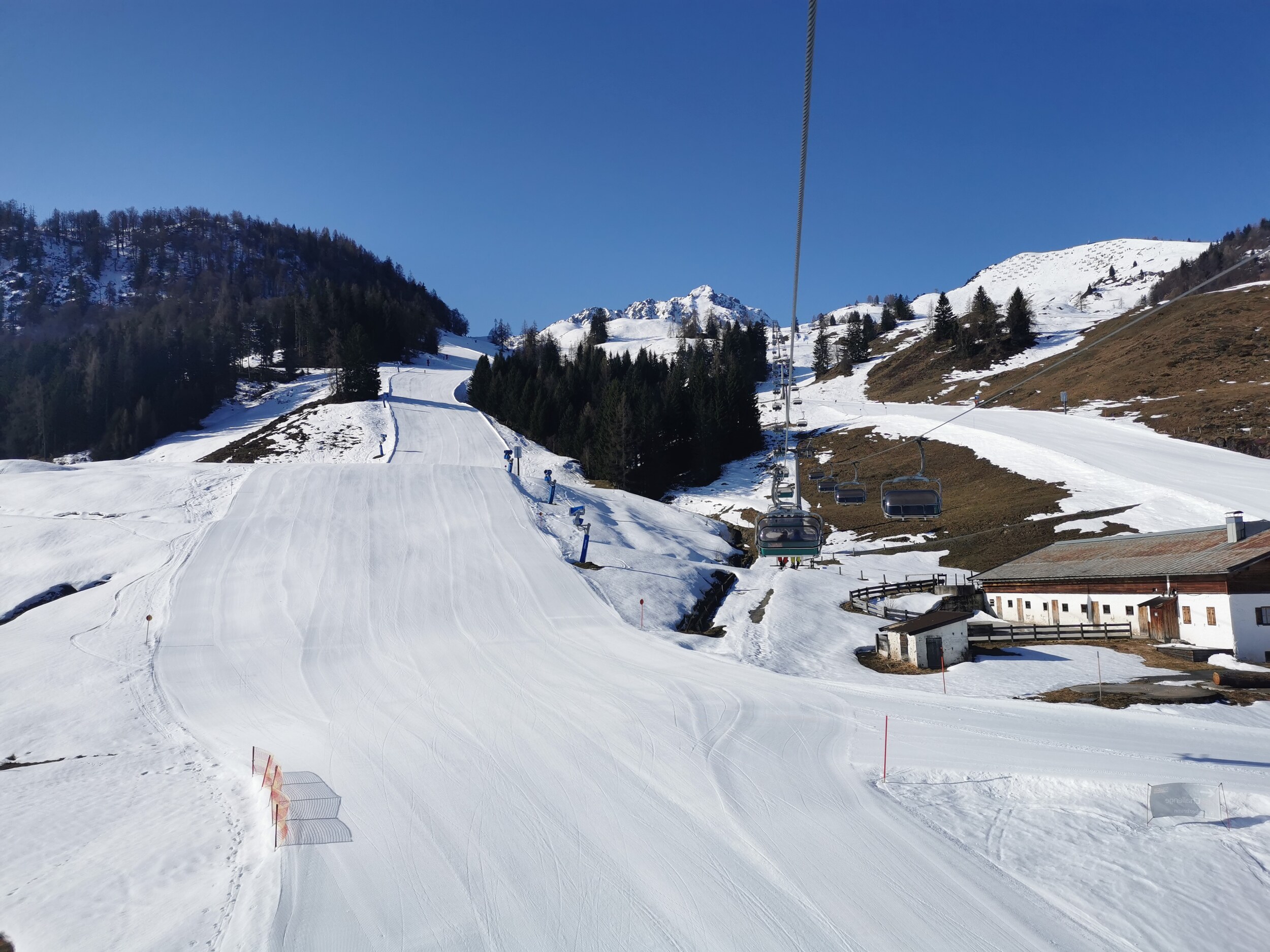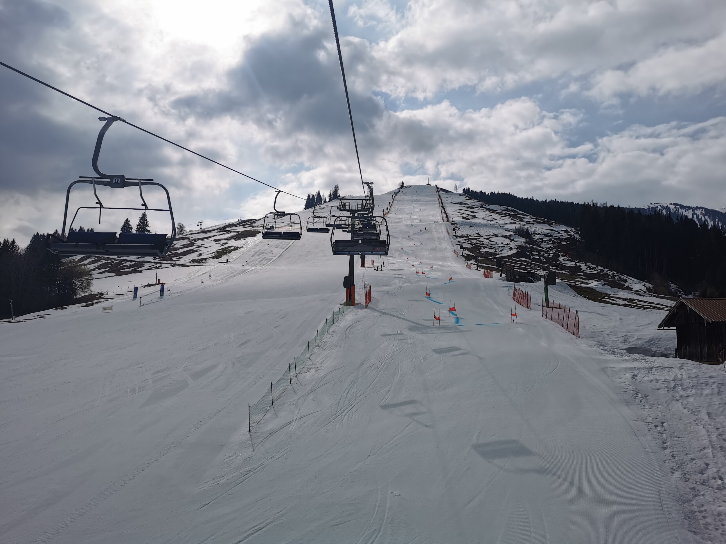 In Fieberbrunn wurde tatsächlich der Gatterlift aufgebügelt. Der Abfahrt dazu fehlt aber noch einiges an Schnee.