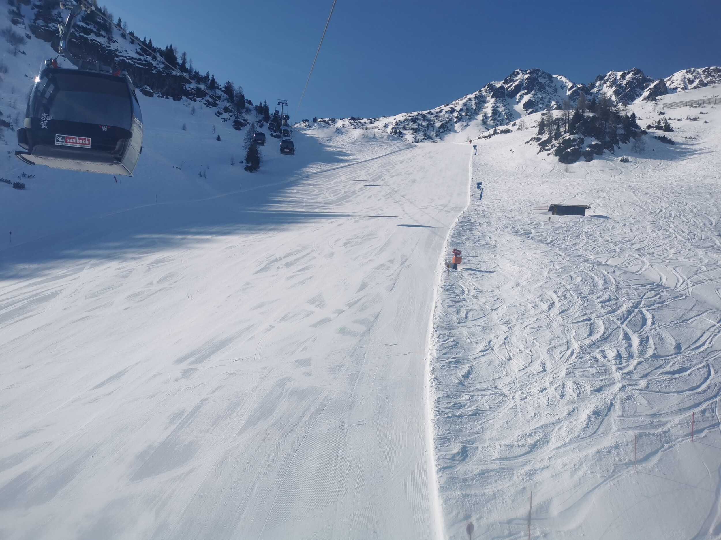 Keine lässige Gruppenumlaufbahn mehr. Keine Doppelsesselbahn. (Da hat Madonna die Campiglio oder Vogel Ski Resort die spannenderen Anlagen.)
