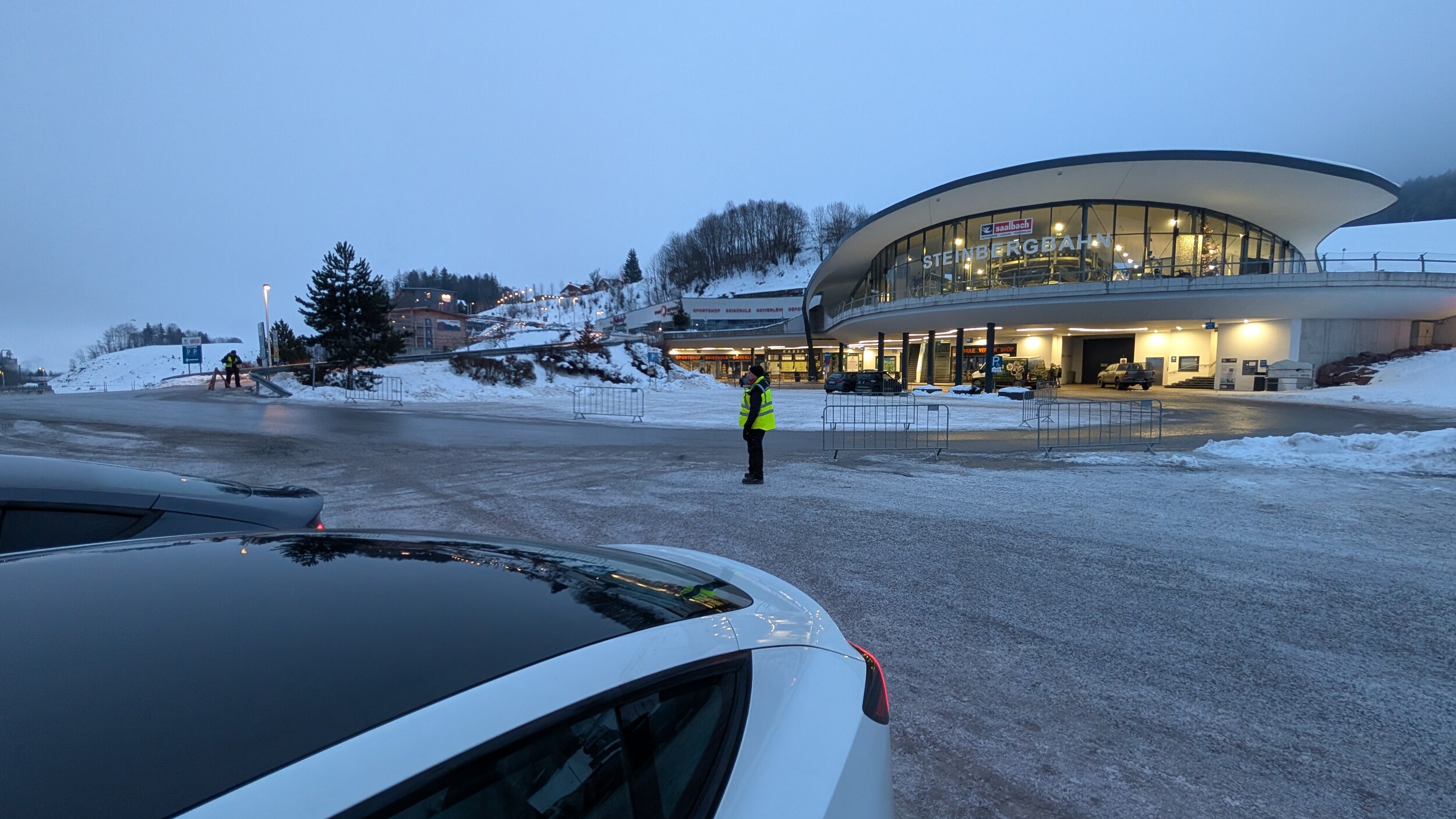 Der Parkplatz direkt vor der Gondelbahn ist kostenlos, so gehört es sich!