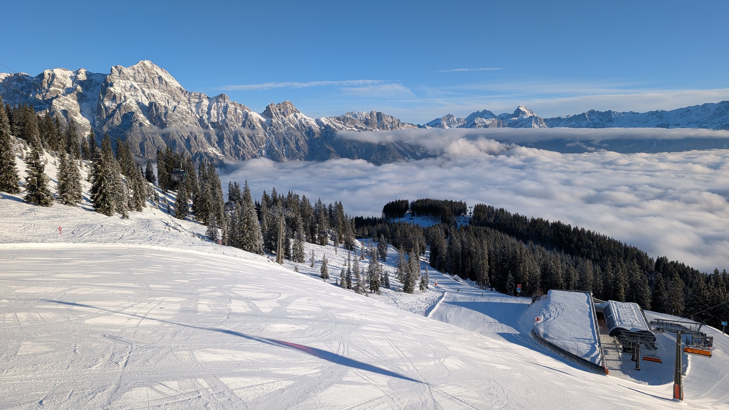 Also ein schneereicher Dezember und die Skitage vor Weihnachten bei strahlendem Sonnenschein sind meistens gewaltig. Da kann es schon sein, dass man manche Piste für sich allein hat.
