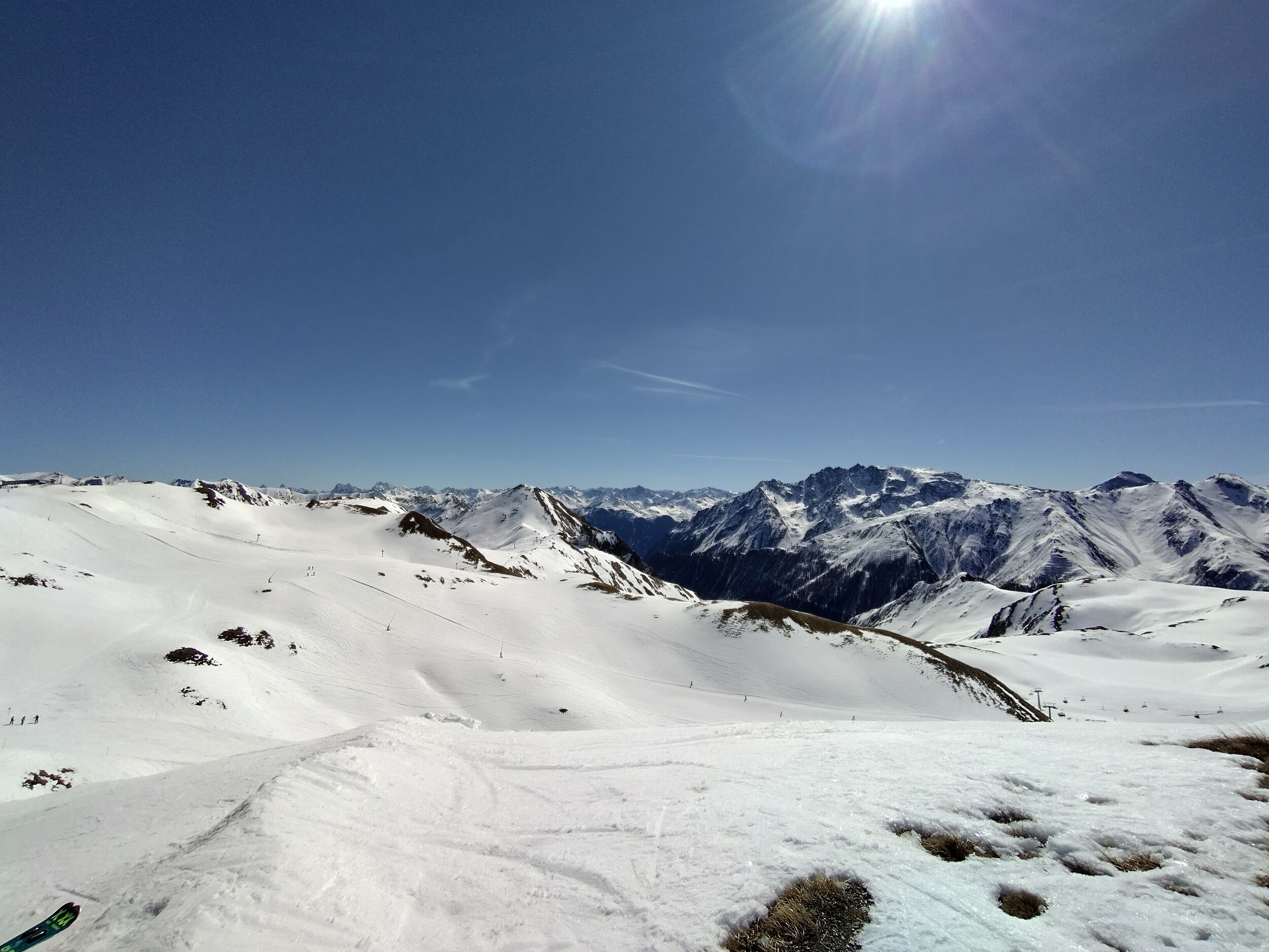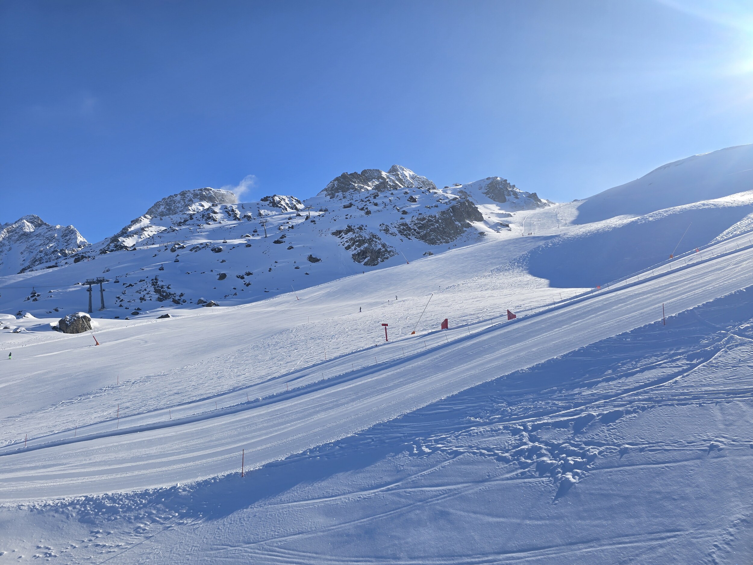 Gestern war übrigens sowohl in Ischgl (auch wenn wir da morgens nur 2 Pisten gefahren sind) und Samnaun die Präparation sehr suboptimal mit vielen Wellen in Längs- und Querrichtung. Nach den ersten zwei Stunden eh egal weil alles auffirnt: