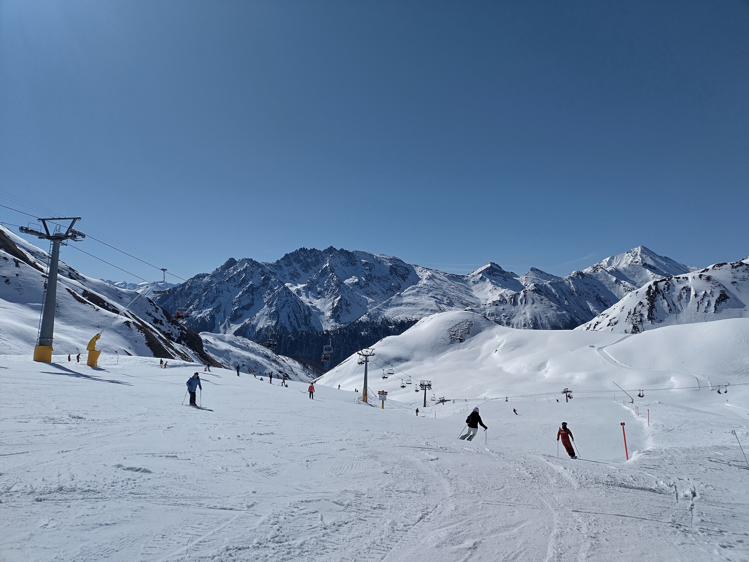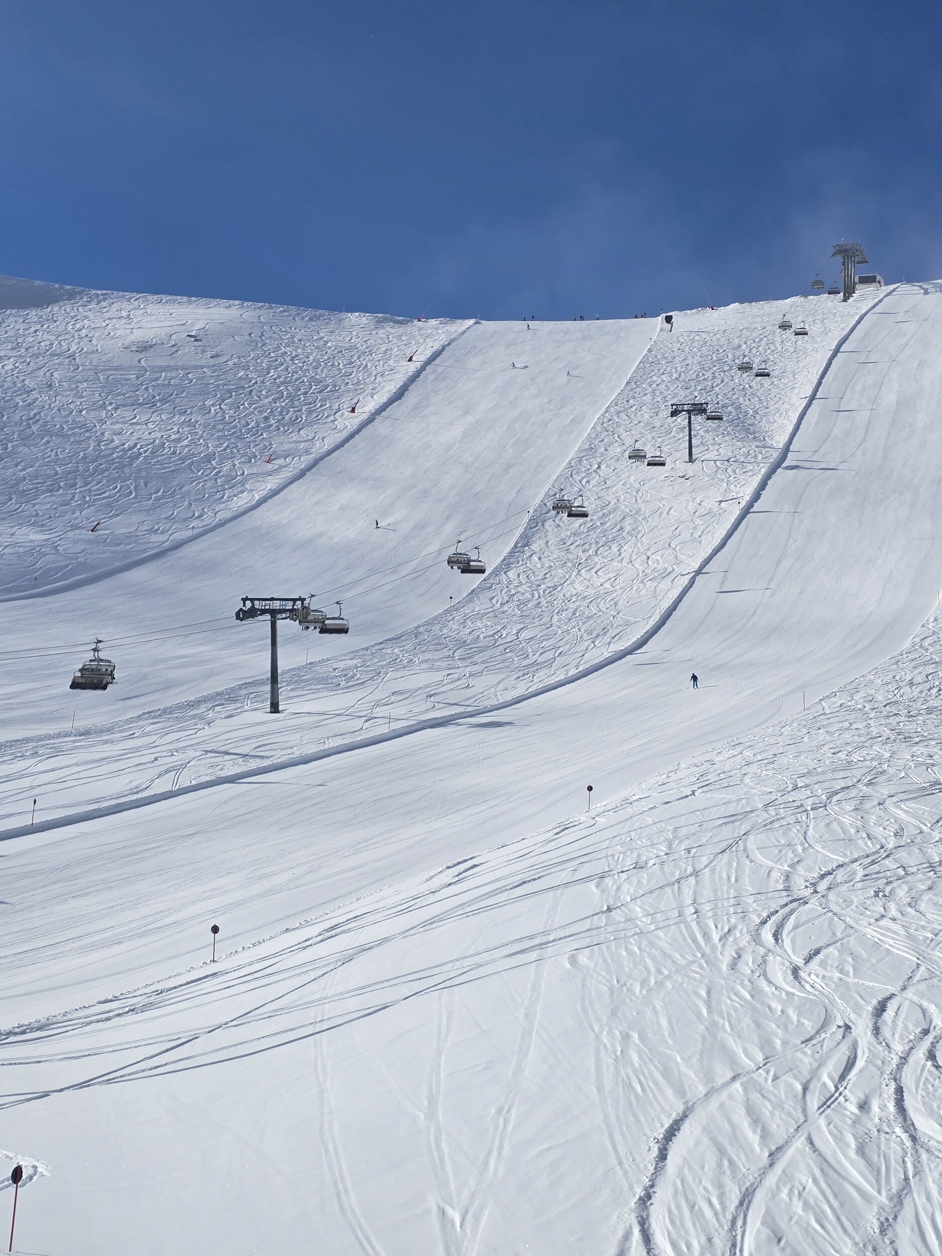 Einzig die Kunstschneehaufen an vereinzelten Orten störten etwas, braucht man um die Jahreszeit einfach nicht und ja es war doch erstaunlich viel los, mit schlauer Fahrweise aber meist privates FBM und auch leere Pisten ließen sich zur Genüge finden.