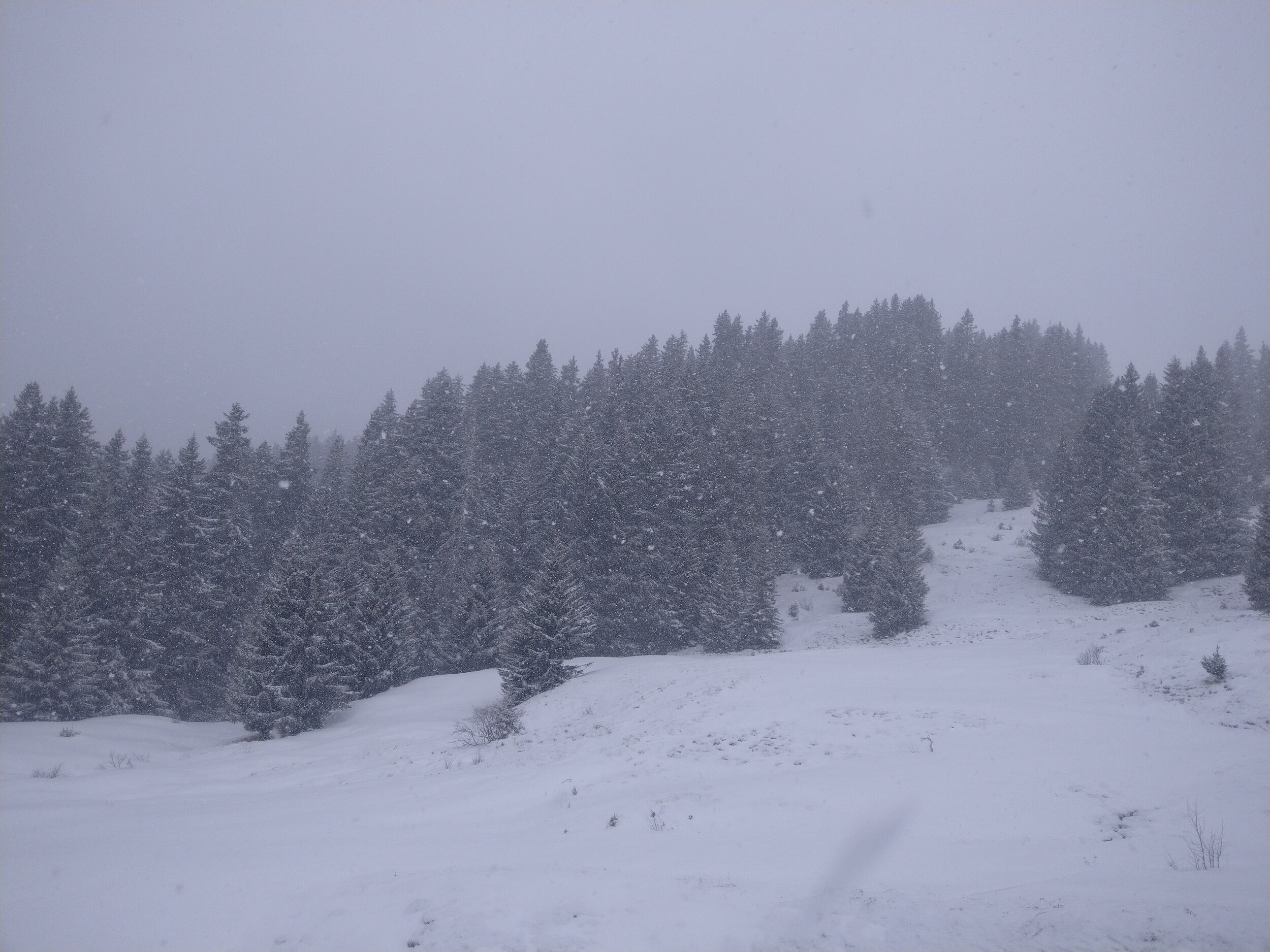 Heute war alles dabei: Schneefall, Nebel, sonnige Abschnitte.