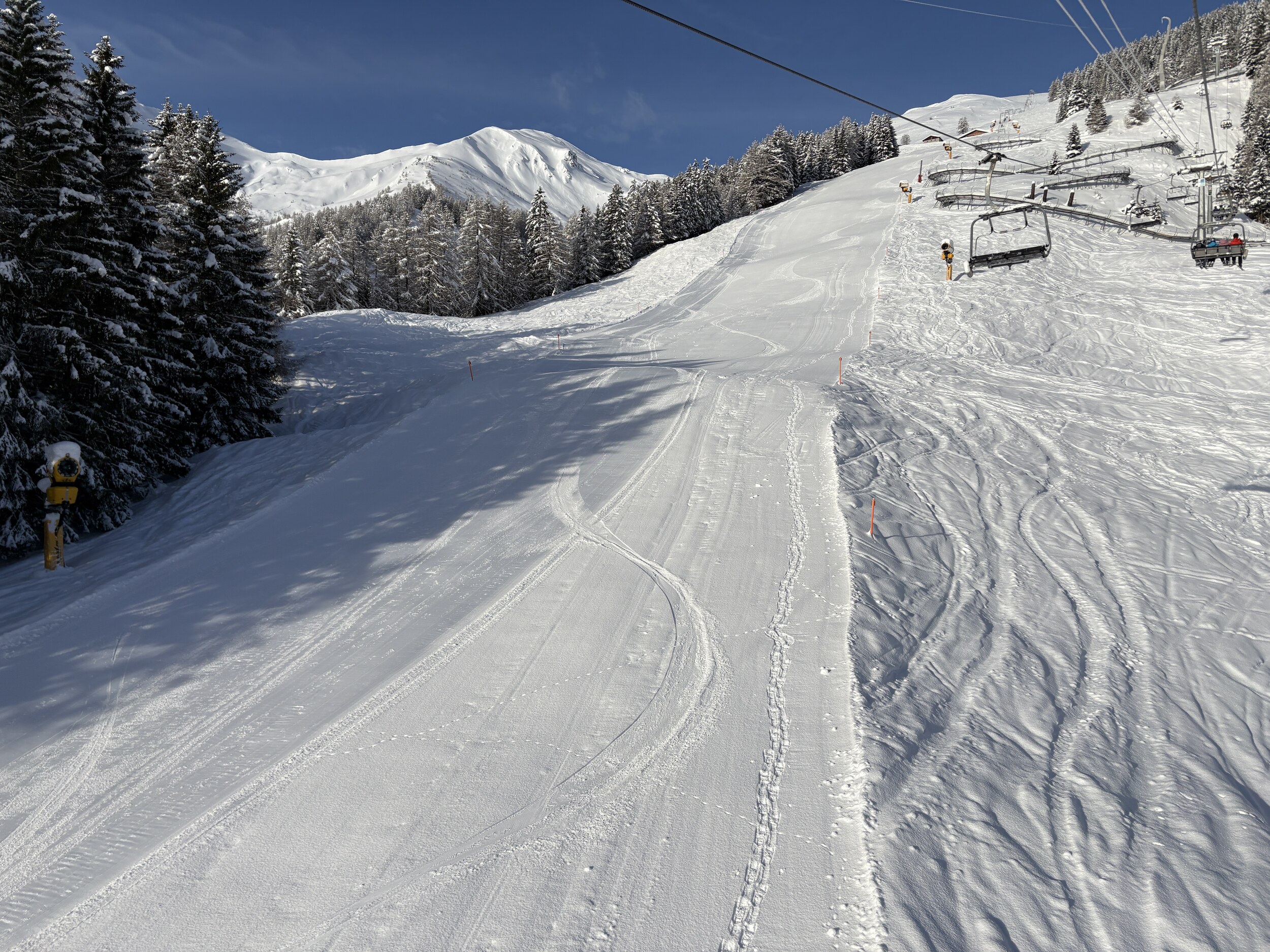 Da oberhalb Scharmoin anfangs alles geschlossen war, machte ich einmal die Talabfahrt 21c und den Dieschen. Wenig überraschend war beides sehr schön: