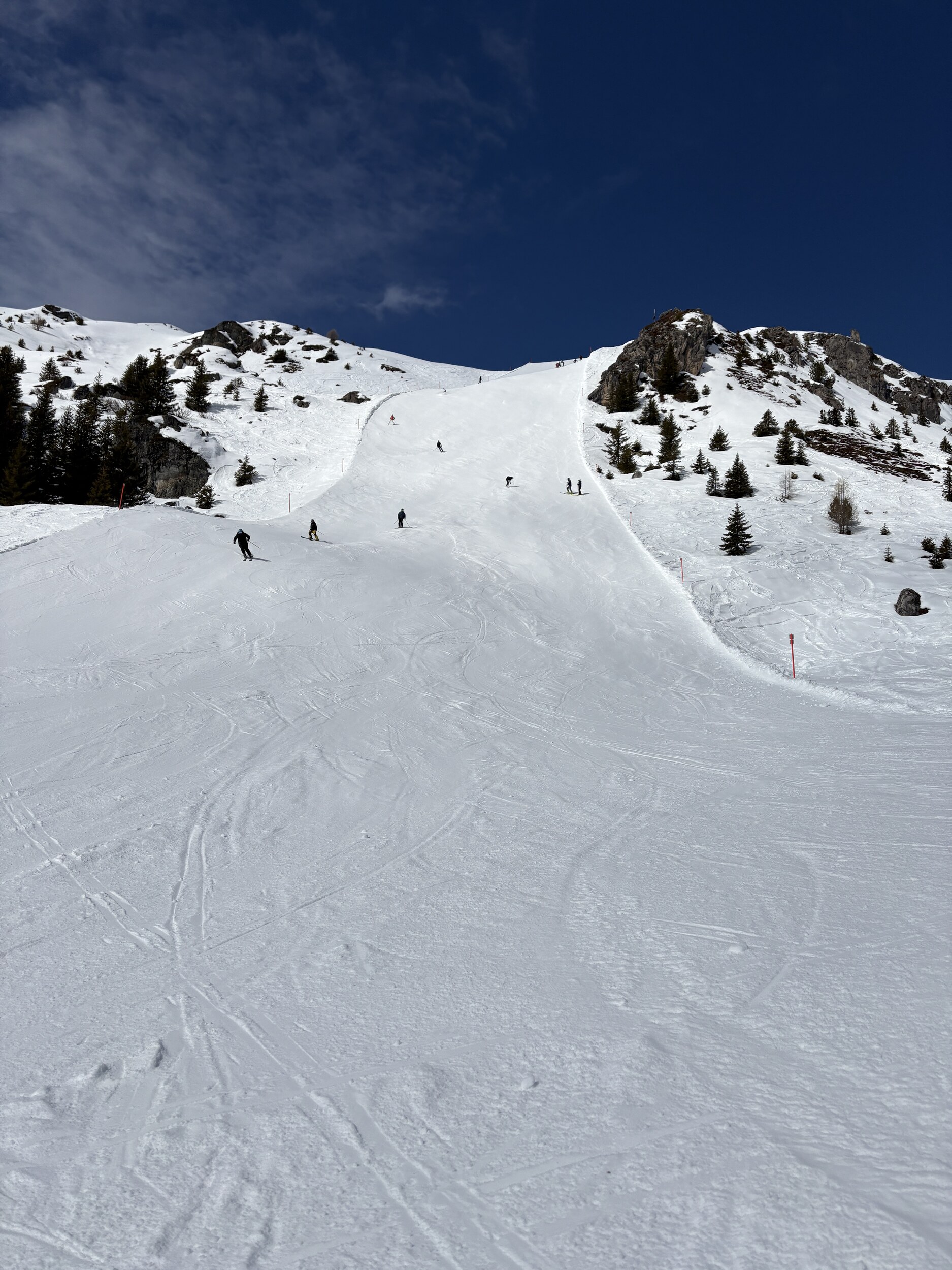 42a. Wie so oft im Frühling war diese Piste auch gestern nachmittags noch einigermassen pulverig.