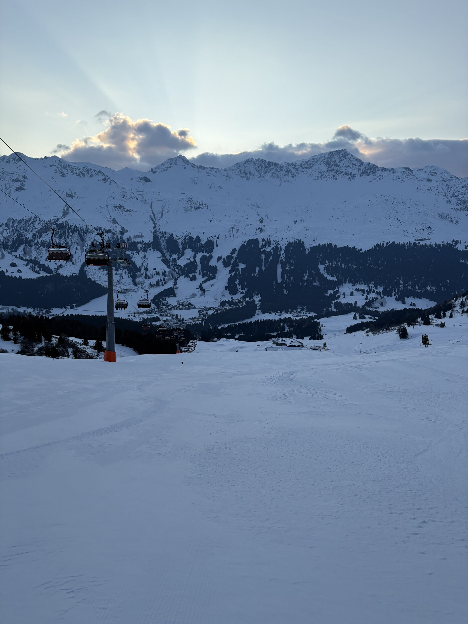 Wir waren heute auf der Lenzerheide, war wie zu erwarten nichts berühmtes. Da wegen Lawinensicherungsarbeiten am Morgen so gut wie nichts geöffnet war, sind wir erst mal mit Pradaschier und Windegga hoch.