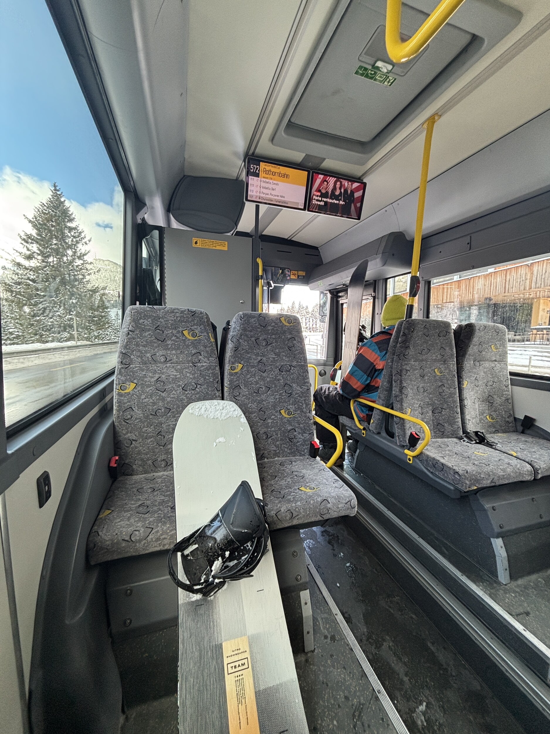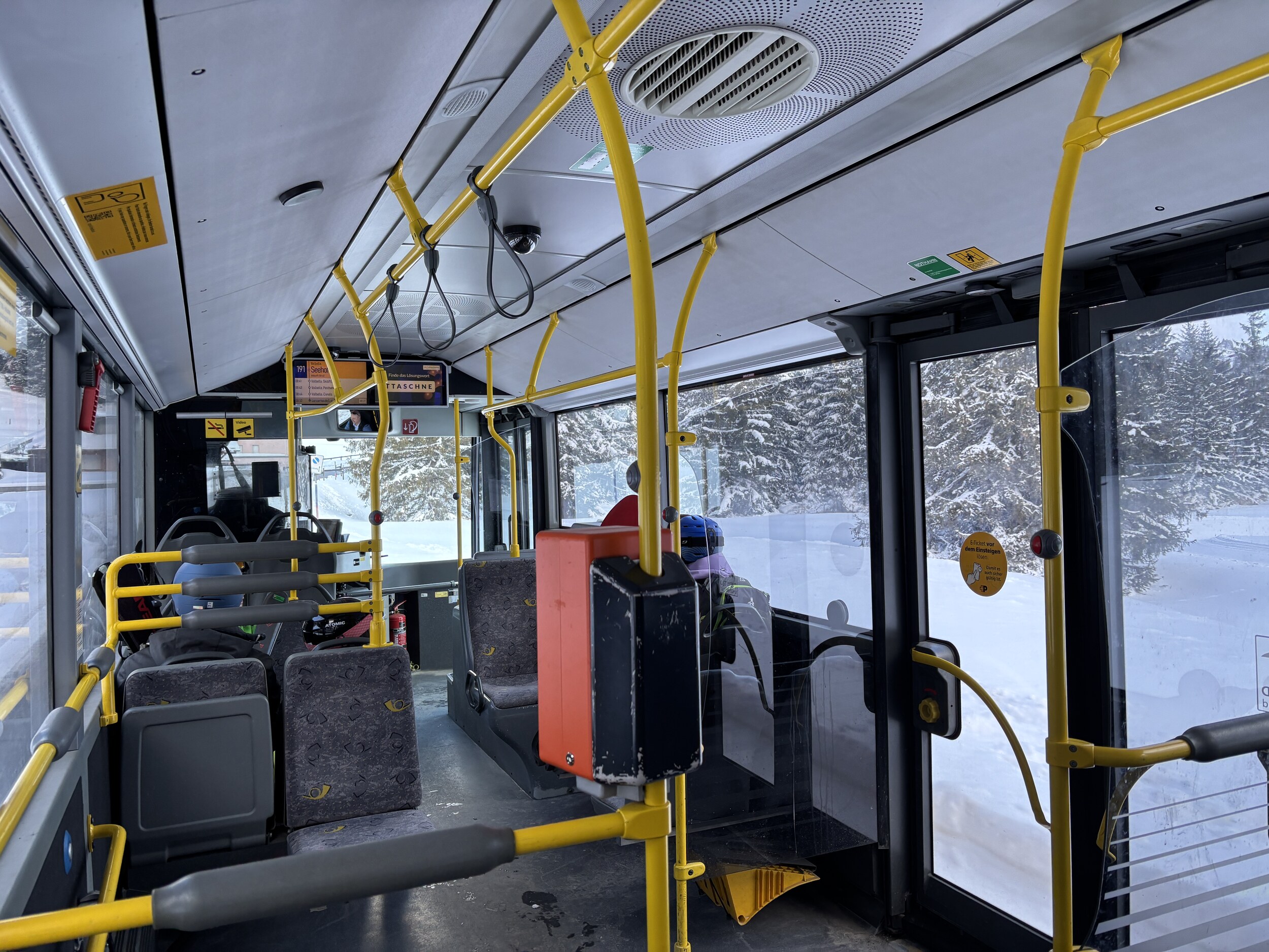 Jetzt geht es mangels Pistenmöglichkeit mit dem Postauto nach Churwladen: