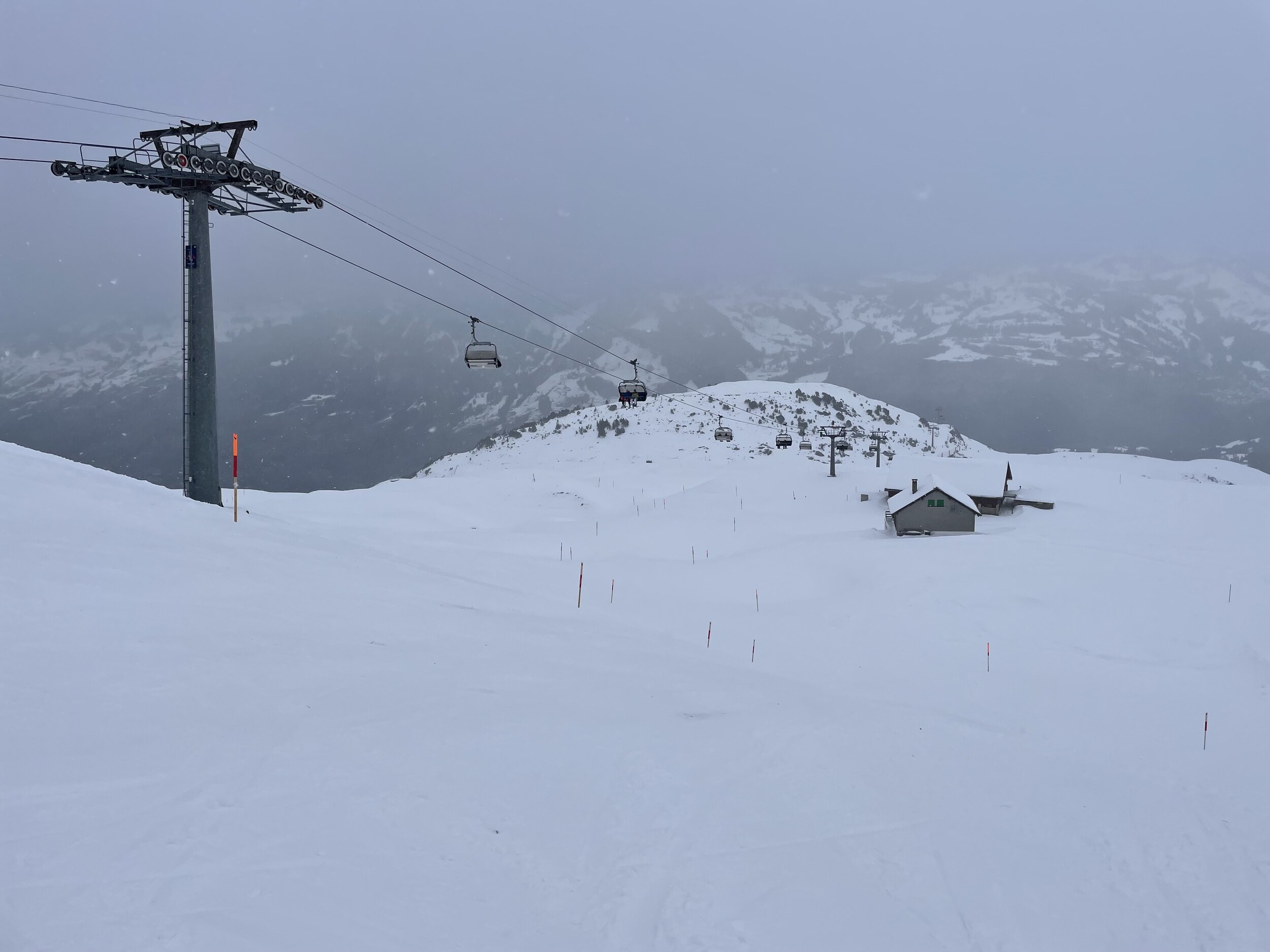 Auf zum Stoos, hier gibt’s in der Vorsaison Rabatt und mit der 4h-Karte ist man völlig flexibel, kostet 39.- und man kann auch nach ablauf der Zeit noch die Standseilbahn benutzen. Das Wetter hat hier nocht recht lang gehalten und Bodensicht war mit der entsprechenden Brille durchgehend tiptop. Ohne Klingenstock ist das Gebiet halt schon deutlich kleiner, aber hat uns gut getaugt heute.