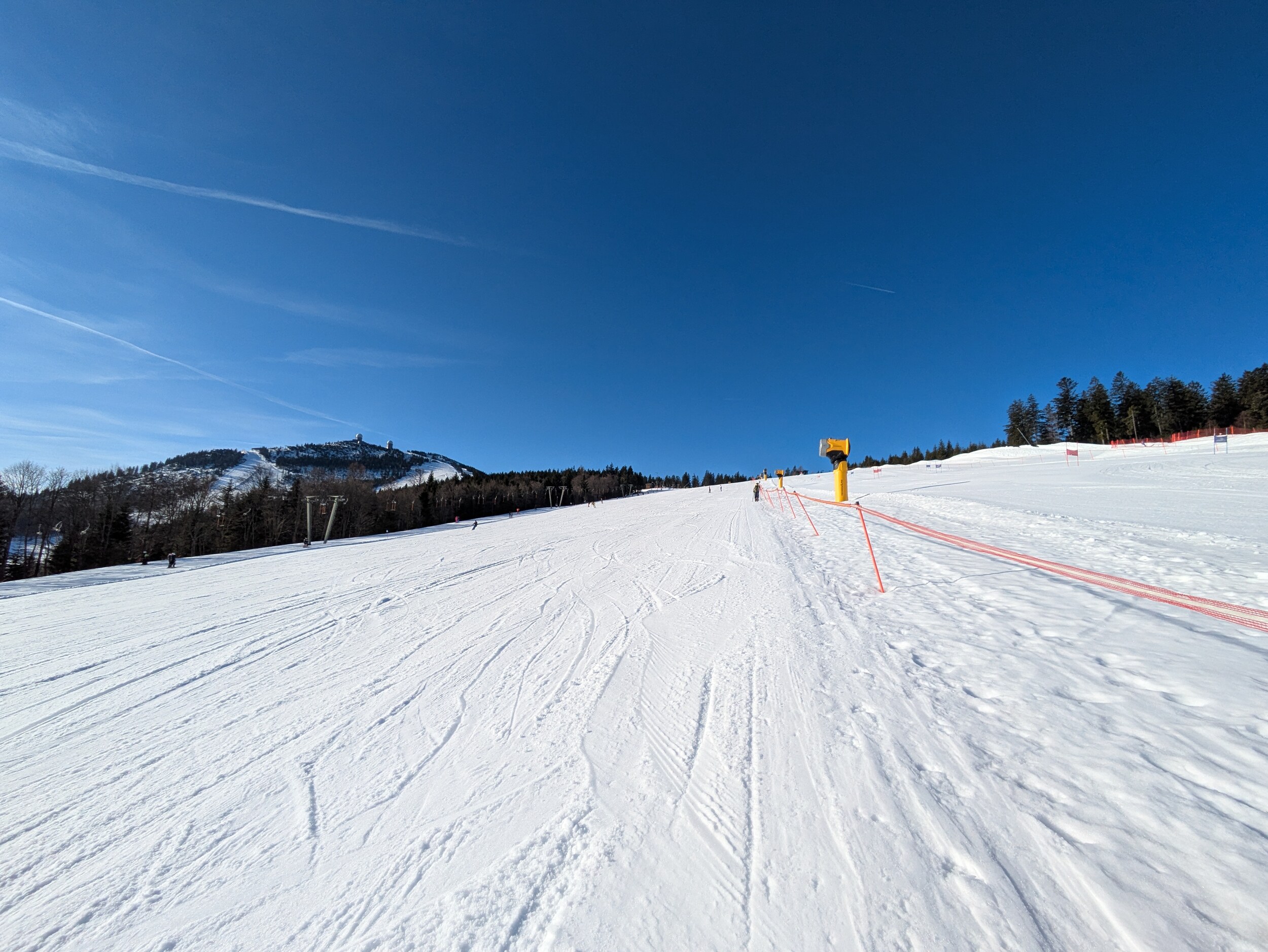 Ärgerlich ist das Absperrverhalten in der Weltcupstrecke. Im eigentlichen ultrabreiten abgesperrten Trainingsbereich ist ein Lauf gesteckt, daneben wird dann von der normalen Piste nochmal die Hälfte für einen weiteren Lauf weggezwickt. Absolut nicht nachvollziehbar...