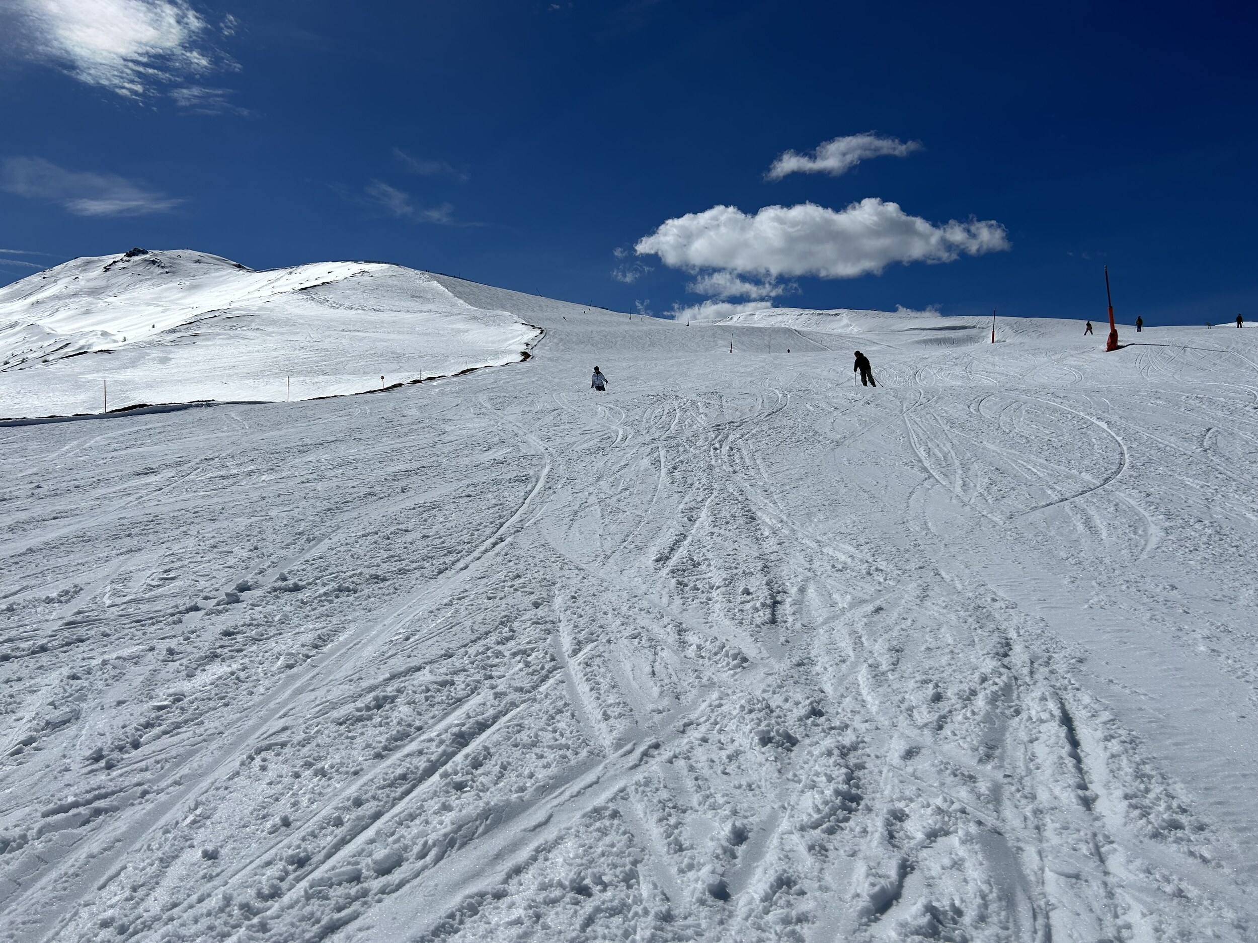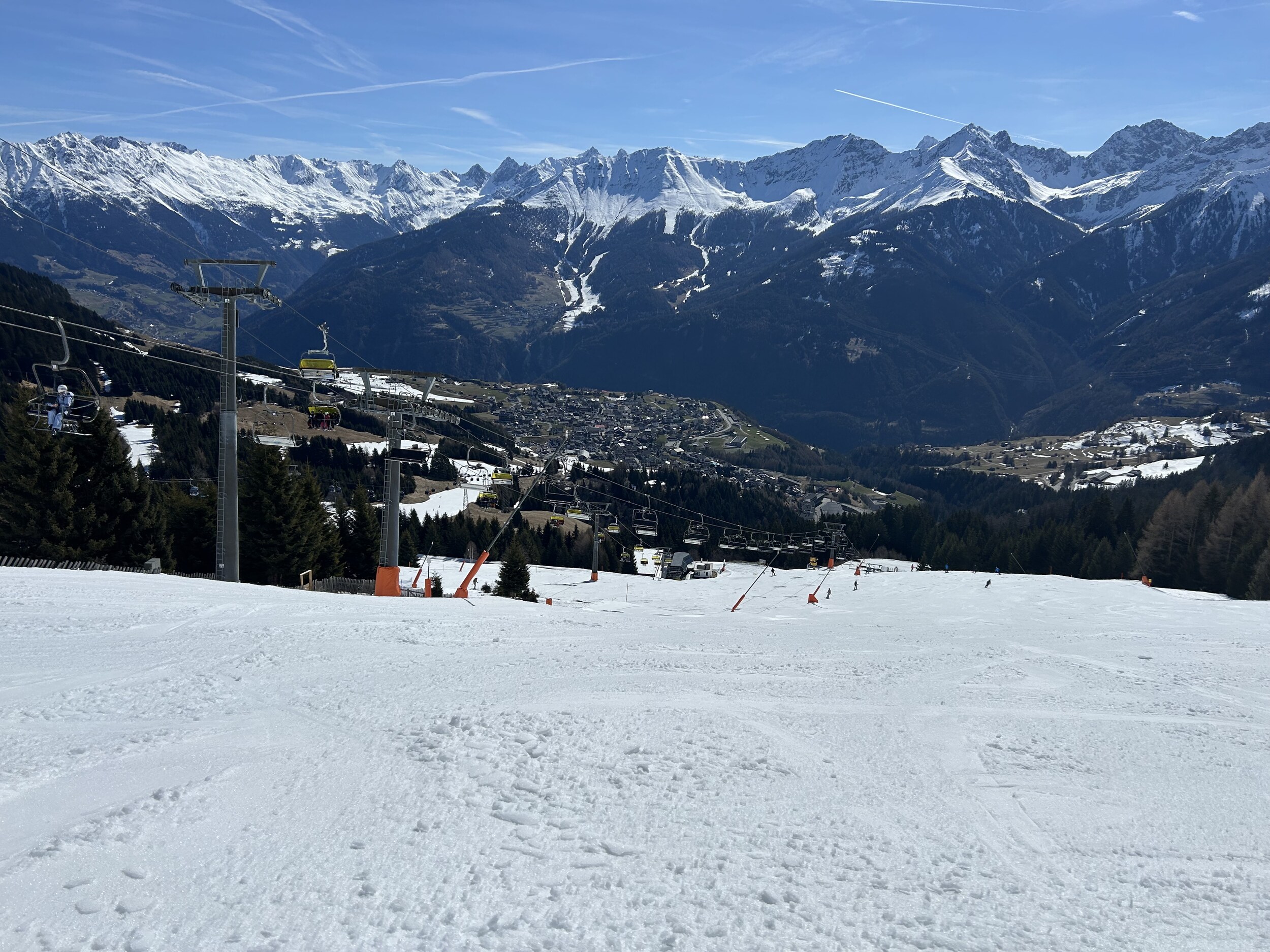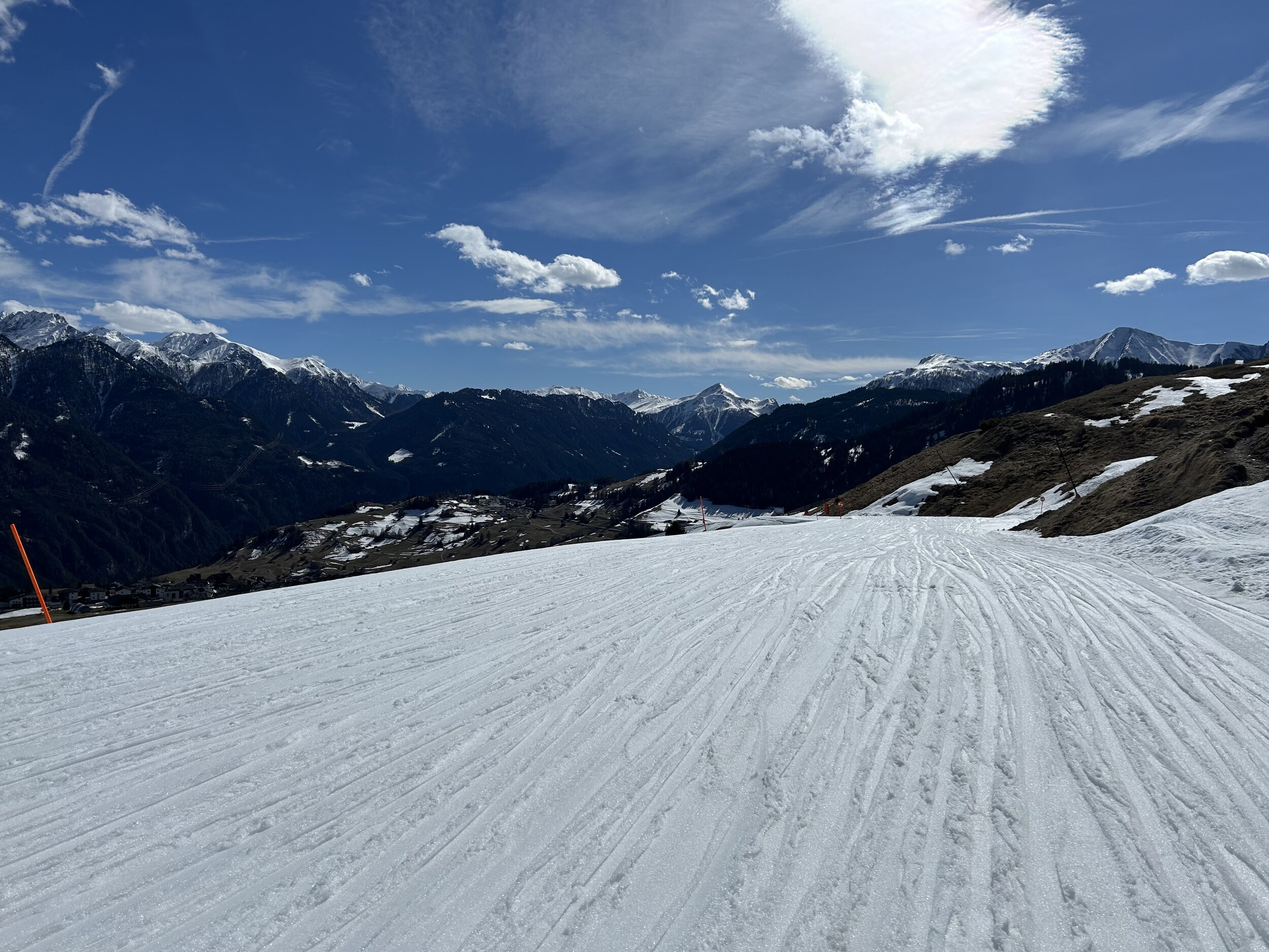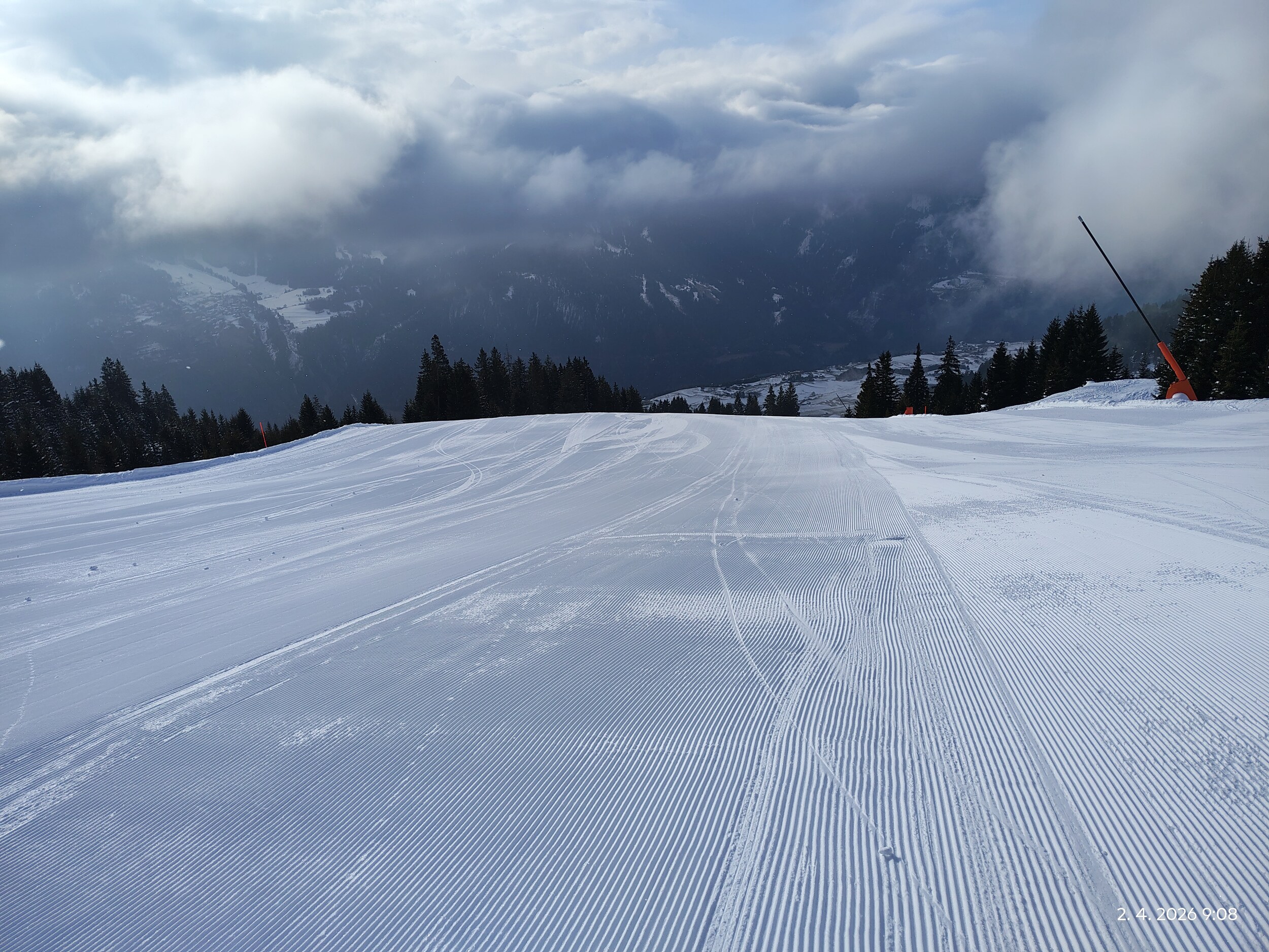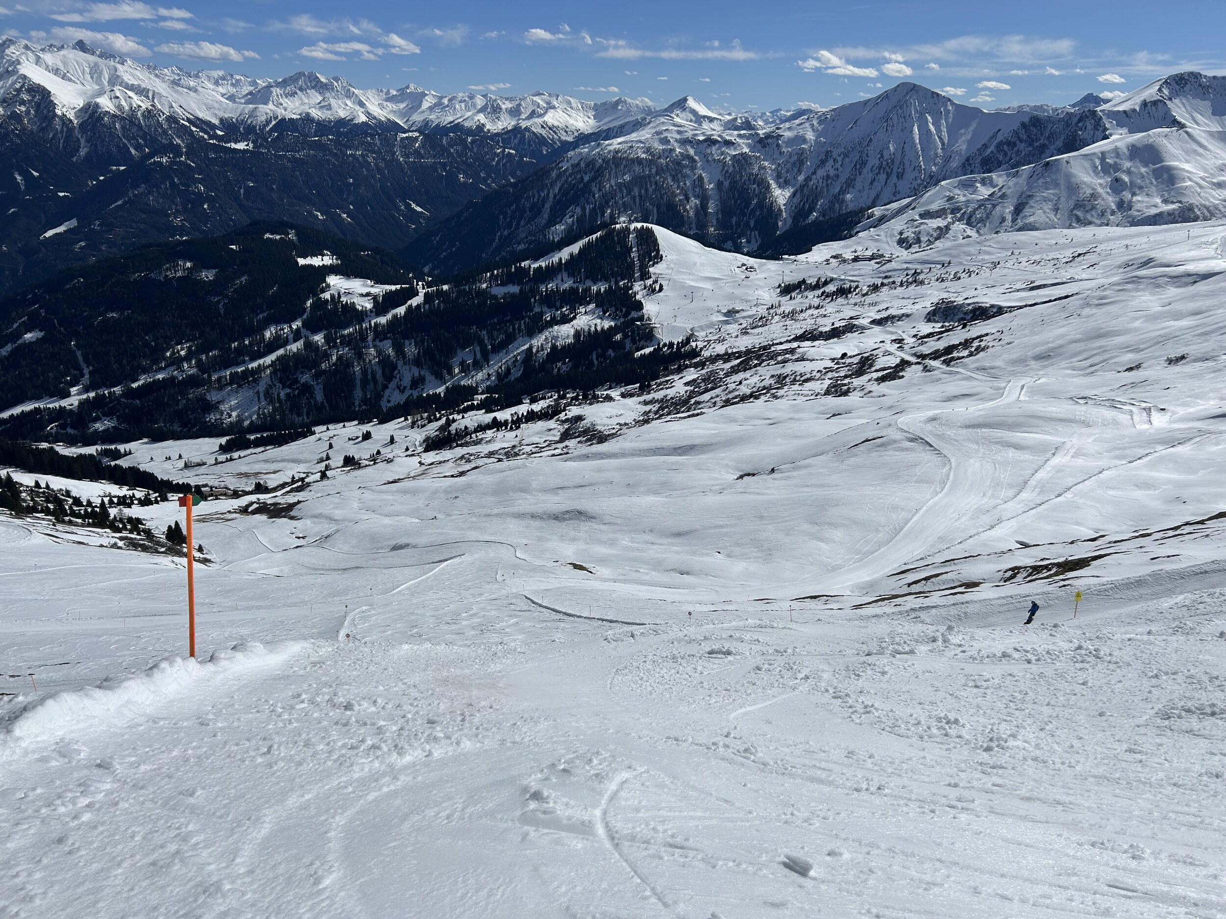 Der Plan spät zum Masner geht voll auf, 0 Wartezeiten. Am Masner auch guter Schnee, alles schön griffig, einige ganz wenige Steine die aber gut sichtbar sind. Panorama wie immer mega! Lawens war auch gut und griffig aber oben fehlt schon viel Pistenbreite: Pezid: Masner: Panorama einfach traumhaft: Obere Scheid auch super griffig, hier merkt man den wenigen Kunstschnee: Zurück Richtung Serfaus auch die Waldabfahrt noch sehr gut zu fahren.