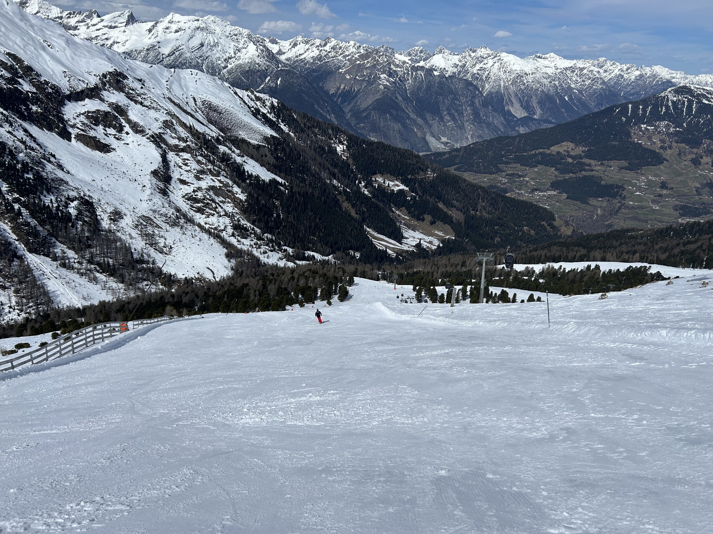 Es sind nachwievor einige Pisten geschlossen aber was offen ist, ist echt super zu fahren. Liegt vieleicht daran dass Heute echt wenig los ist trotz super Wetter. Perfekter Skitag. Morgen gehts dann an den Kaunertaler Gletscher
