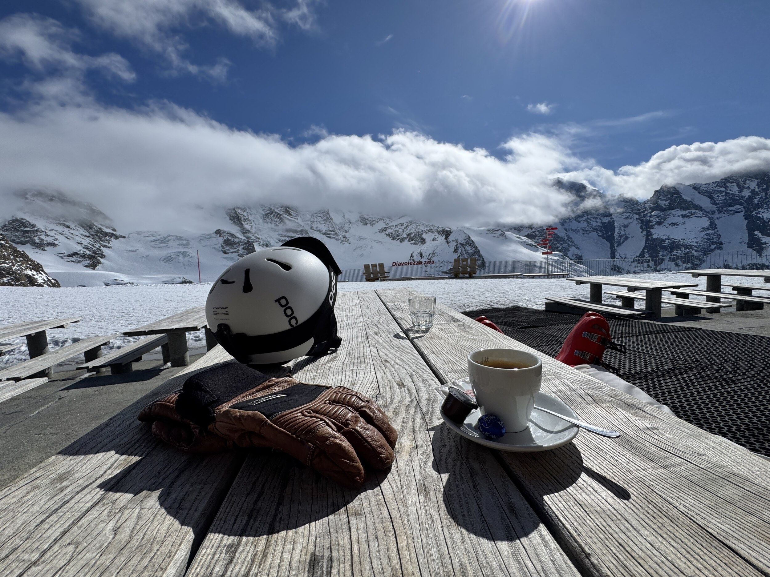 Gestern war ich ab Mittag auf Diavolezza Lagalb. Auf Diavolezza war es unten bremsig, besonders in den Flachstücken. Spätnachmittags wurde es wieder schneller. Das Wetter war zunächst okay und wurde irgendwann so um circa 15:00 Uhr wirklich schön. Da waren dann die Gäste fast alle weg. Da bot sich noch eine Kaffeepause auf der relativ leeren Sonnenterrasse an. Auf den letzten Fahrten genoss ich dann das schöne Nachmittagslicht und den wieder schneller werdenden Schnee. Um 17:10 fuhren vor den Kontrolleuren dann gerade mal 4 Skifahrer oben los. Ich fuhr vorweg und hatte die gesamte Abfahrt keinen anderen Alpinskifahrer im Blickfeld, nur die leere Piste. Nur wenige Tourengeher kamen noch hinauf. Alle präparierten Pisten sind geöffnet.