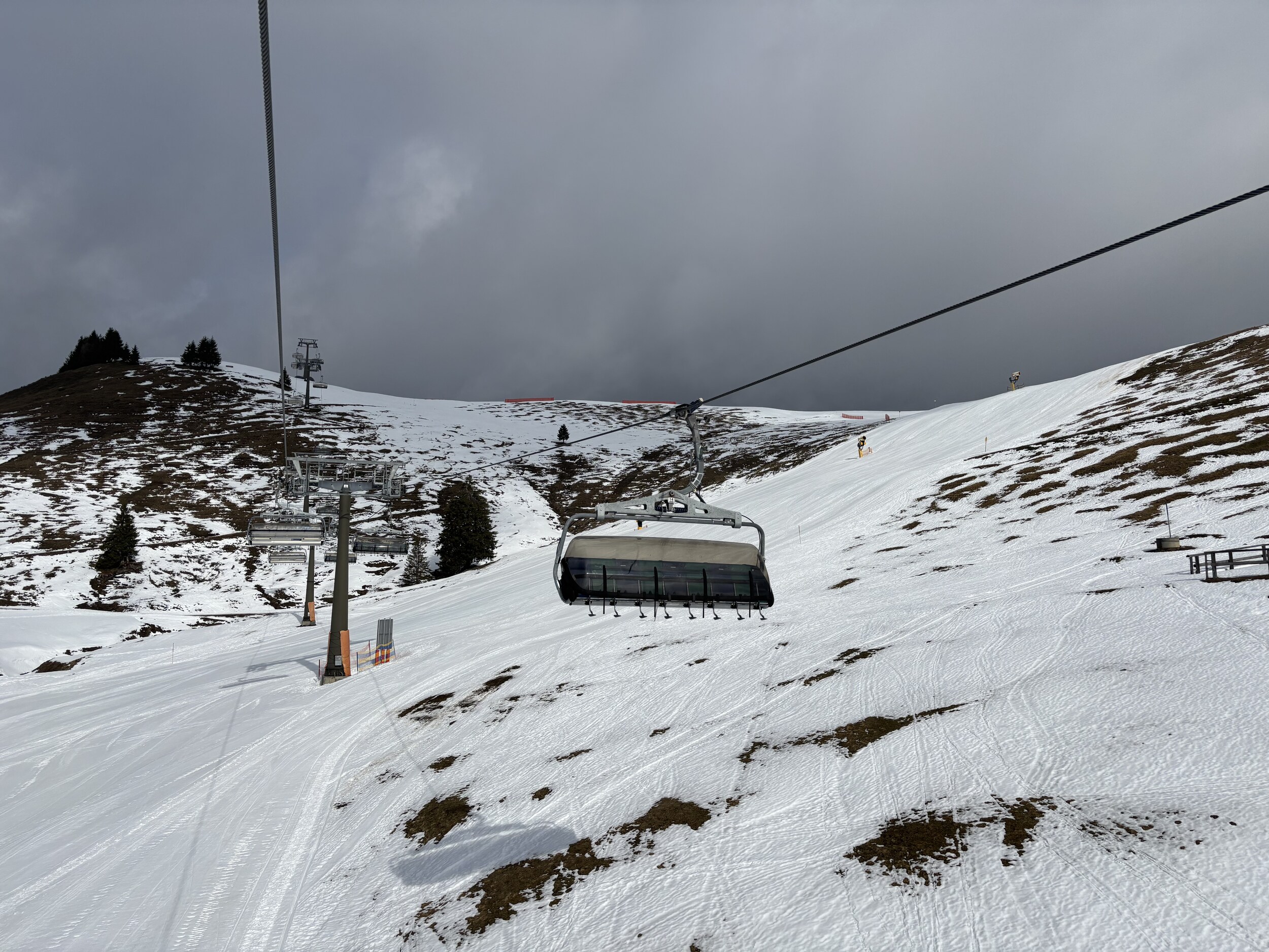 Talabfahrt unten ist an mehreren Stellen durch, am Schlimmsten der Steilhang unterhalb Mittelstation…