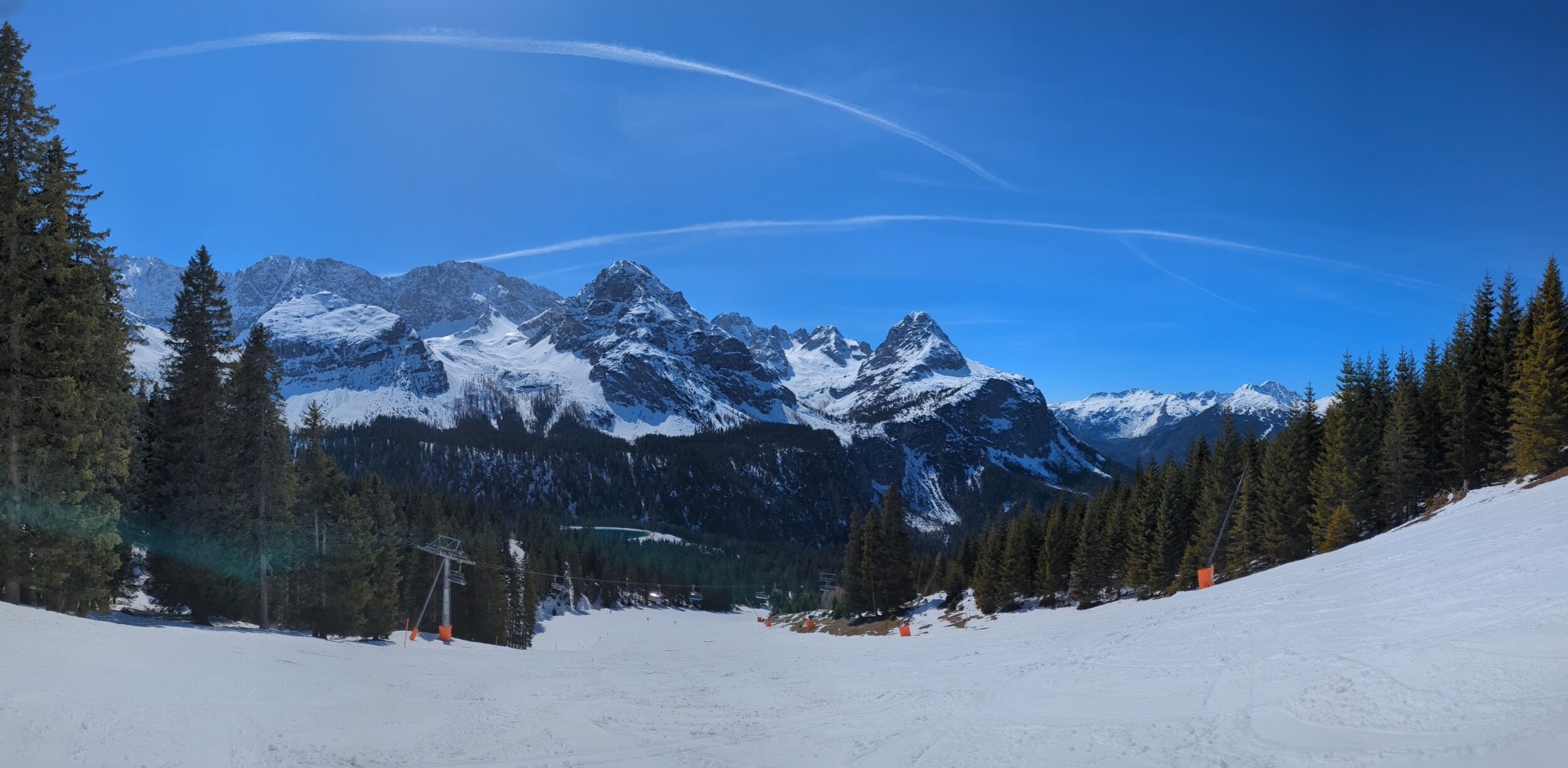 Die Wettersteinbahnen haben mir deutlich besser gefallen. Beide Anlagen machen einen guten Eindruck und sind flott unterwegs. Die zugehörigen Pisten sind deutlich mehr nach meinem Geschmack. Man hat insbesondere an der 3er-KSB die Möglichkeit, seinen Weg auf diversen Schneisen durch den Wald in Richtung Tal zu suchen, was interessant und abwechslungsreich war. Aber klar, auch hier kann man nicht von “State of the Art” sprechen.