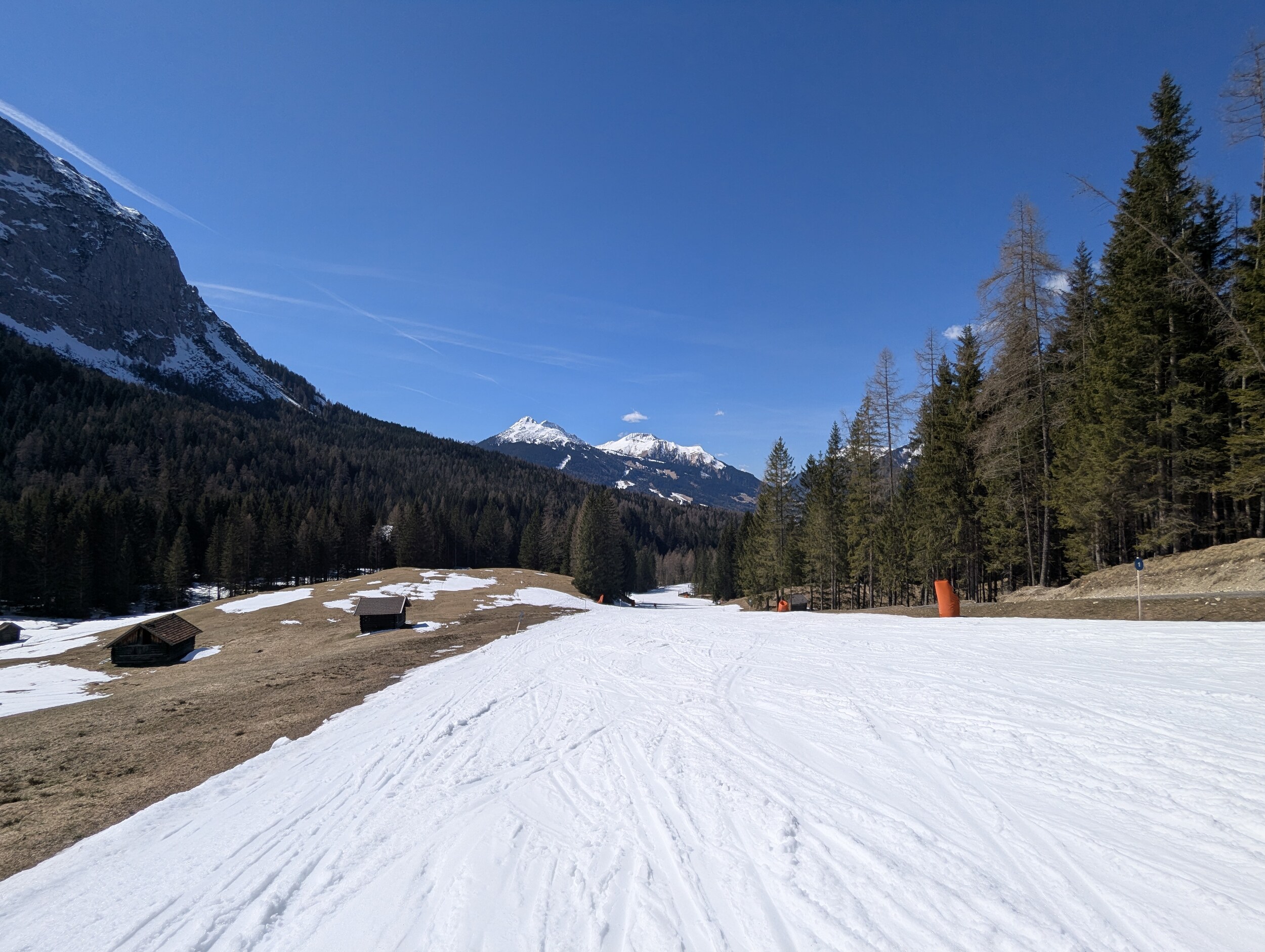 Leider ist hinten im Gaistal der Schnee scheinbar noch nicht umgewandelt und klebt sehr, richtig sulzig ist es da noch nicht da sich wenig los. Vorne ist es besser, wenn auch nicht optimal.