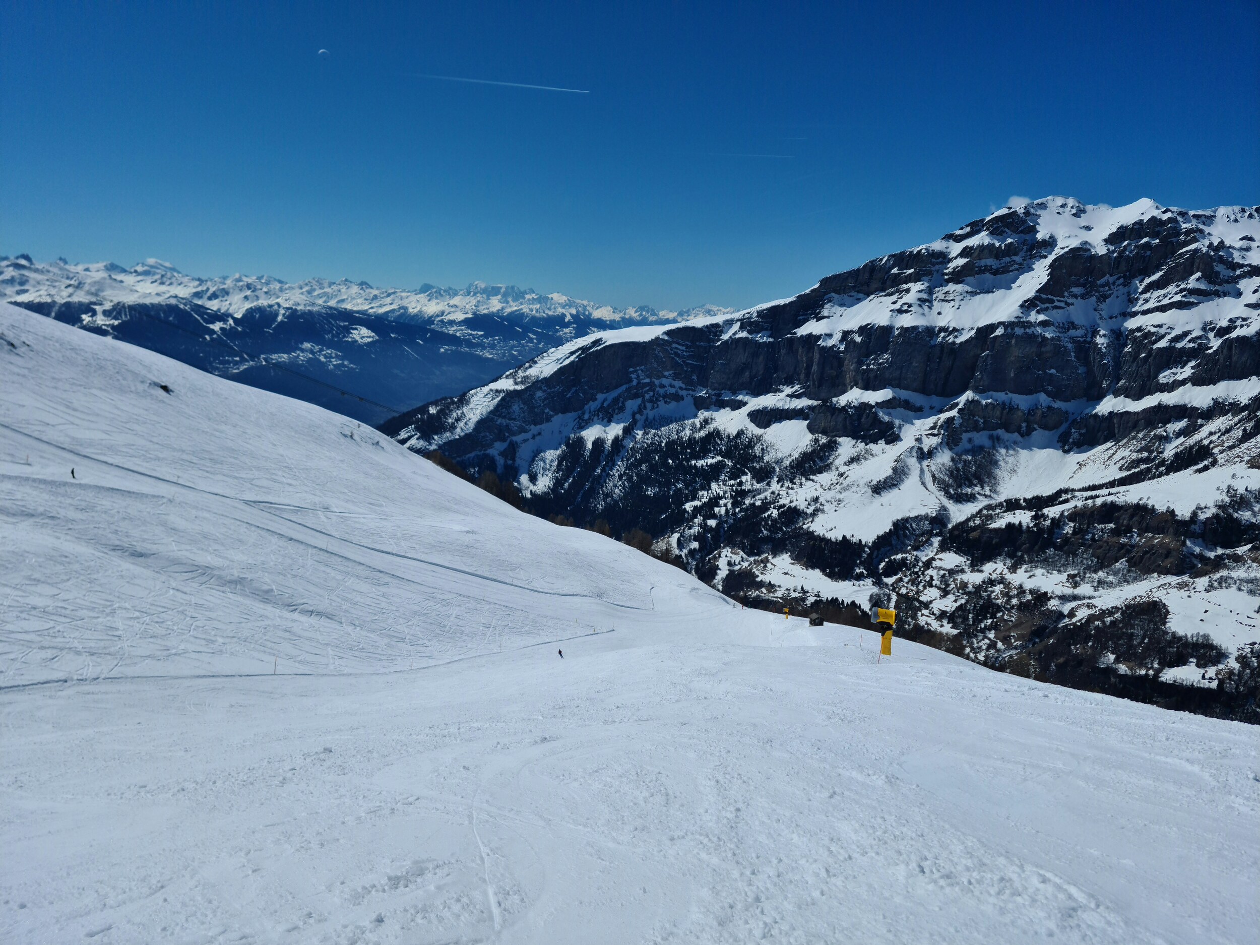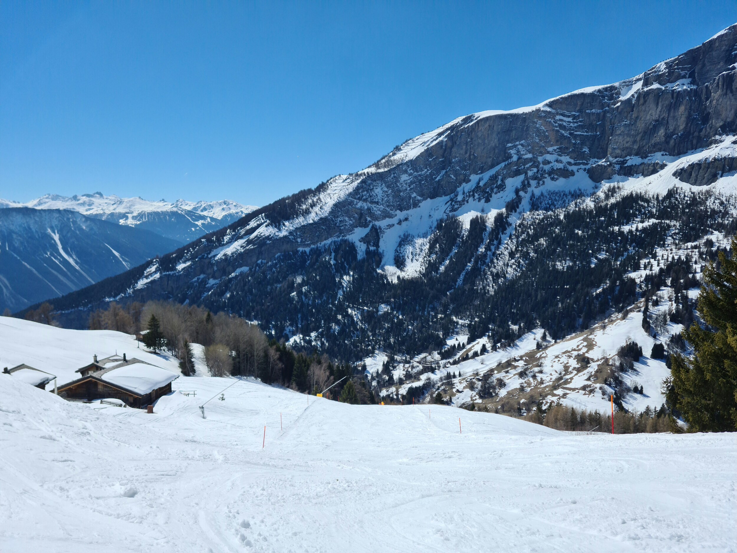 Der Schnee war morgens perfekt: ein bisschen weich und perfekt präpariert, nicht zu weich und nicht zu hart, einfach perfekt! Gegen Mittag wurde er aufgrund der Wärme etwas nasser, aber da nur wenige Leute unterwegs waren, blieb er bis zum Schluss in gutem Zustand. Alle Pisten sind geöffnet, außer der roten Plampulet und den unteren Varianten der roten Planedri (und die gelbe Pisten Torrenstafel/Tschantamaria). Alles war gut präpariert, außer leider Feuillerette, die nicht frisch präpariert war und weniger gut war, was enttäuschend war, da es eine der besten Pisten ist. Aber ansonsten war es ein toller Tag mit einem guten Mittagessen im Restaurant Flaschen.