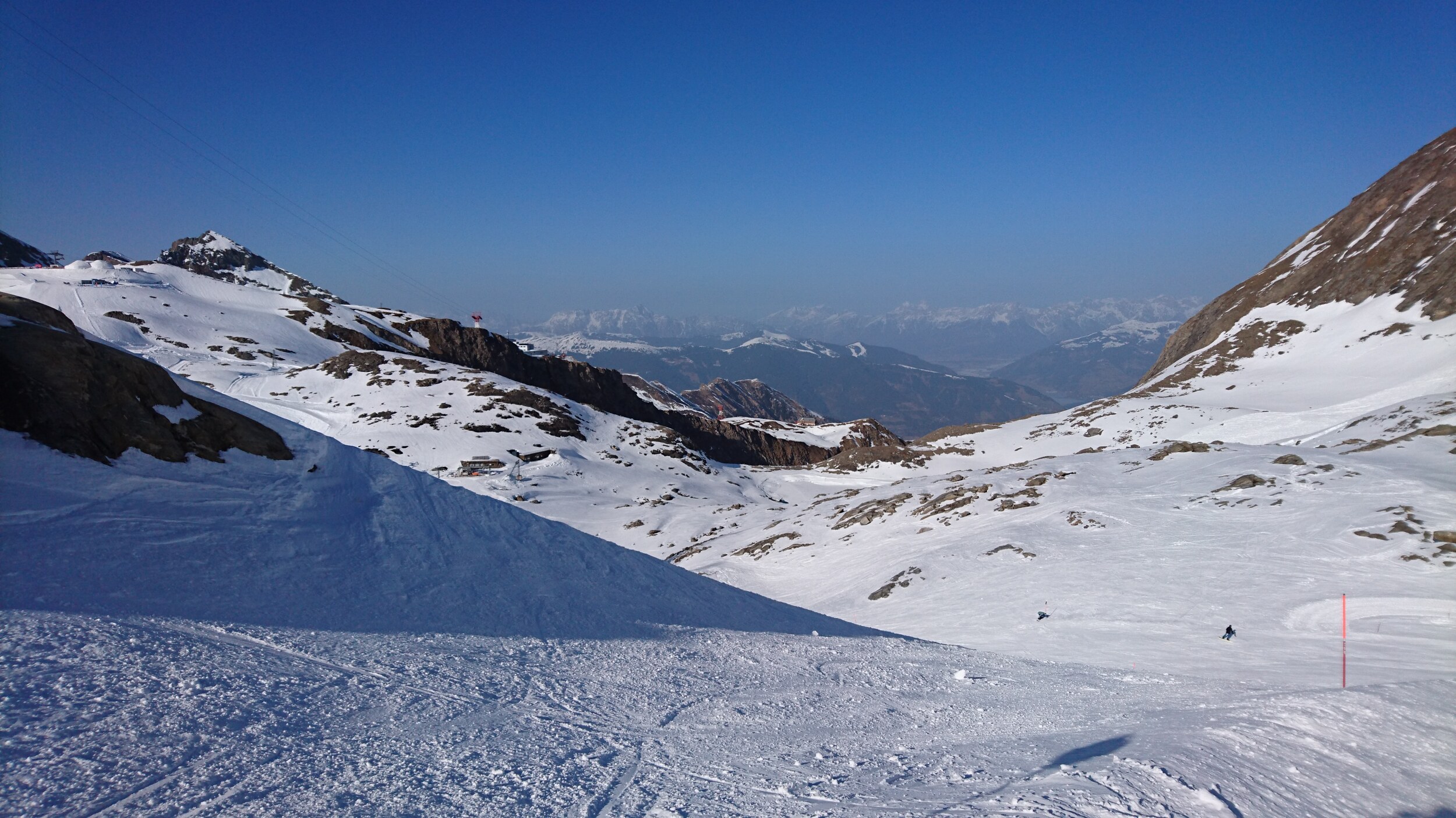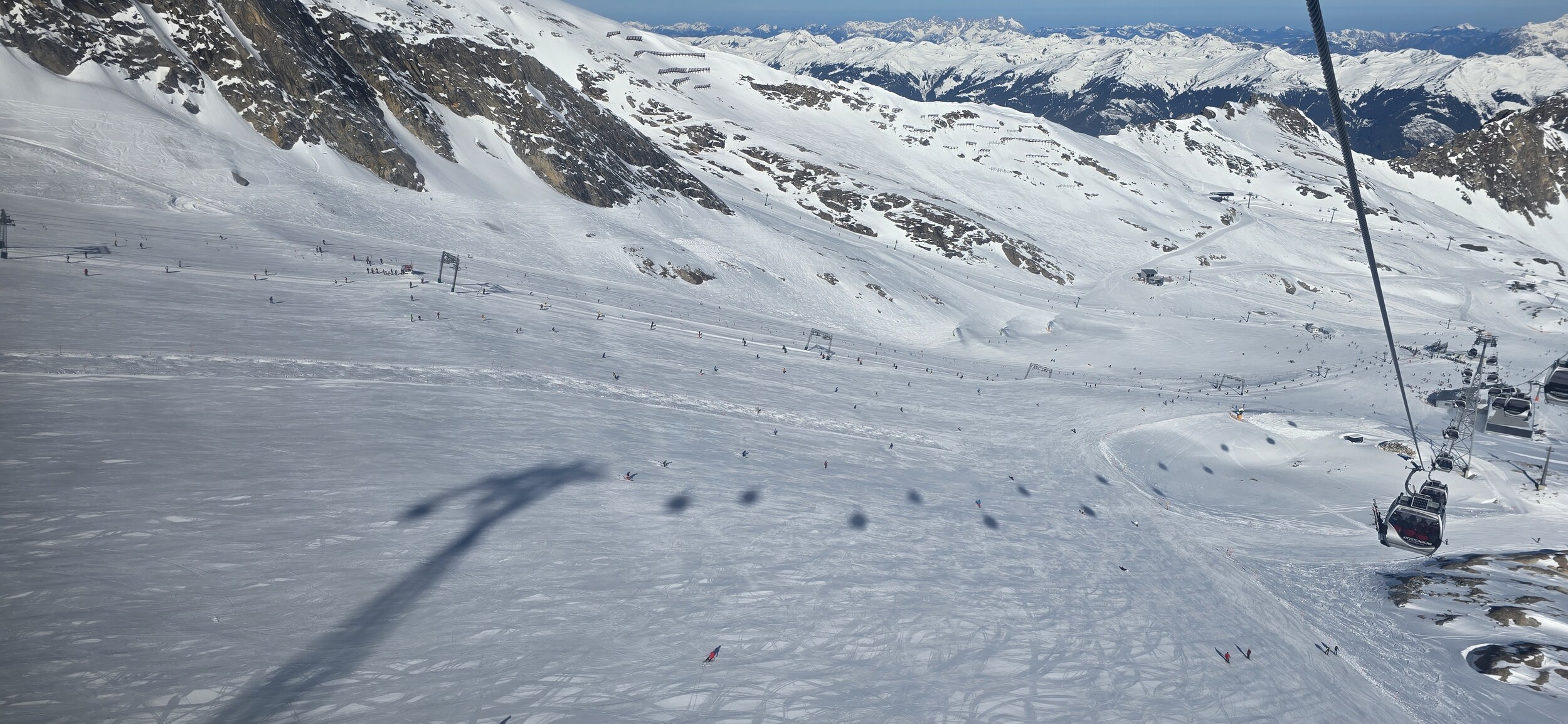 Der heutige Dienstag war fast ein deja-vu vom gestrigen Montag, aber doch mit einigen Unterschieden. Zum einen war die Nacht klar, und die Piste am Maiskogel um halb neun schön knusprig. Ja, Piste: während gestern noch alle Pisten an der EUB, KSB und den Tellerliften offen waren, waren heute sowohl die 6KSB als auch die Tellerlifte bereits gesperrt und an der EUB auch nur noch eine Piste offen. Ist natürlich kein Vorwurf - schön dass man überhaupt noch um 1 Woche verlängert hat - nur Feststellung. Perfekter Tagesbeginn