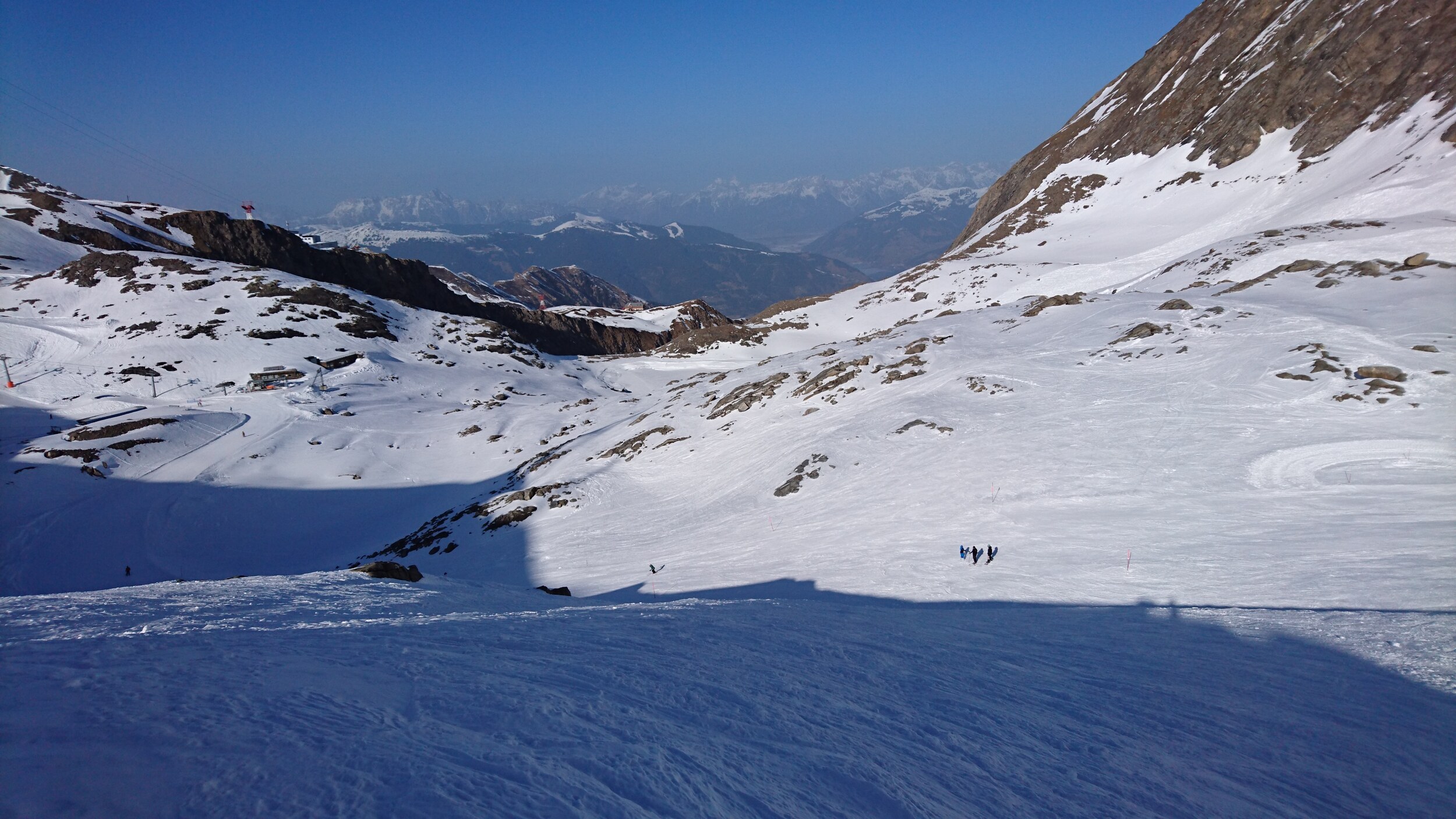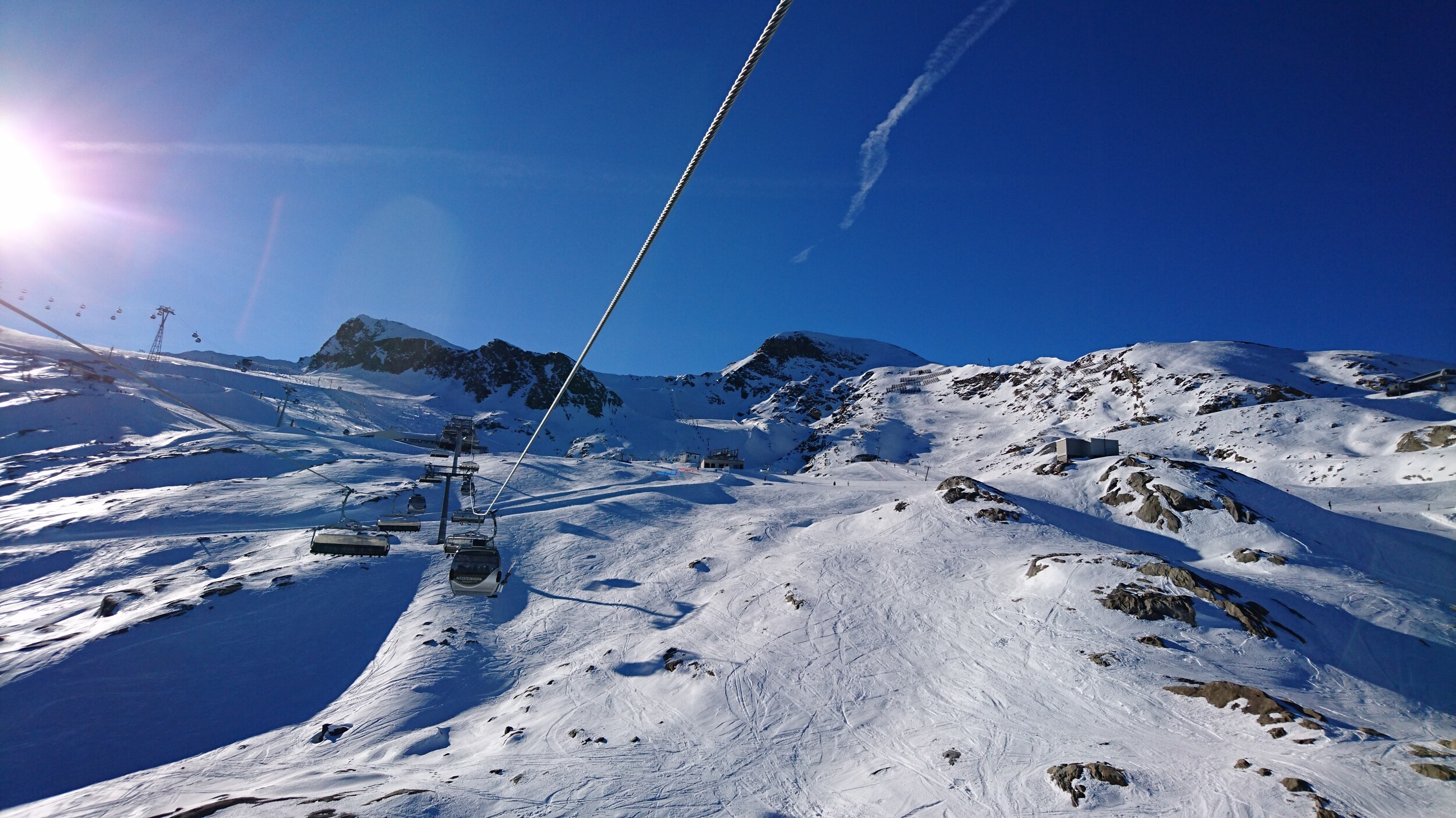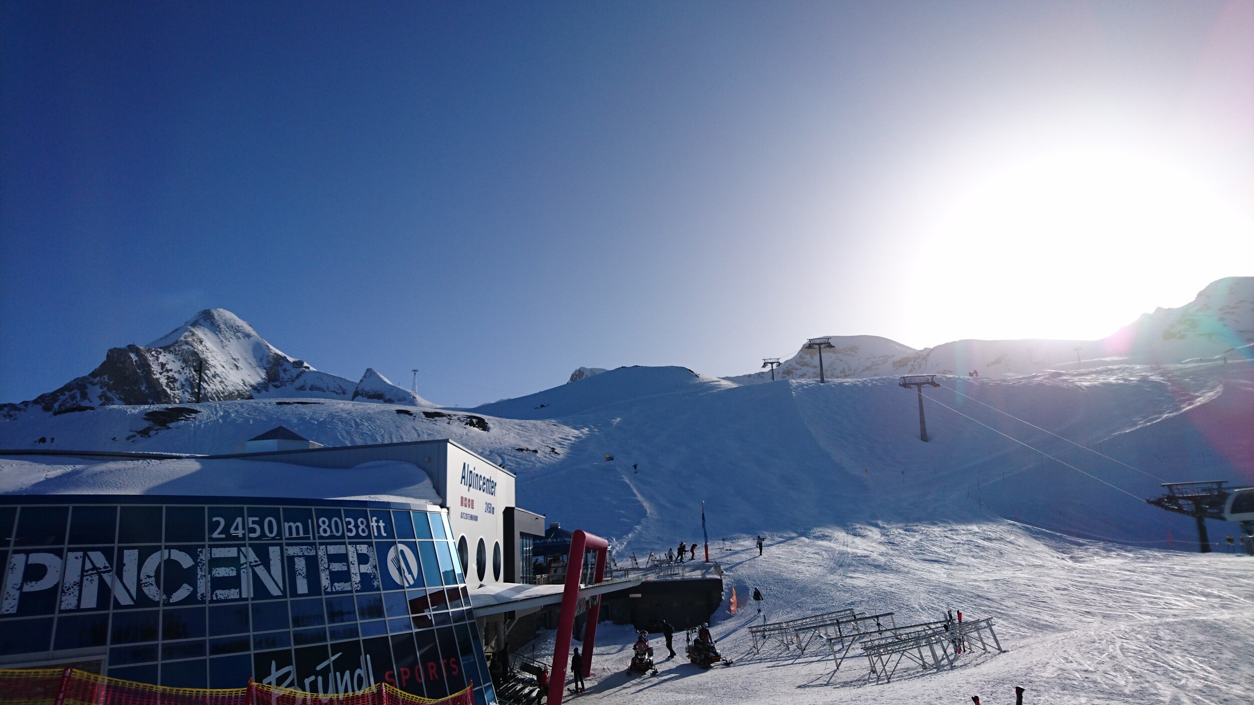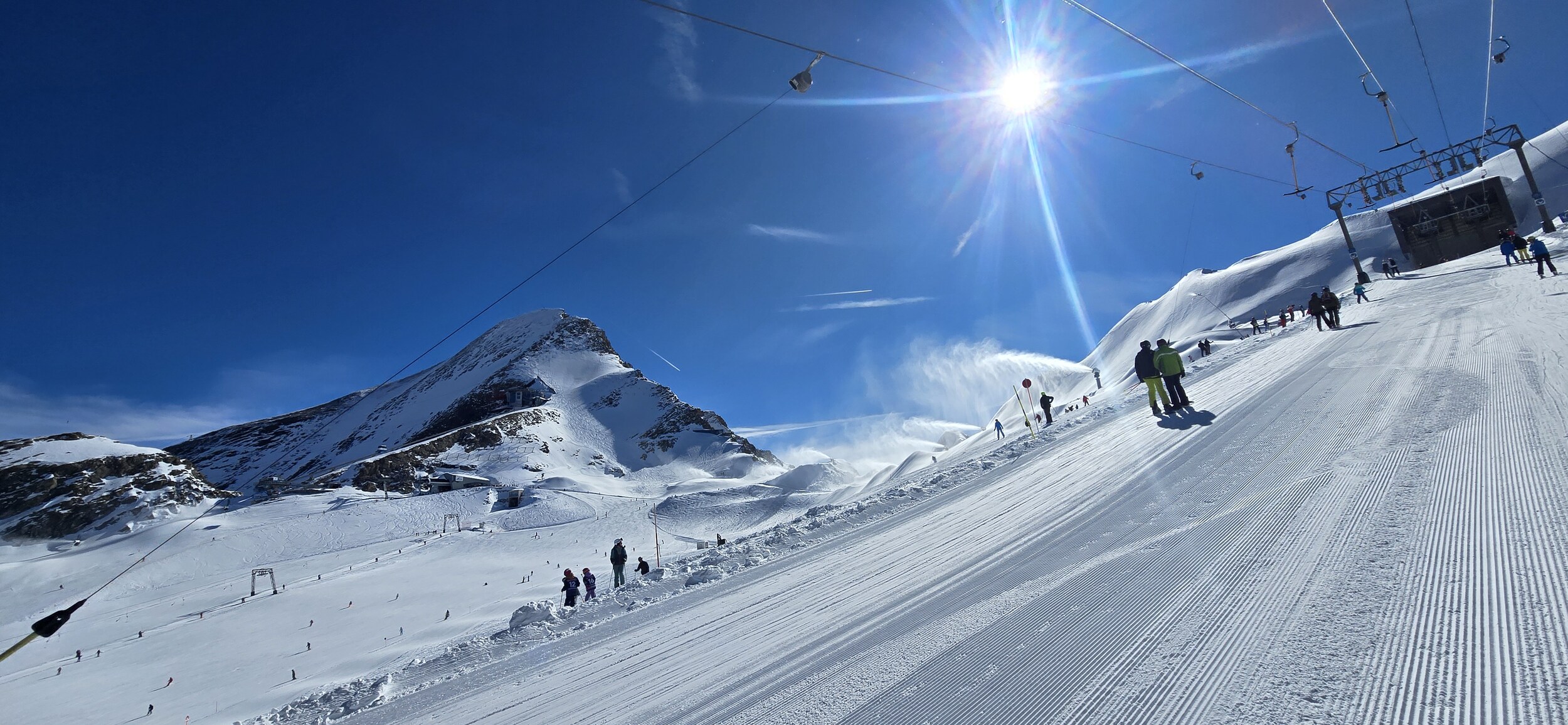 Zunächst waren wir froh, dorthin gefahren zu sein, denn oben am Gletscher war Vollbetrieb, sogar der 2er Sessel Sonnenkar2 war in Betrieb,