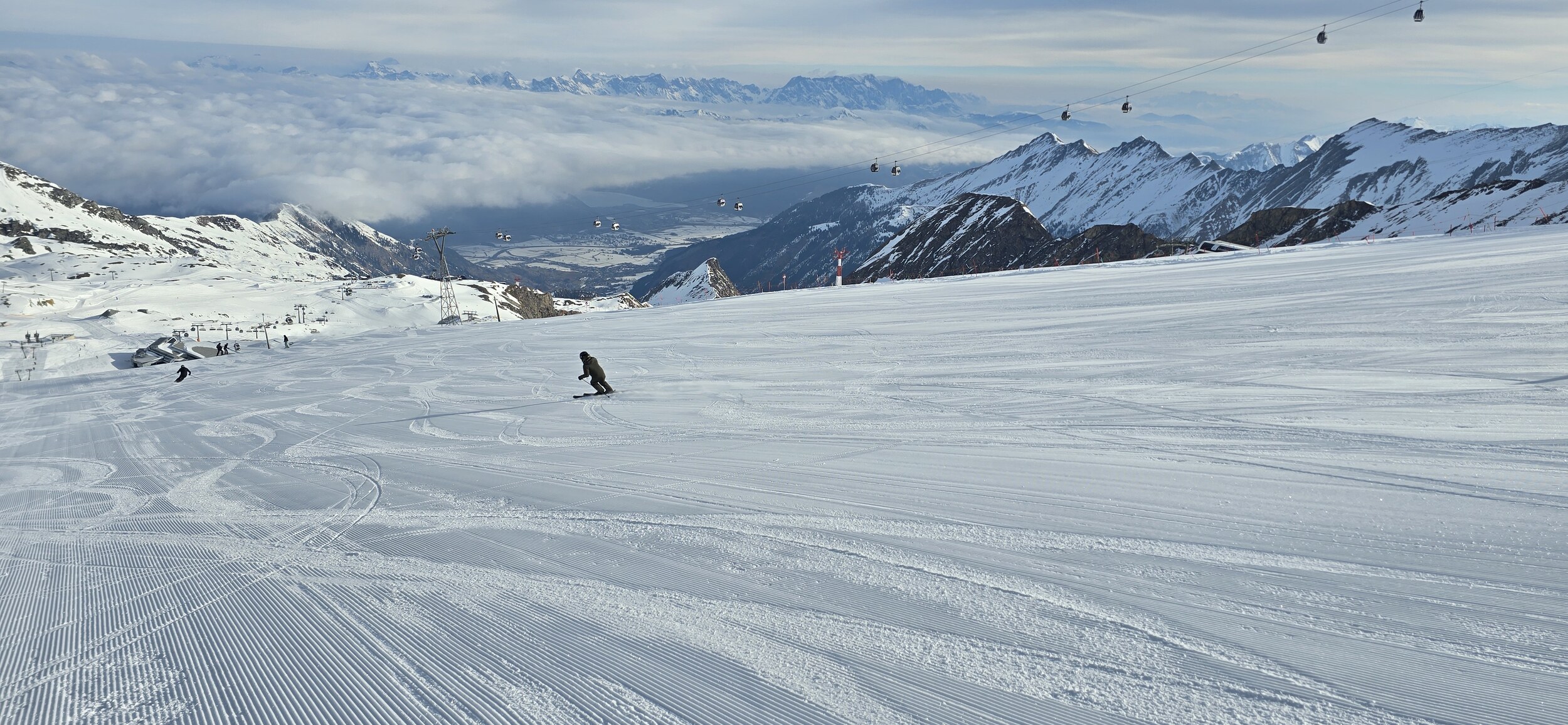 Aber an allen anderen Pisten waren die Verhältnisse von kompakt pulvrig bis kompakt griffig, und gut zu fahren.