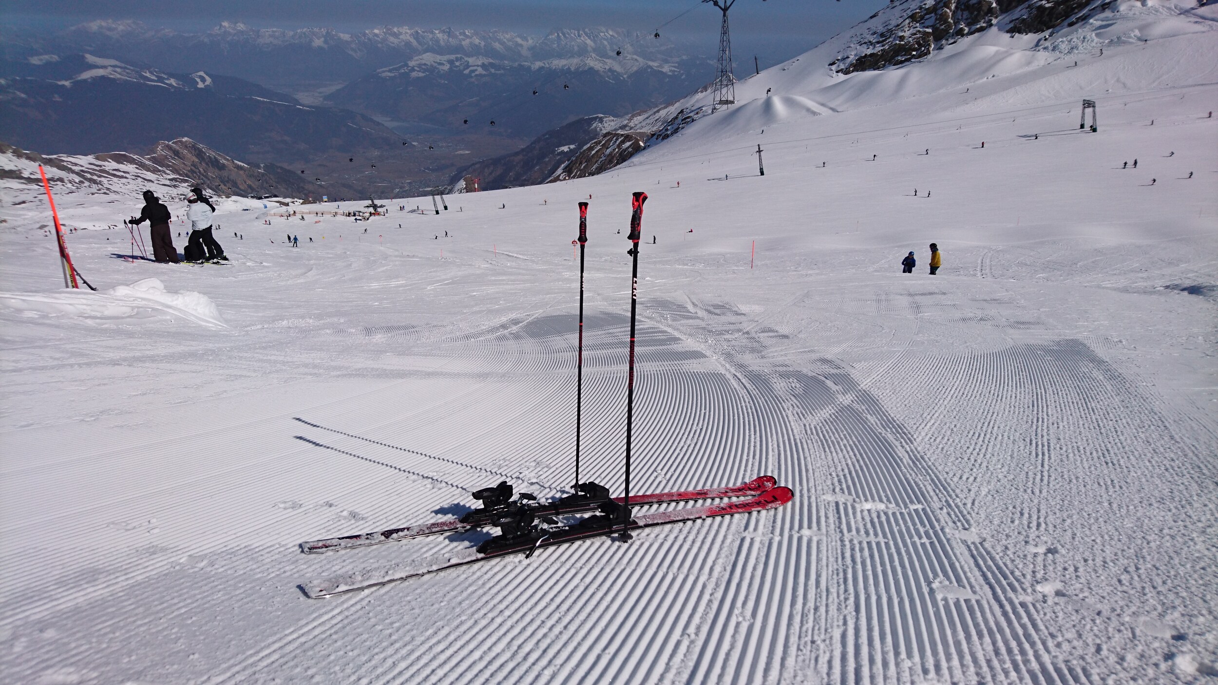 Auch der Umweg über die Kristallbahn hat nur bedingt geholfen, dort ebenfalls Traube und 8 Min Zeitverlust. Kein Wunder dass die Pisten perfekt aussehen, zu diesem Zeitpunkt wollte keiner hier wieder runter: