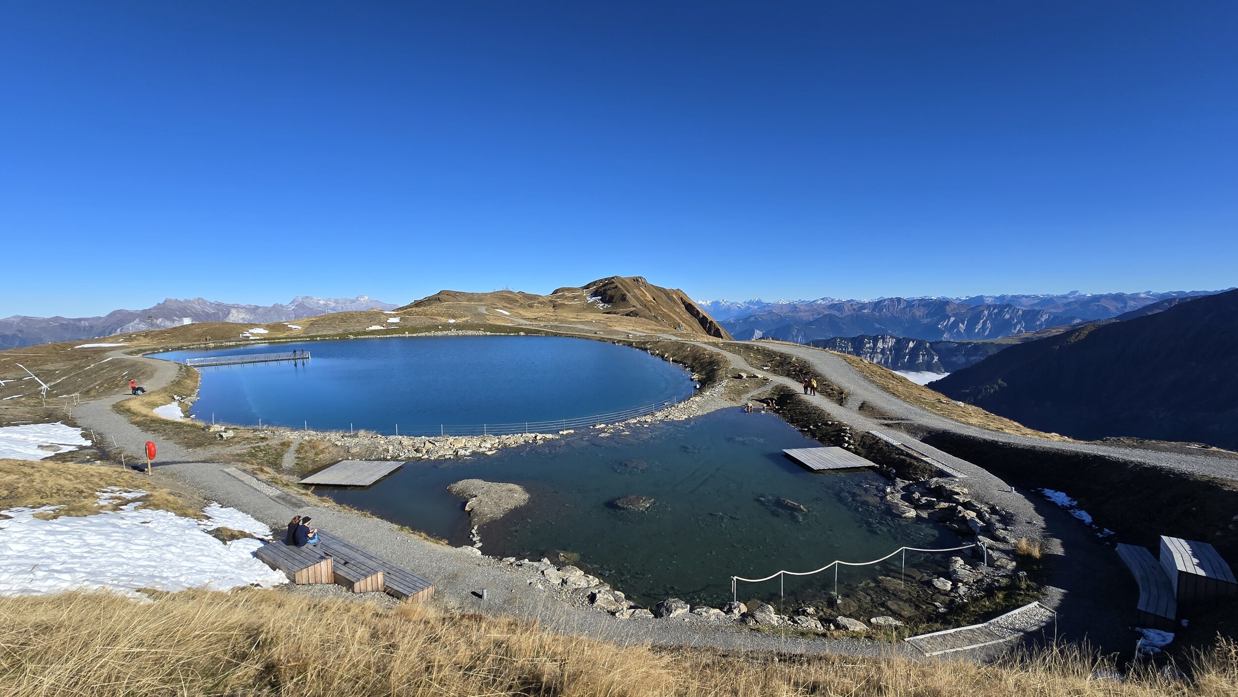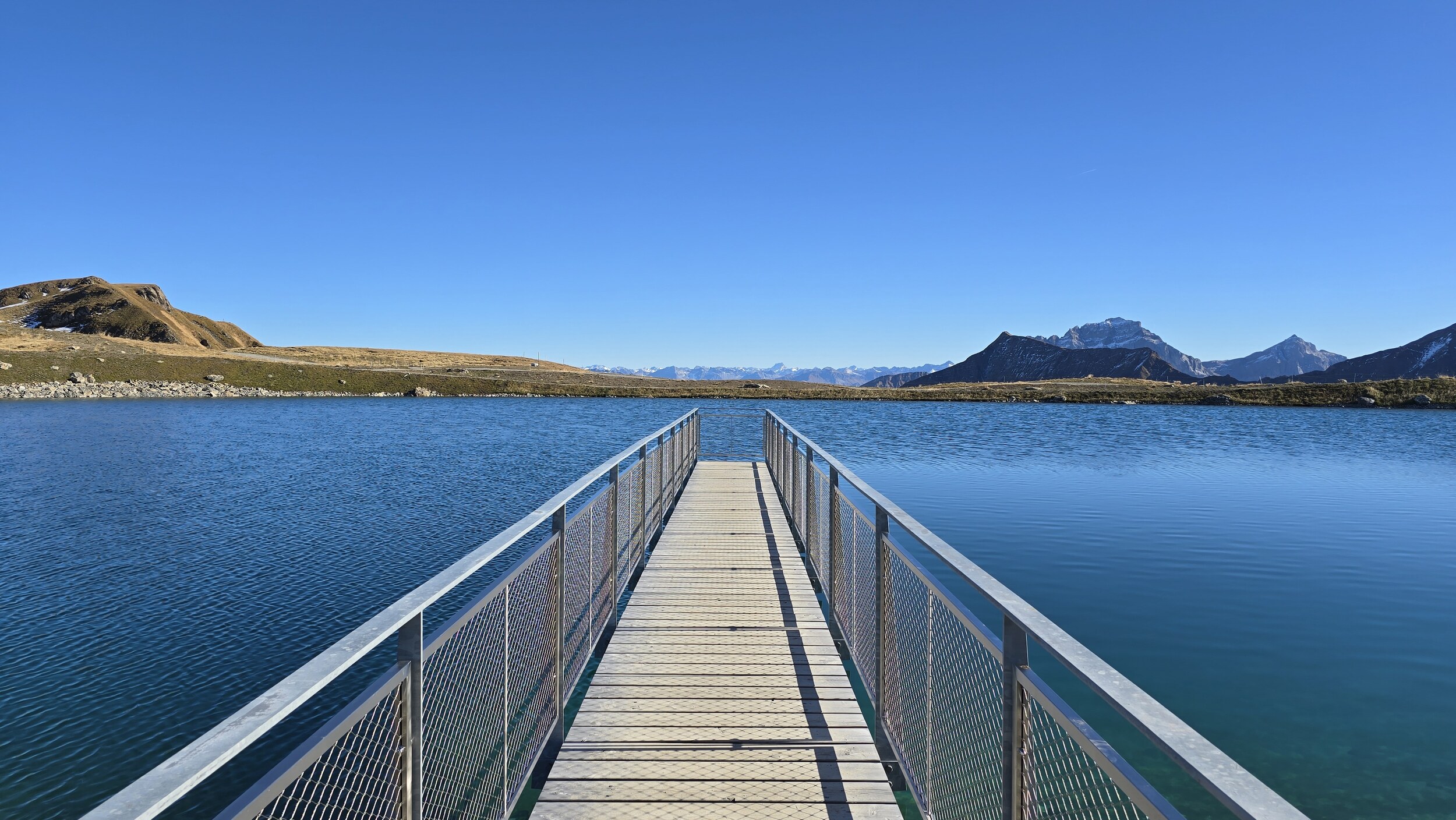 Anbei ein paar Impressionen des neuen grossen Speicherbeckens bei der Pizolhütte. Trotz seiner beachtlichen Ausmasse fügt sich das Bauwerk überraschend harmonisch in die bestehende Landschaft ein. Auf der Seite der Pizolhütte wurde sogar ein kleiner Badebereich angelegt, und in der Mitte lädt ein fotogener Steg zum Verweilen ein. Rund um den See führen neu angelegte Fusswege mit Sitzgelegenheiten, die bereits gestern rege genutzt wurden.