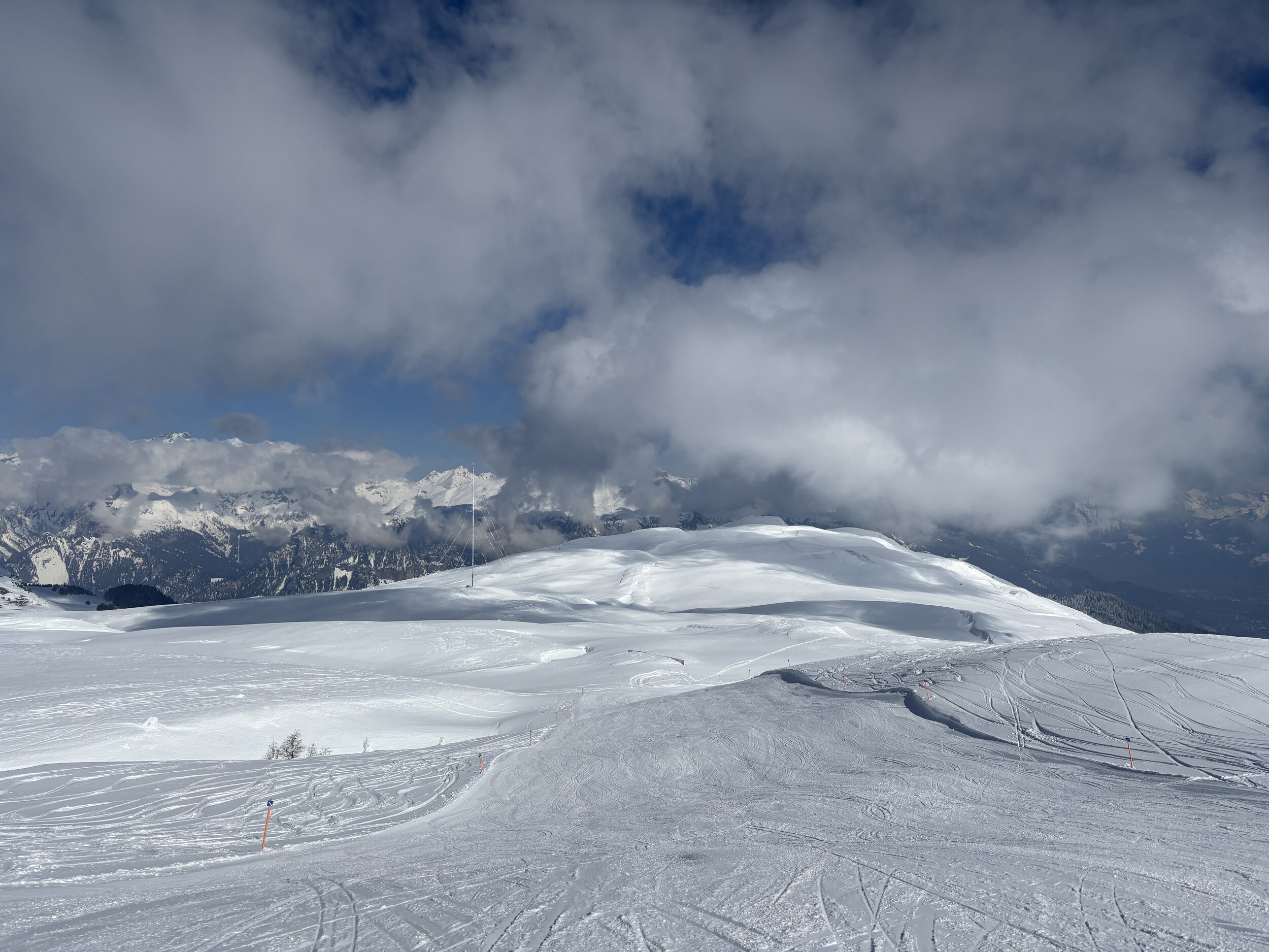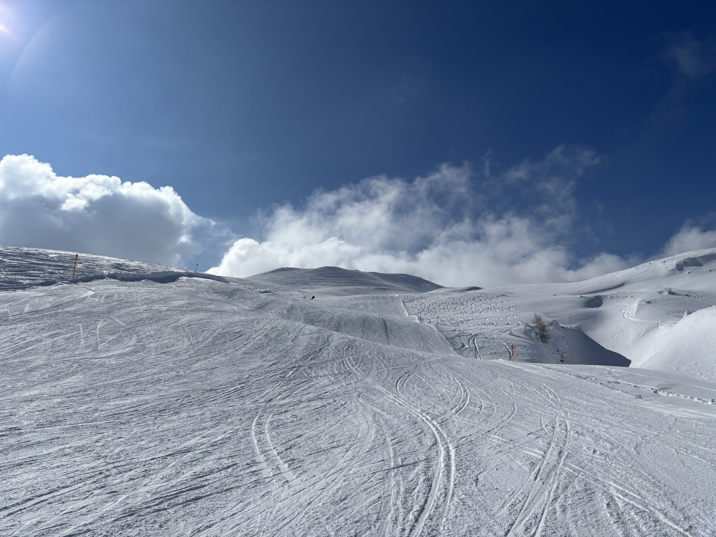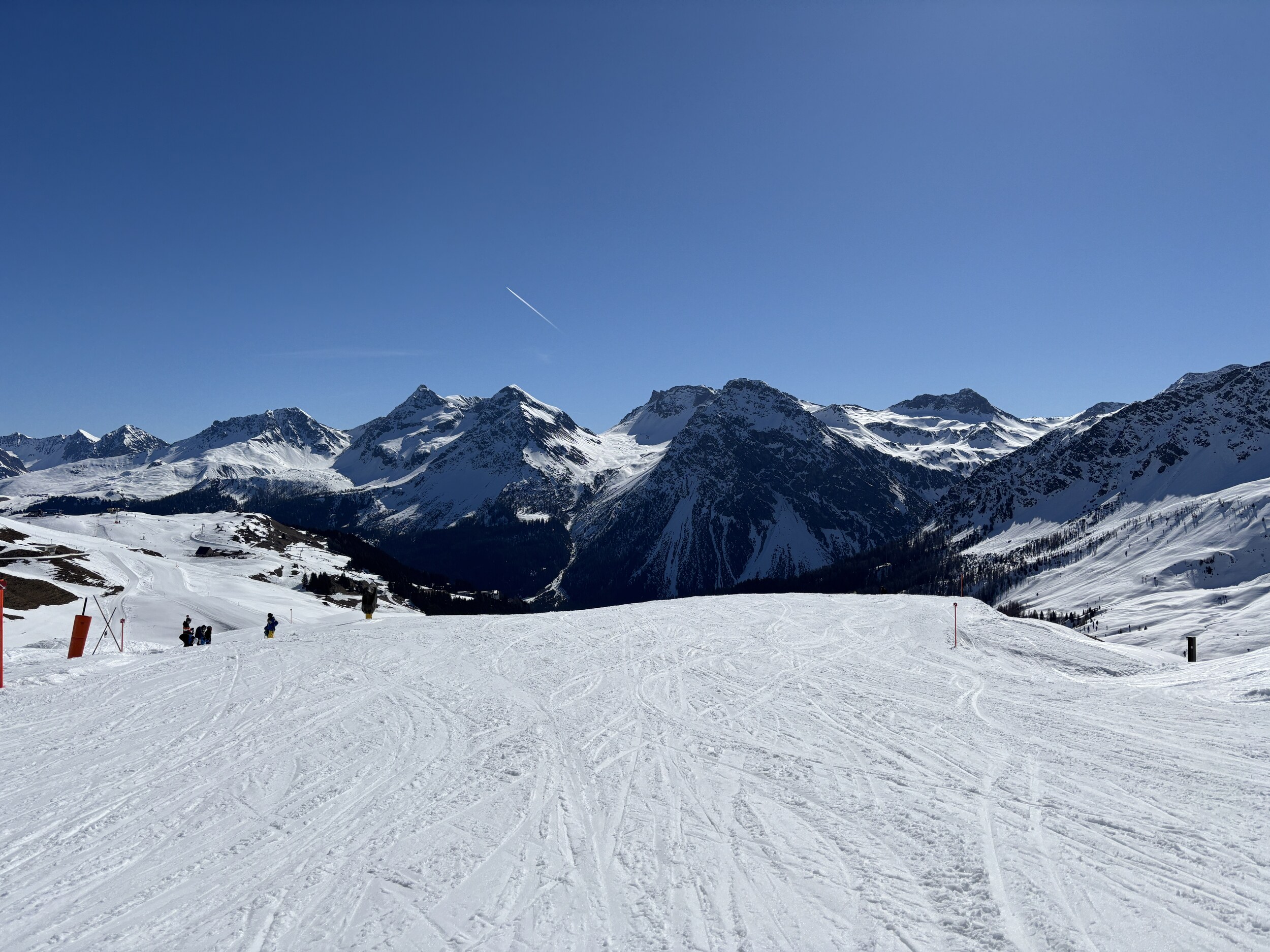 Nach einigen Fahrten an der Ostseite wechselte ich nach Arosa. Bei meiner Ankunft um 09:35 Uhr auf dem Hörnli waren bereits alle Pisten drüben aufgesultzt. Zudem hatte es hier deutlich mehr Leute. Voll war es nicht, aber auch nicht megaleer. Als Referenz: Auf 11 von 12 Liftfahrten war ich alleine auf dem Sessel.