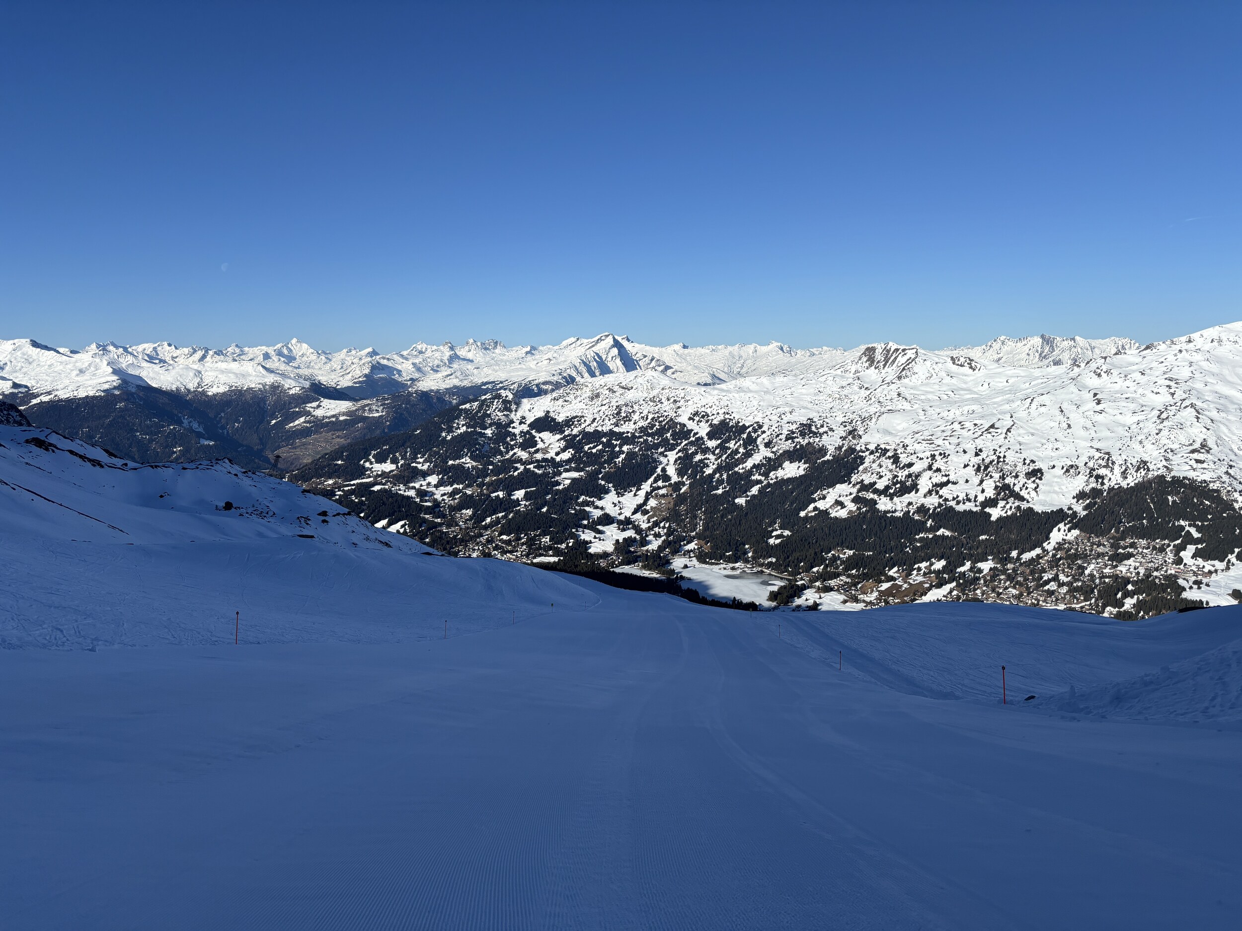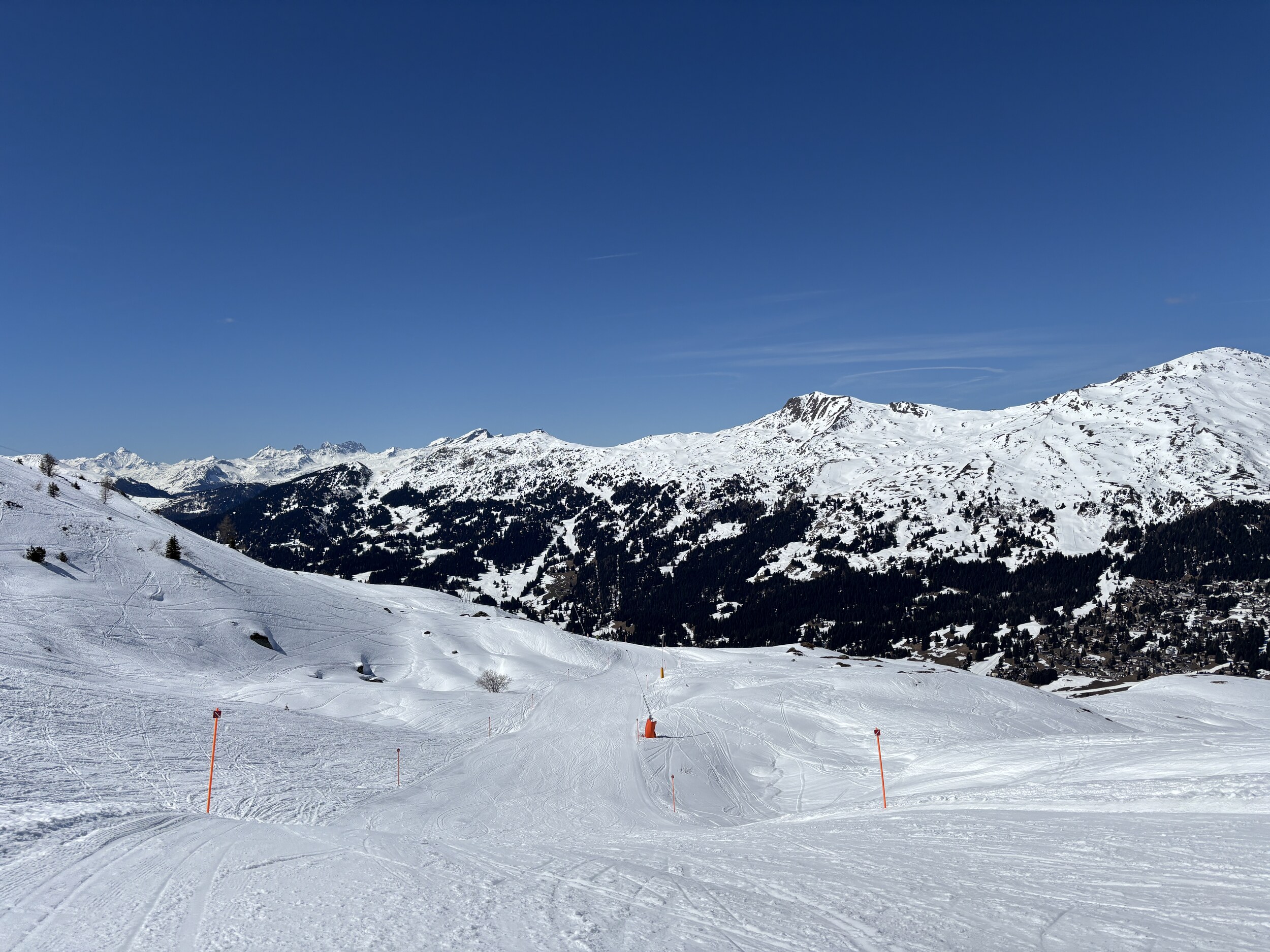 Heute ein perfekter Morgen! Wir nahmen die erste Gondel aufs Rothorn (mit genialer Piste, leider ohne Foto) und dann direkt rüber nach Arosa, wo es bis zehn Uhr extrem leer war, danach absolut ok, nirgends Dichtestress oder Anstehen an den Bahnen. Ausnahme: einmal etwa drei Minuten am Carmenna. Auch im Restaurant Erzhorn hatte es neben uns nur eine Handvoll weiterer Gäste.