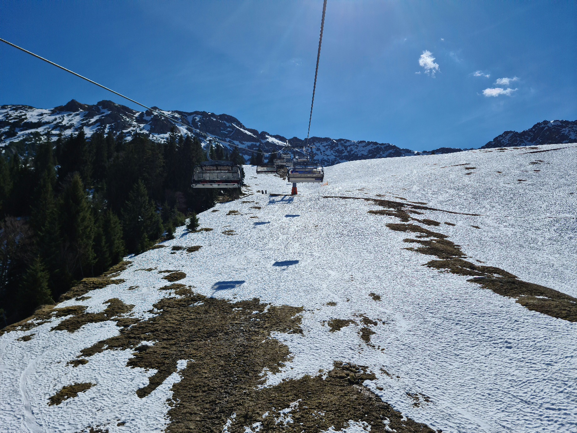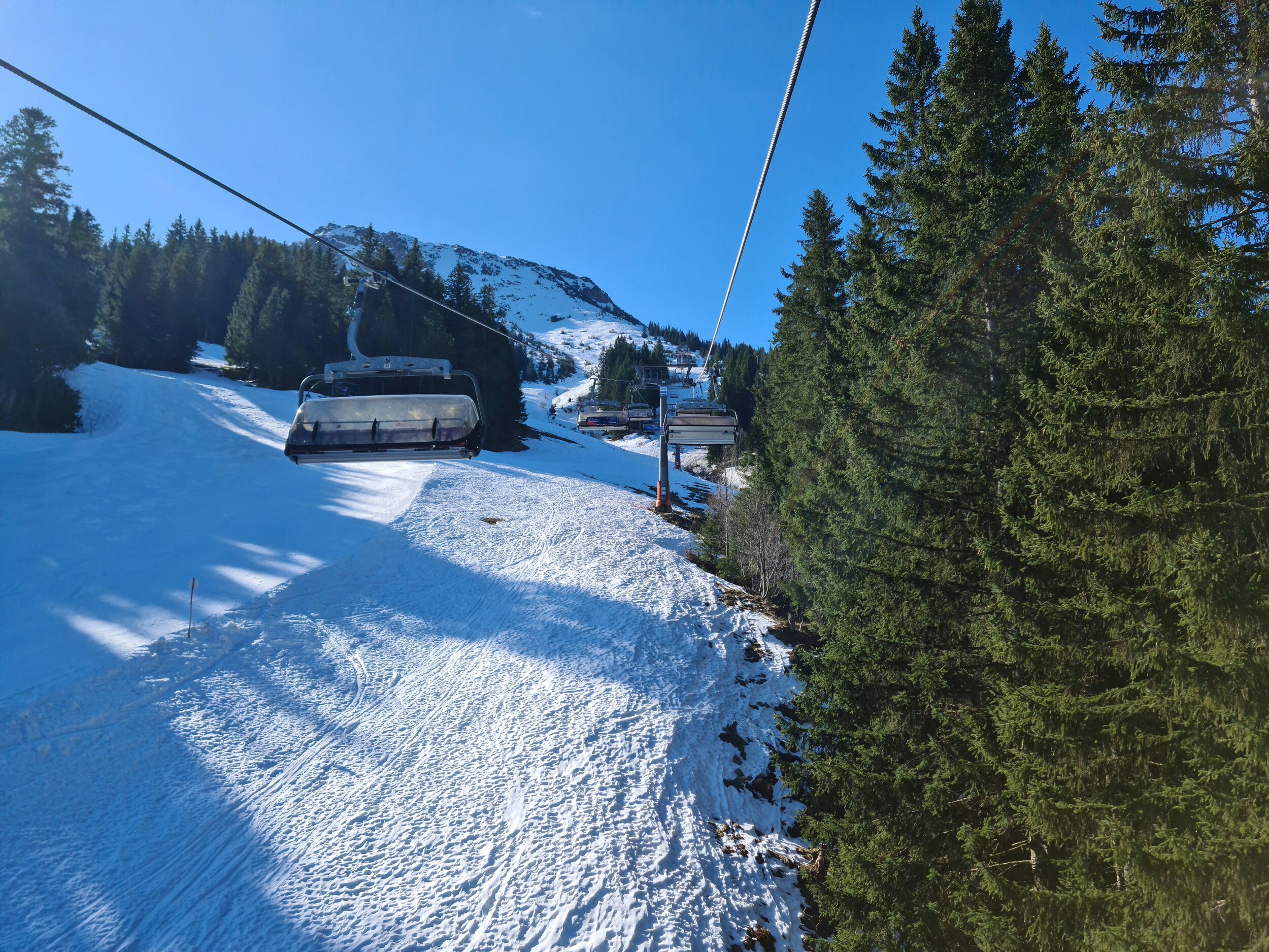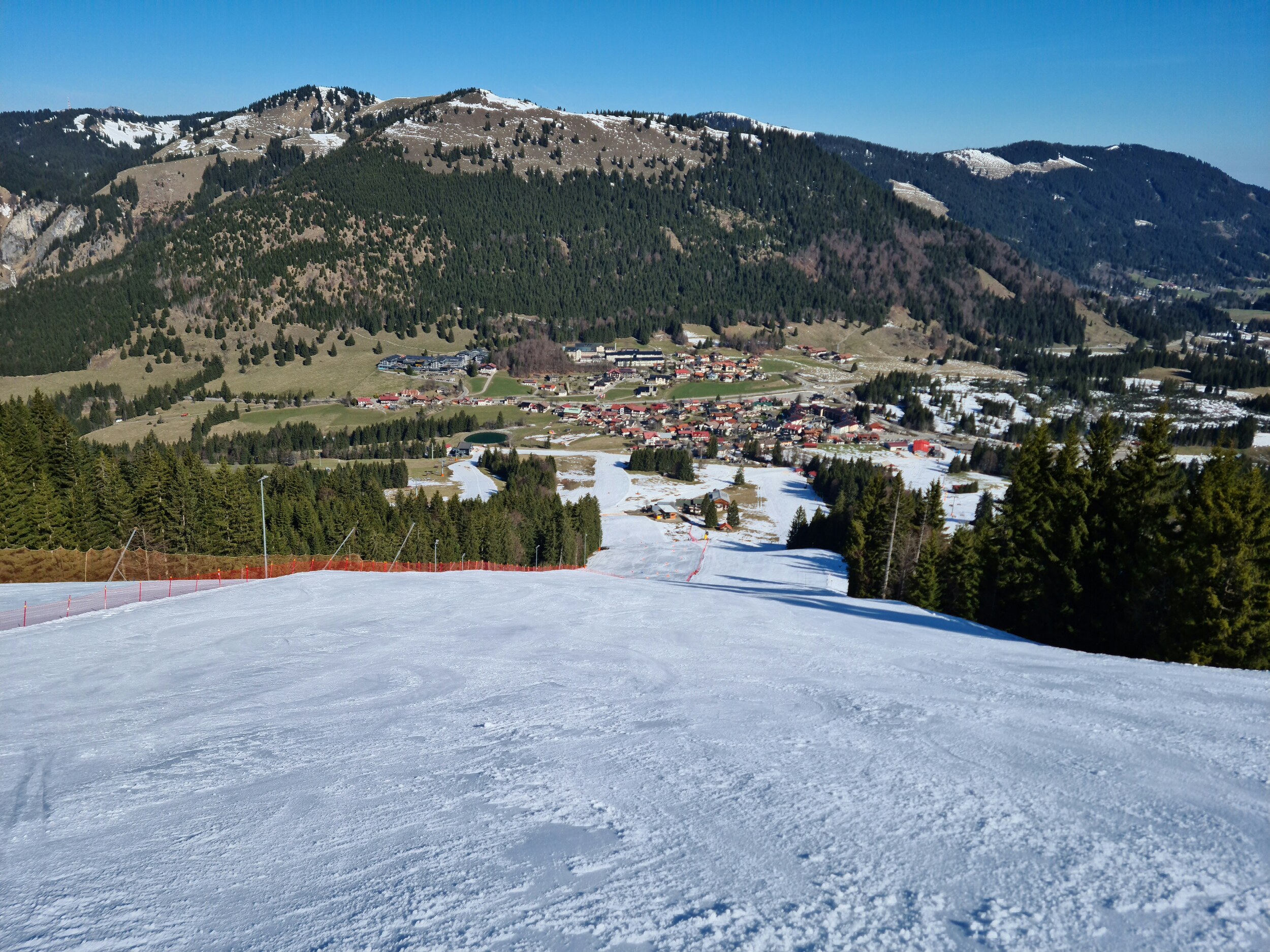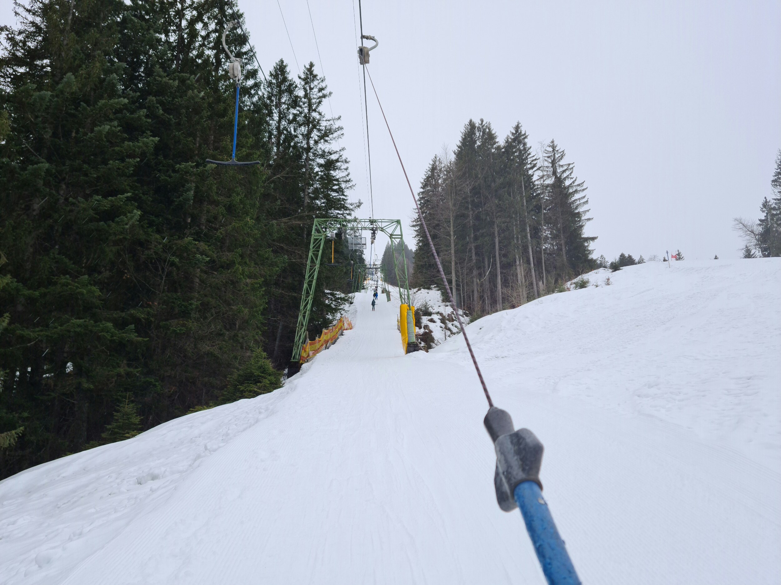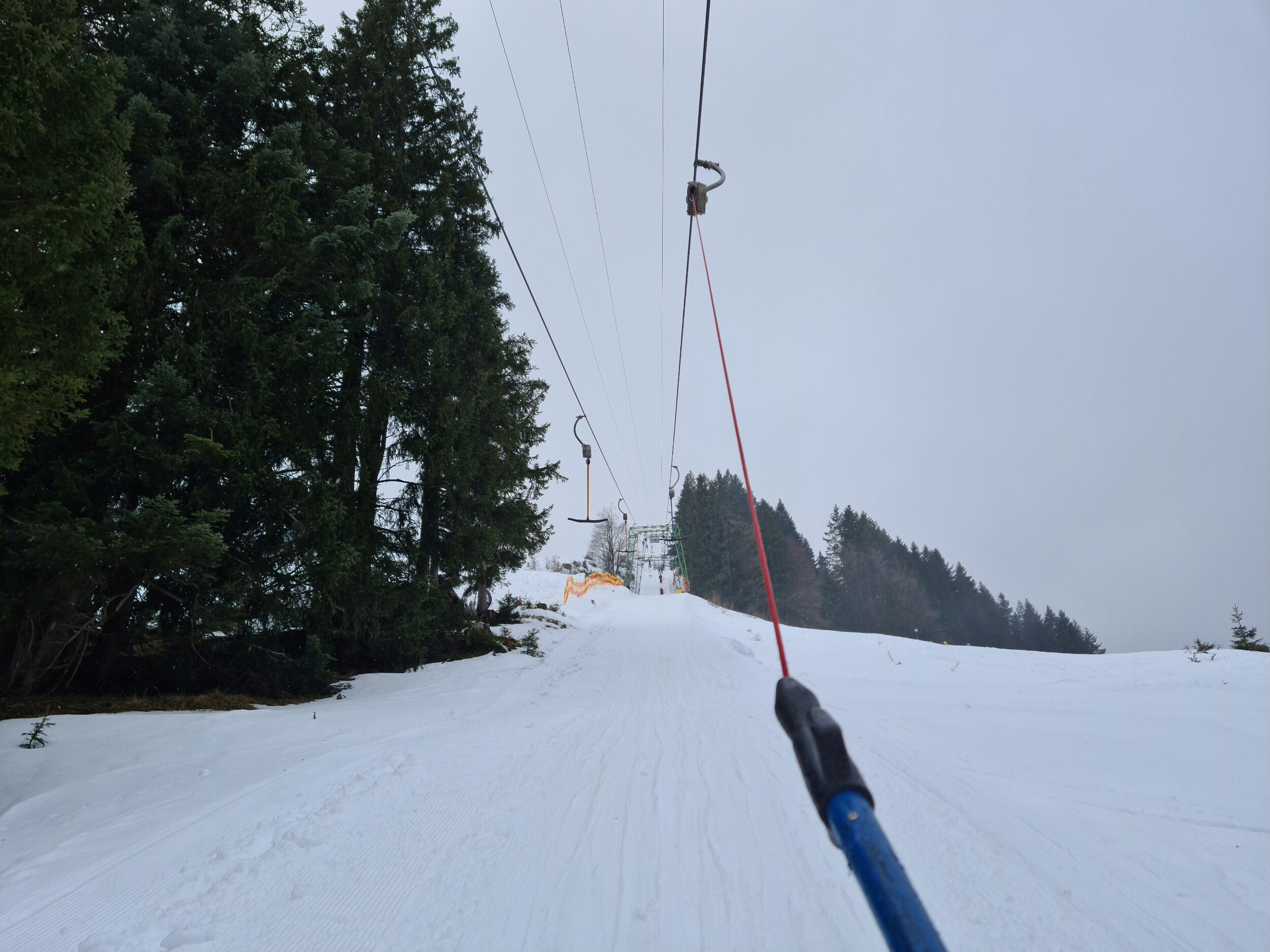 Heute mal live von den Spieserliften. Aktuell äim unteren Teil Regen, in der oberen Hälfte des großen Spieserlifts dann Schneefall, aber zum Glück momentan nur leichter Niederschlag. Die rote Piste ist ziemlich gut, der Schnee konnte zwar nicht stark frieren bzw. ist vom Regen etwas angetaut, aber dennoch schön hart. Abgesehen von einer braune. Stelle im oberen Bereich der Abfahrt liegt auch noch genug Schnee. Die anderen Pisten muss ich noch abfahren. Ansonsten ist es hier auch nicht überlaufen, am großen Lift sind geschätzt 50% der Bügel besetzt.