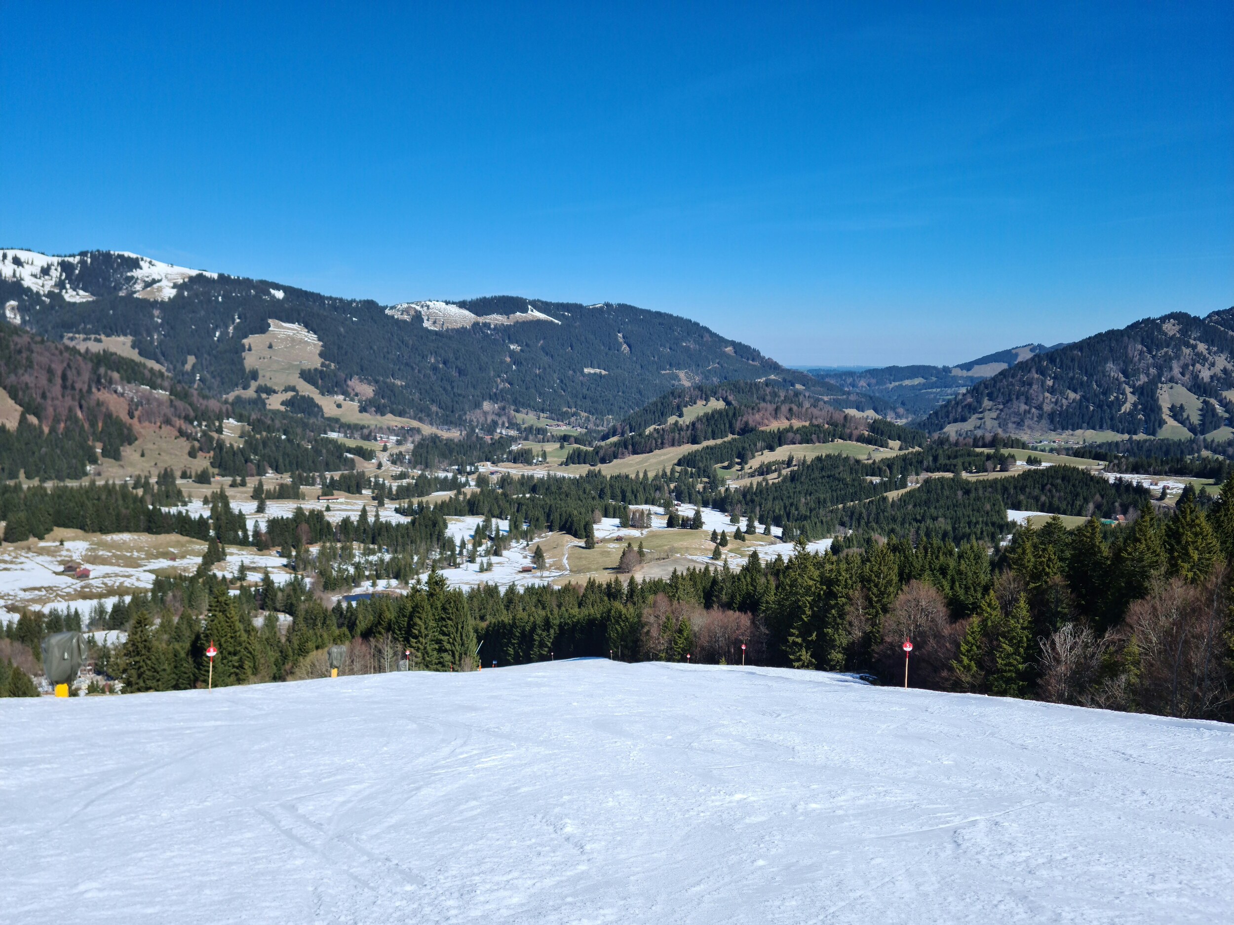 So geht Saisonverlängerung! Oberjoch hat die Saison bis einschließlich morgen an allen Bahnen außer der Grenzwiesbahn (Edit: Schwandenbahn hatte gestern auch ihren letzten Tag) verlängert. Entsprechend habe ich dem Gebiet gestern mal einen Besuch abgestattet. Es war zunächst recht leer, wobei an der Iselerbahn auch Trainingsbetrieb war, bis zum frühen Mittag kamen dann ein paar Leute dazu, warten musste ich aber nie und die Bahnen waren auch nicht allzu stark ausgelastet. Insgesamt hat es Spaß gemacht, wenngleich die Pisten durch die warmen Temperaturen nach einem ziemlich harten Morgen immer weicher wurden. Zwischen 10 und 11 Uhr fand ich es am besten. Eine tolle Aktion. 8 Punkte!