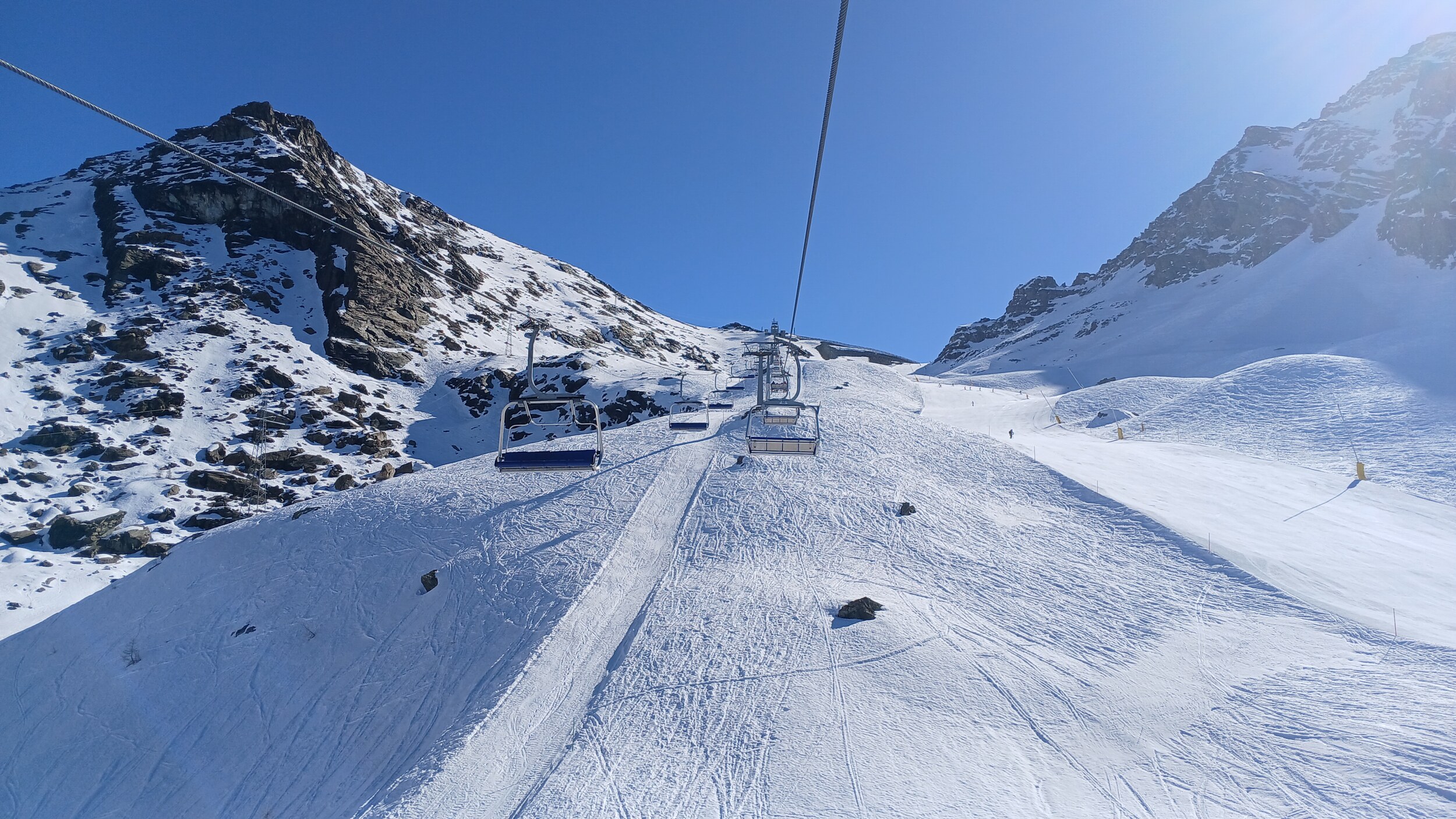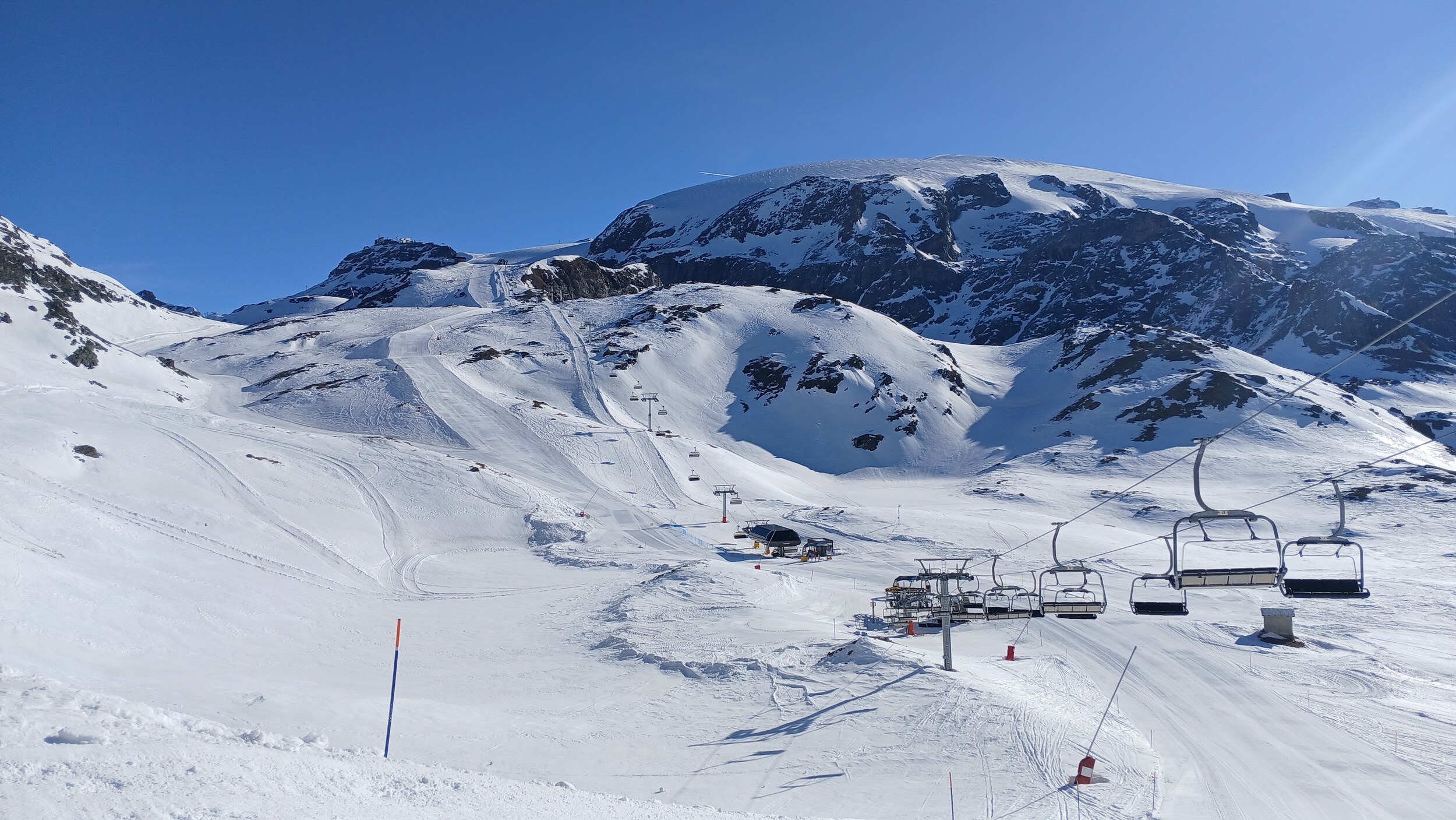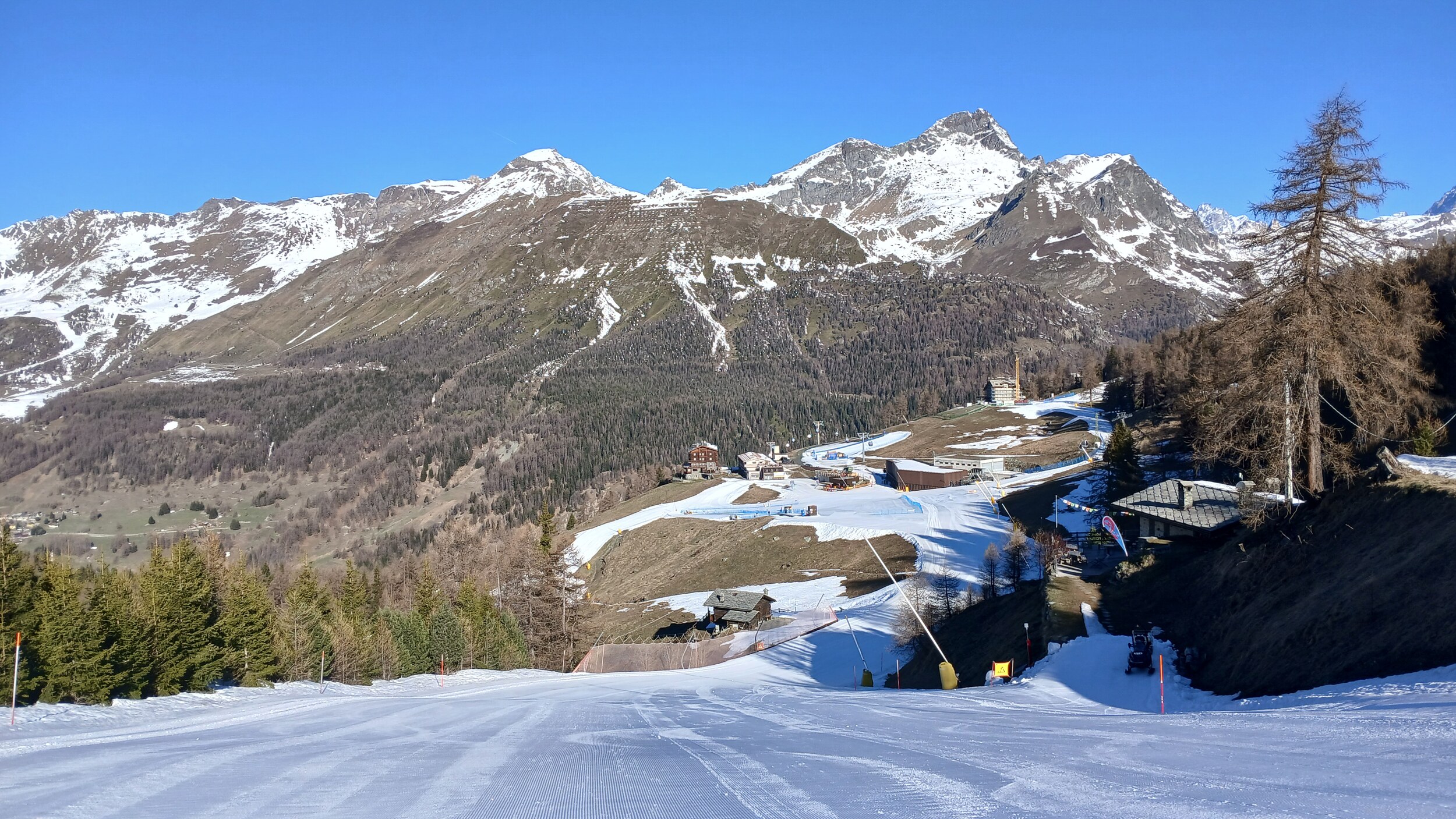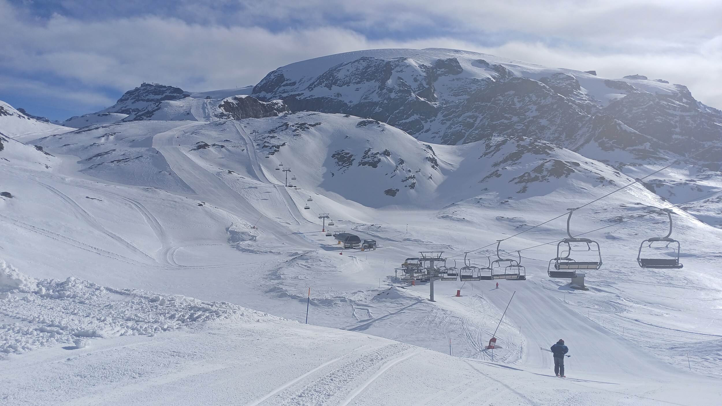 Die Pisten in Valtourenche sind in den oberen Bereichen aber noch sehr gut. Hier war scheinbar nicht viel los. Das muss ich also auch in den noch verbliebenen zwei Tagen im Gebiet nachholen. Der Betriebsschluss hier ist übrigens doch sehr früh (Bec Carre z.B. bereits ohne Not um 15:45 Uhr)