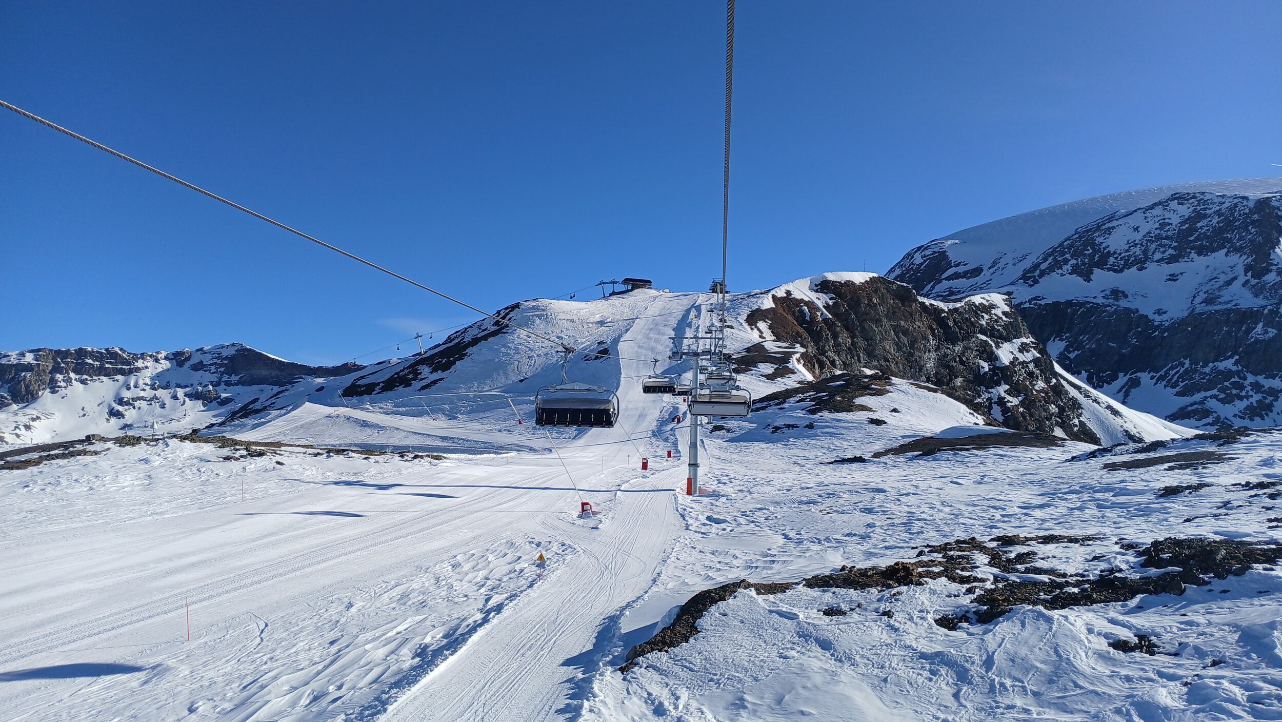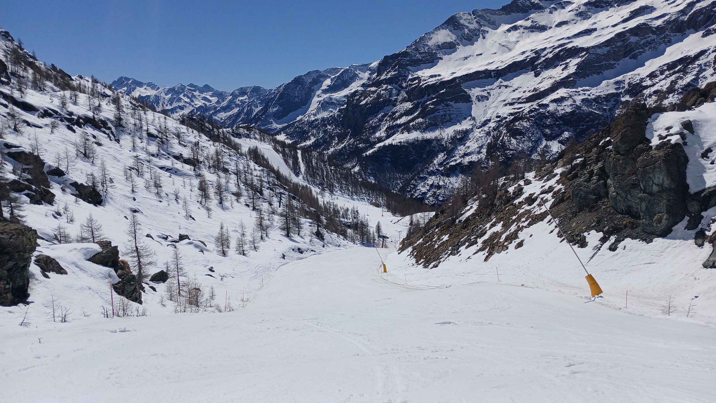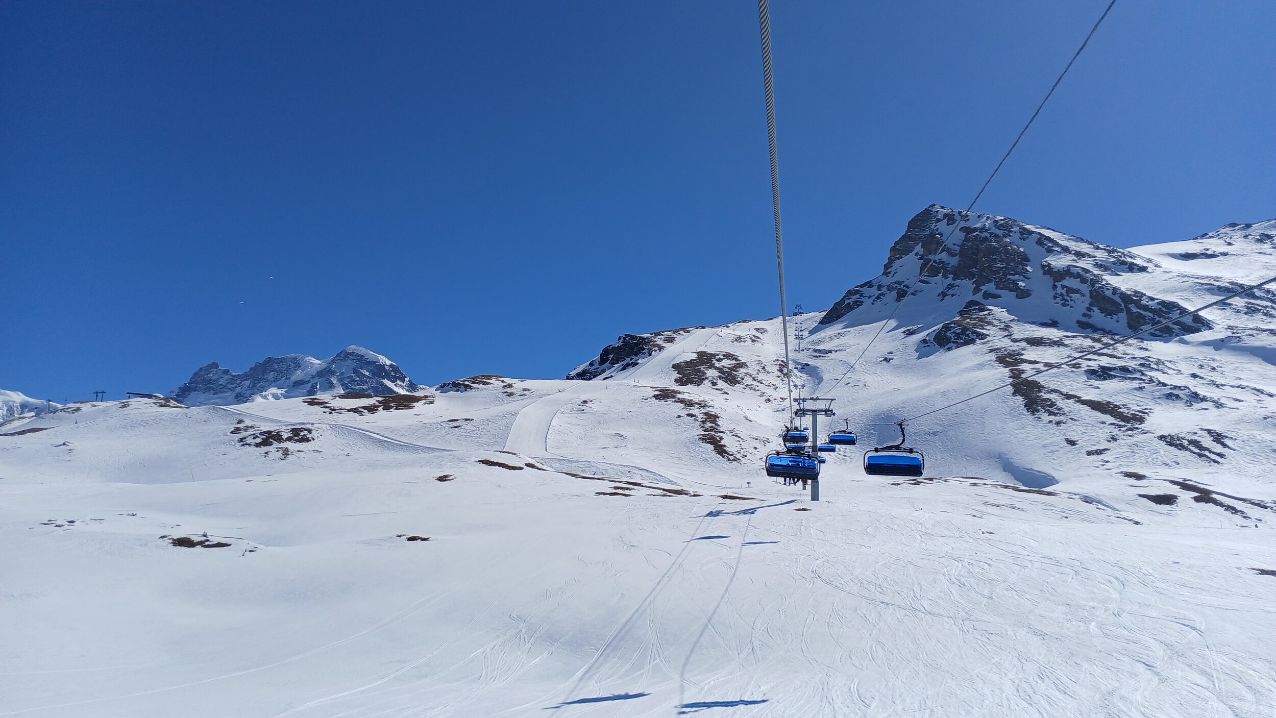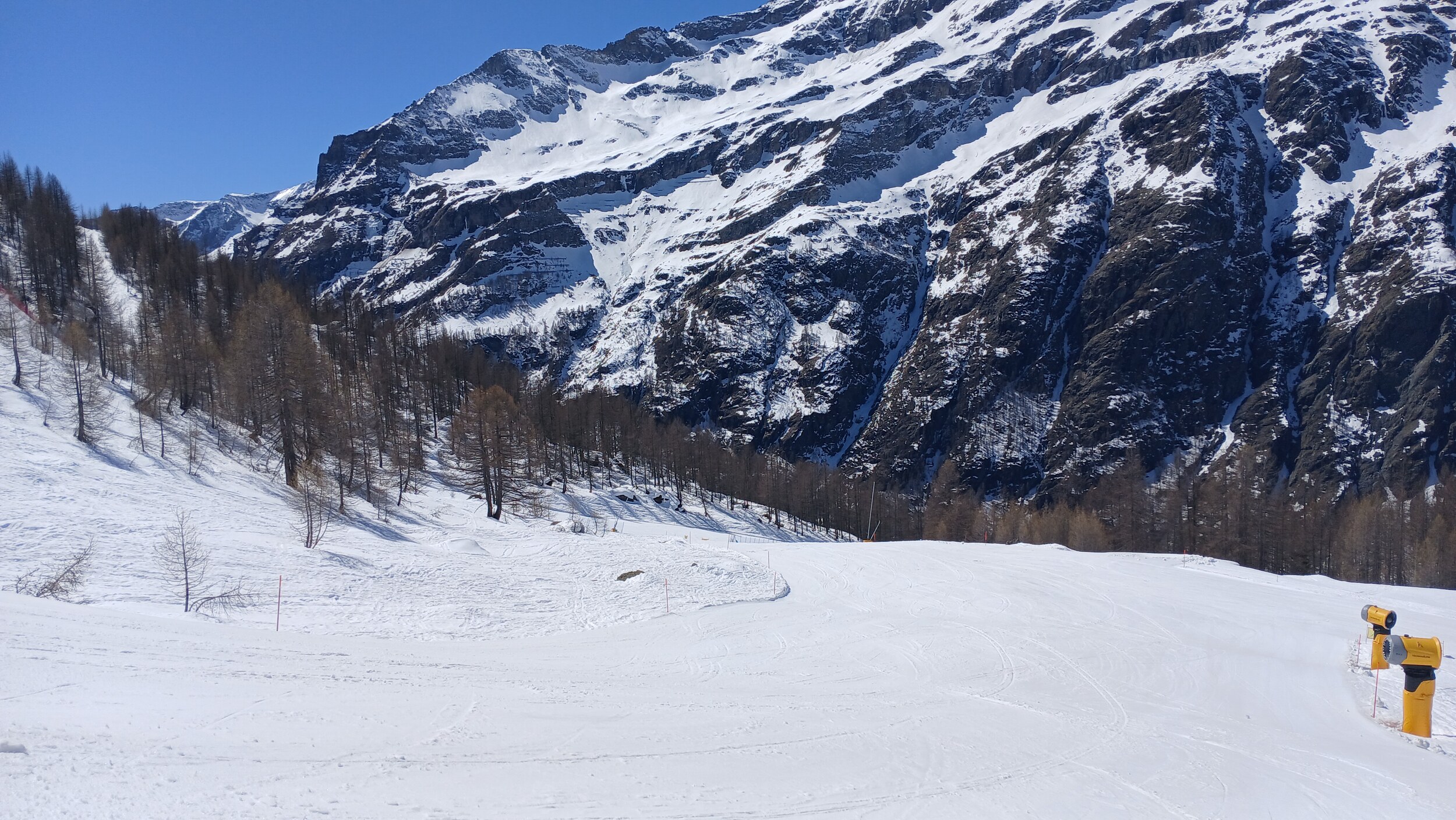 Die Pisten in Valtourenche sind in den oberen Bereichen aber noch sehr gut. Hier war scheinbar nicht viel los. Das muss ich also auch in den noch verbliebenen zwei Tagen im Gebiet nachholen. Der Betriebsschluss hier ist übrigens doch sehr früh (Bec Carre z.B. bereits ohne Not um 15:45 Uhr)