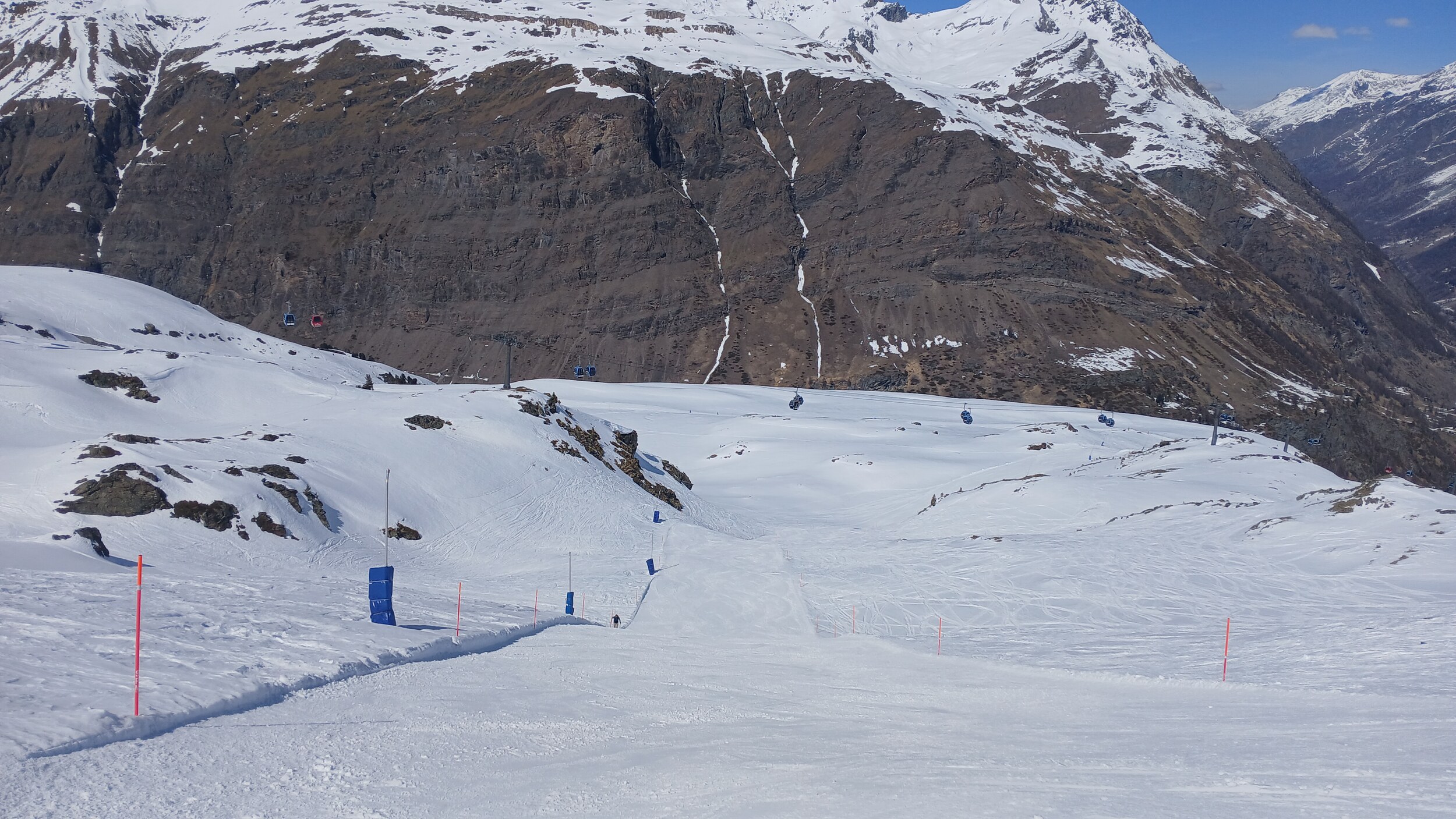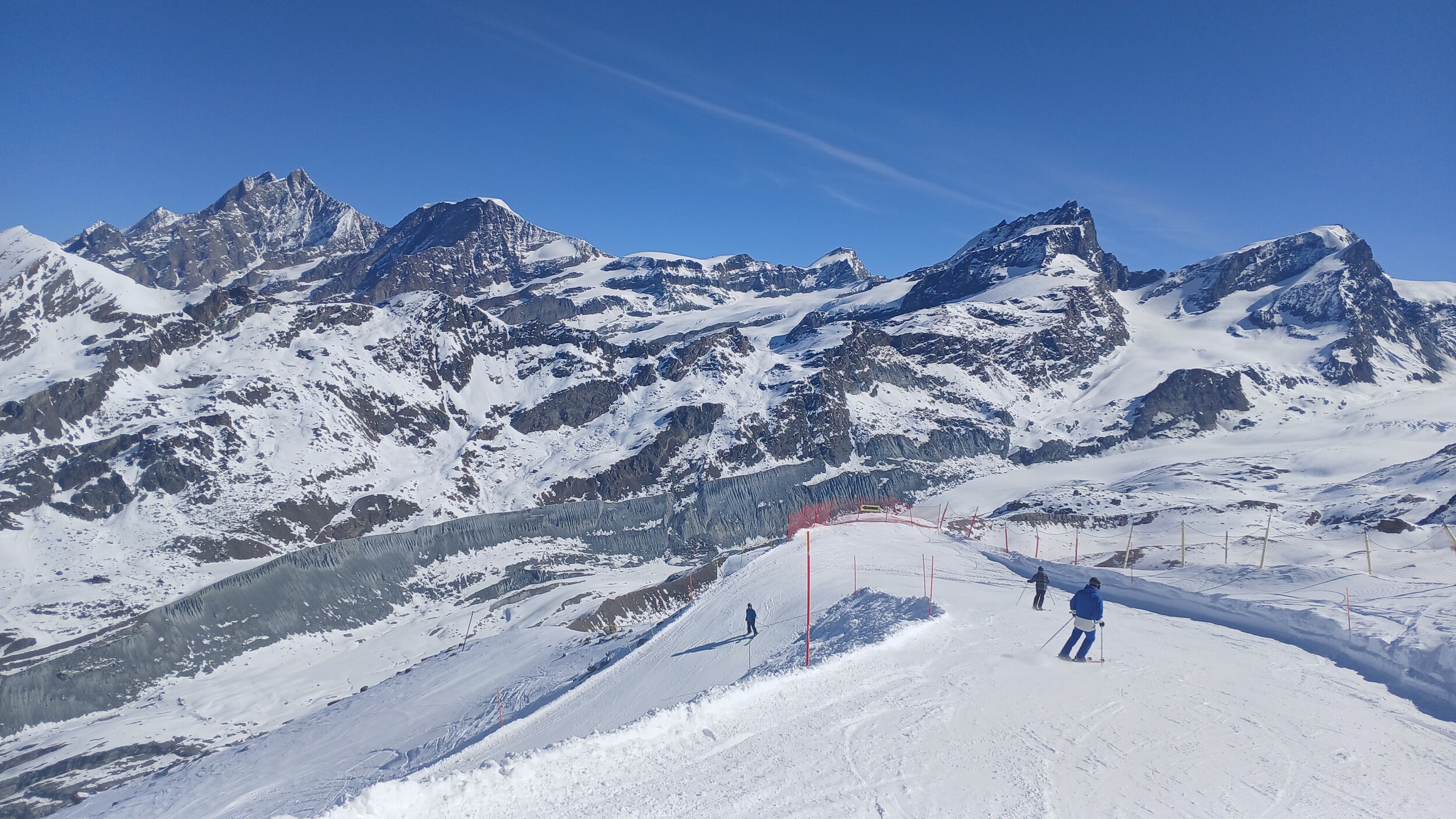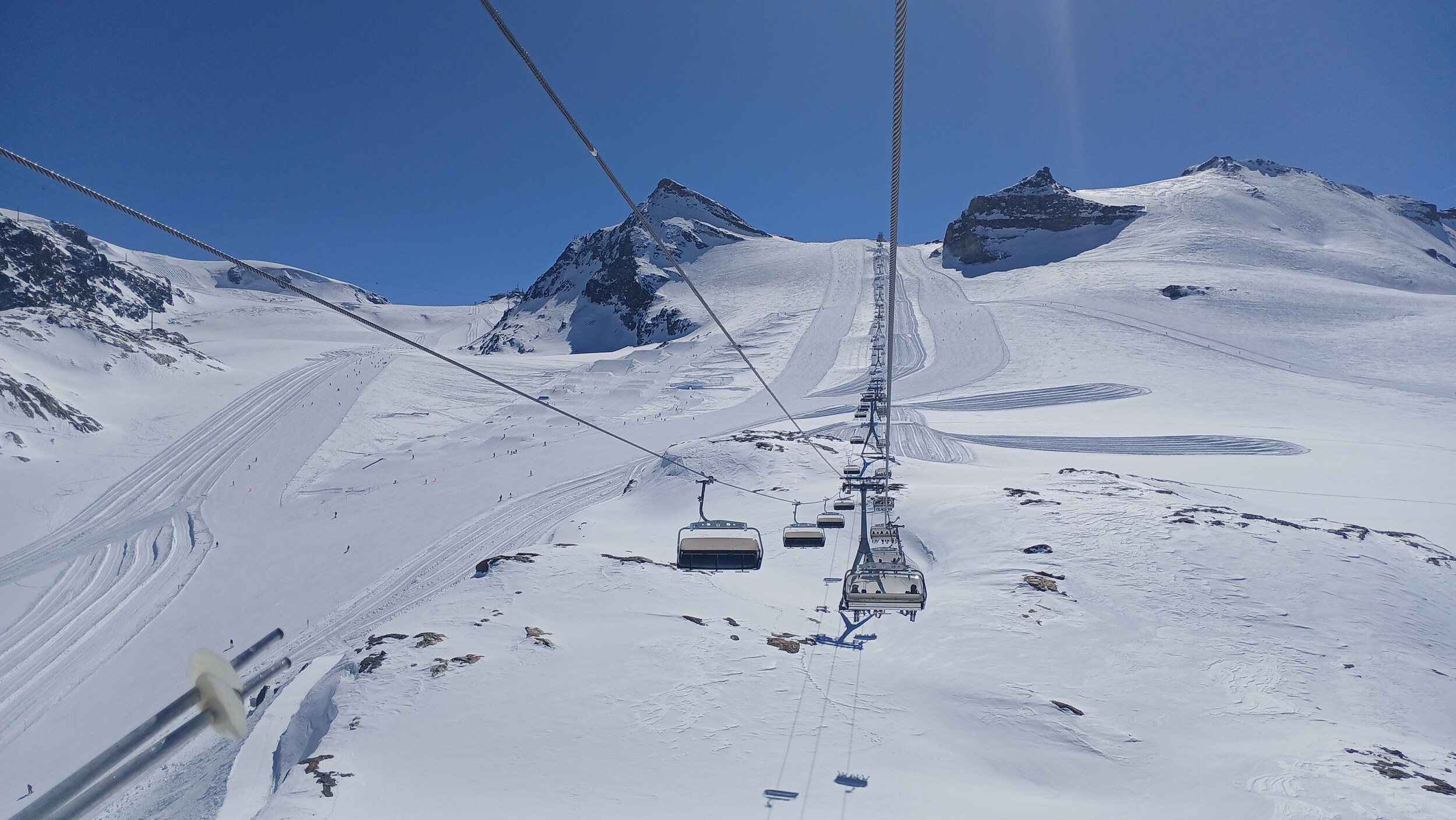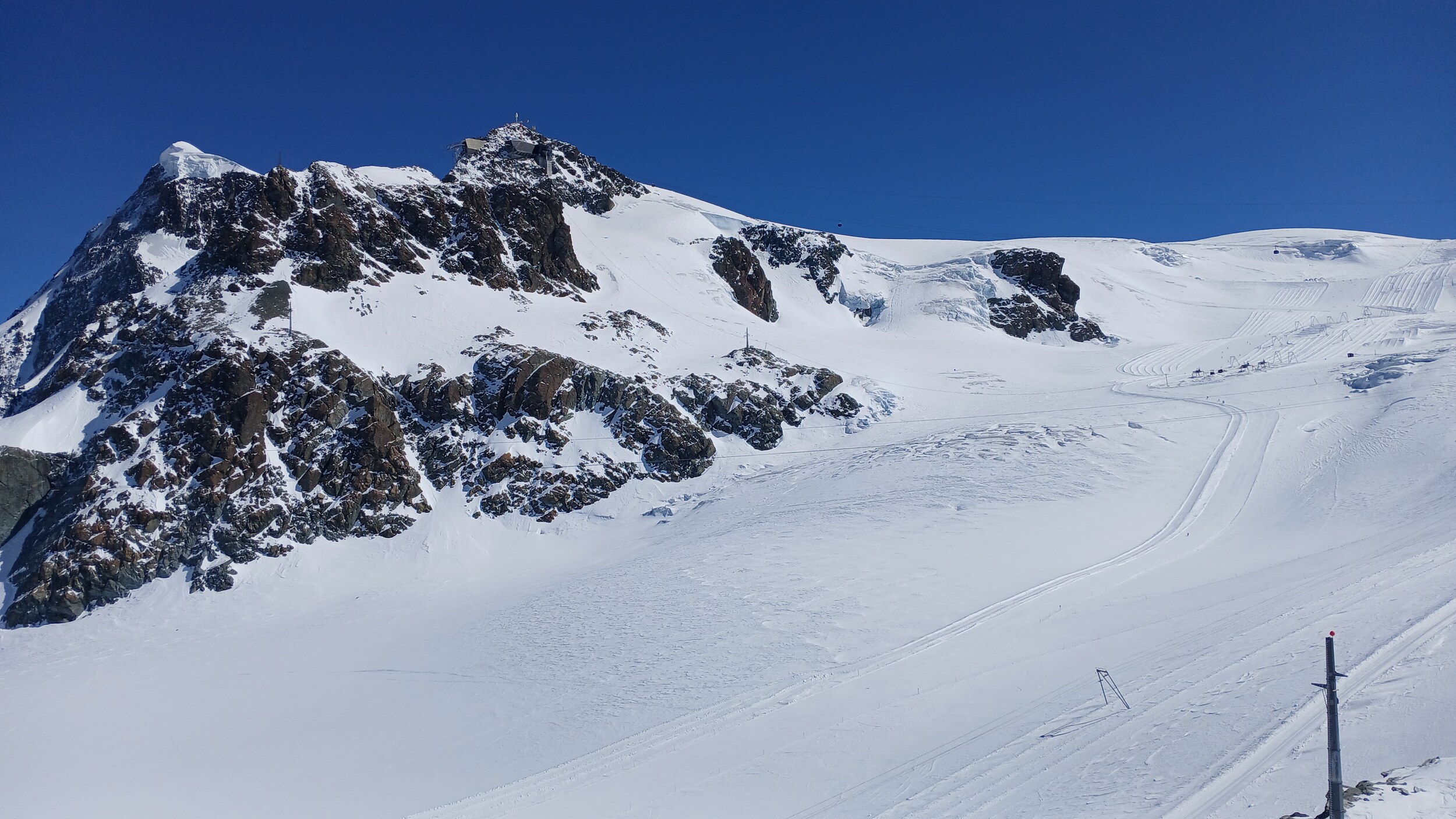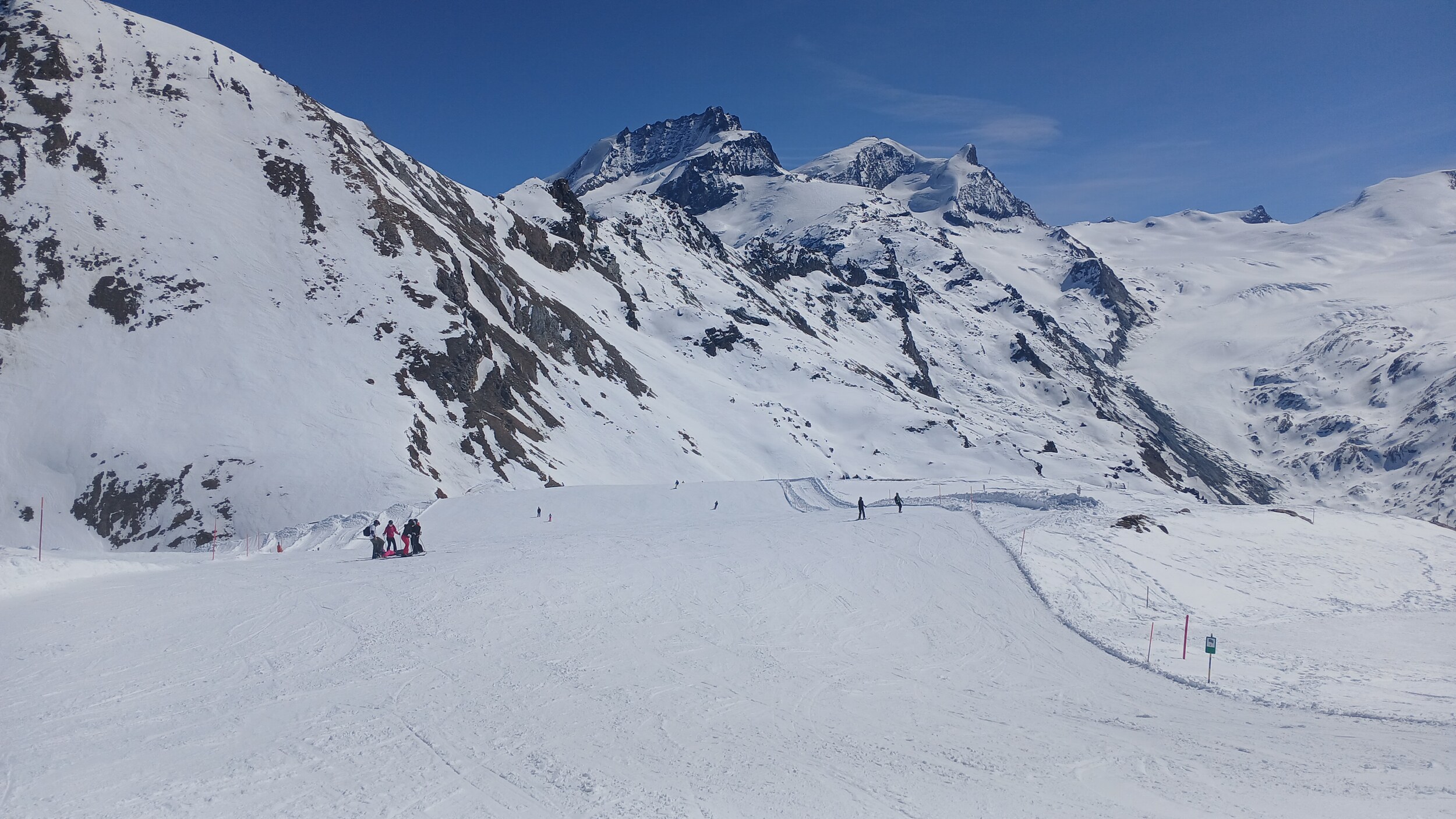 Die Pisten hier sind aber recht flach. Der Sommerskibetrieb dürfte eher langweilig sein und ich würde behaupten, dass die Zermatter Bergbahnen in nicht all zu ferner Zukunft Probleme bekommen, überhaupt noch ein ausreichendes Gefälle anzubieten, um alle Relationen aufrecht zu erhalten