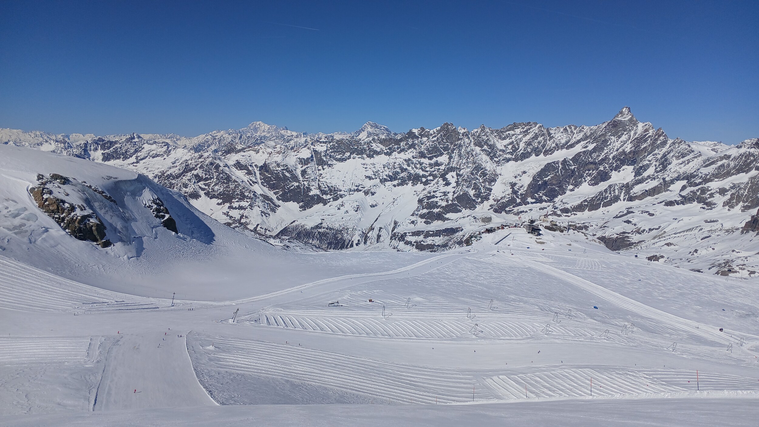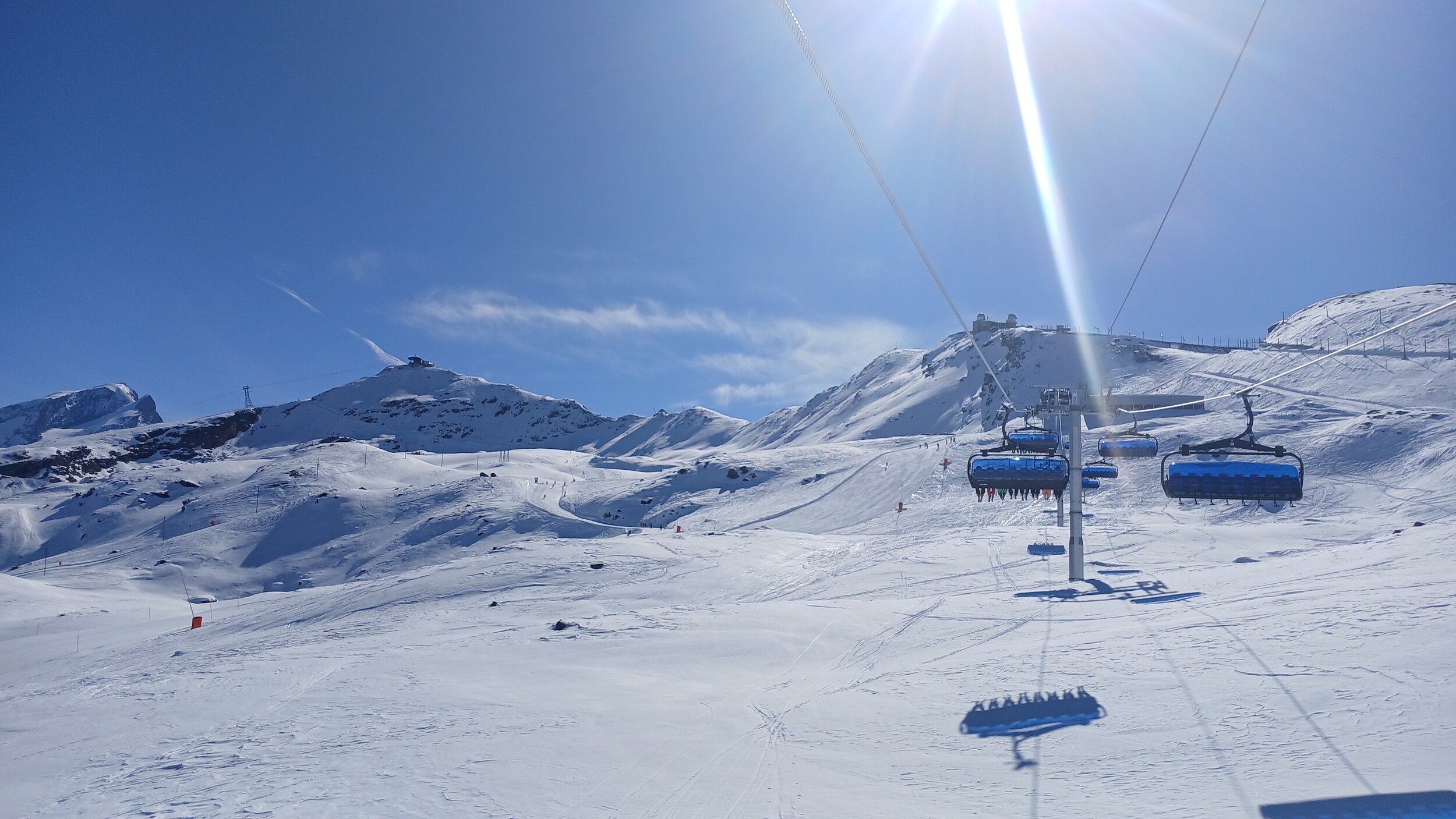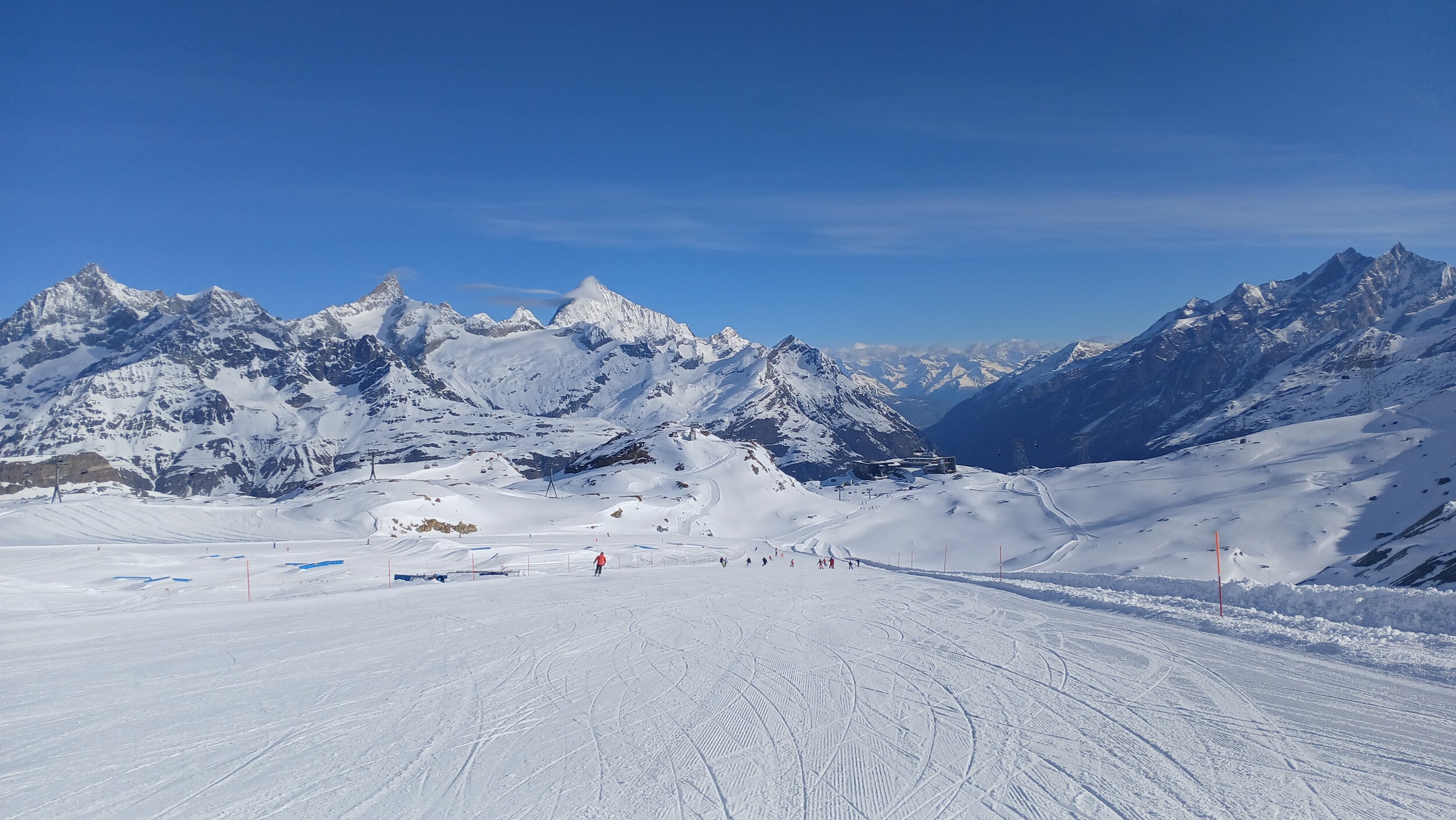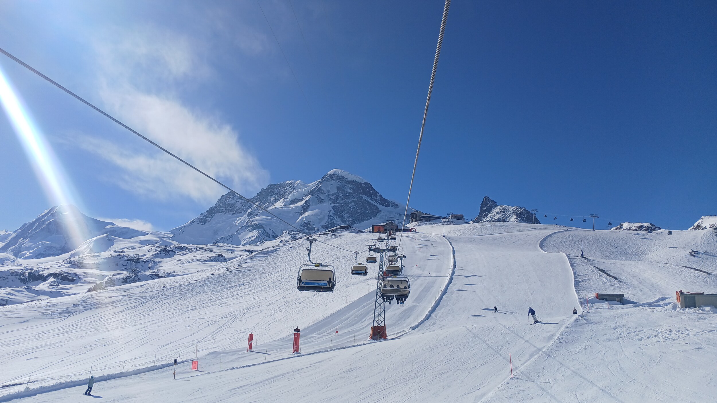 Die Pisten hier sind aber recht flach. Der Sommerskibetrieb dürfte eher langweilig sein und ich würde behaupten, dass die Zermatter Bergbahnen in nicht all zu ferner Zukunft Probleme bekommen, überhaupt noch ein ausreichendes Gefälle anzubieten, um alle Relationen aufrecht zu erhalten