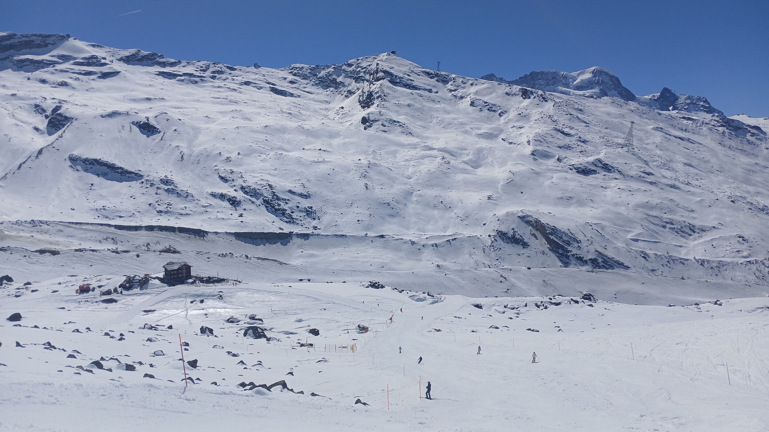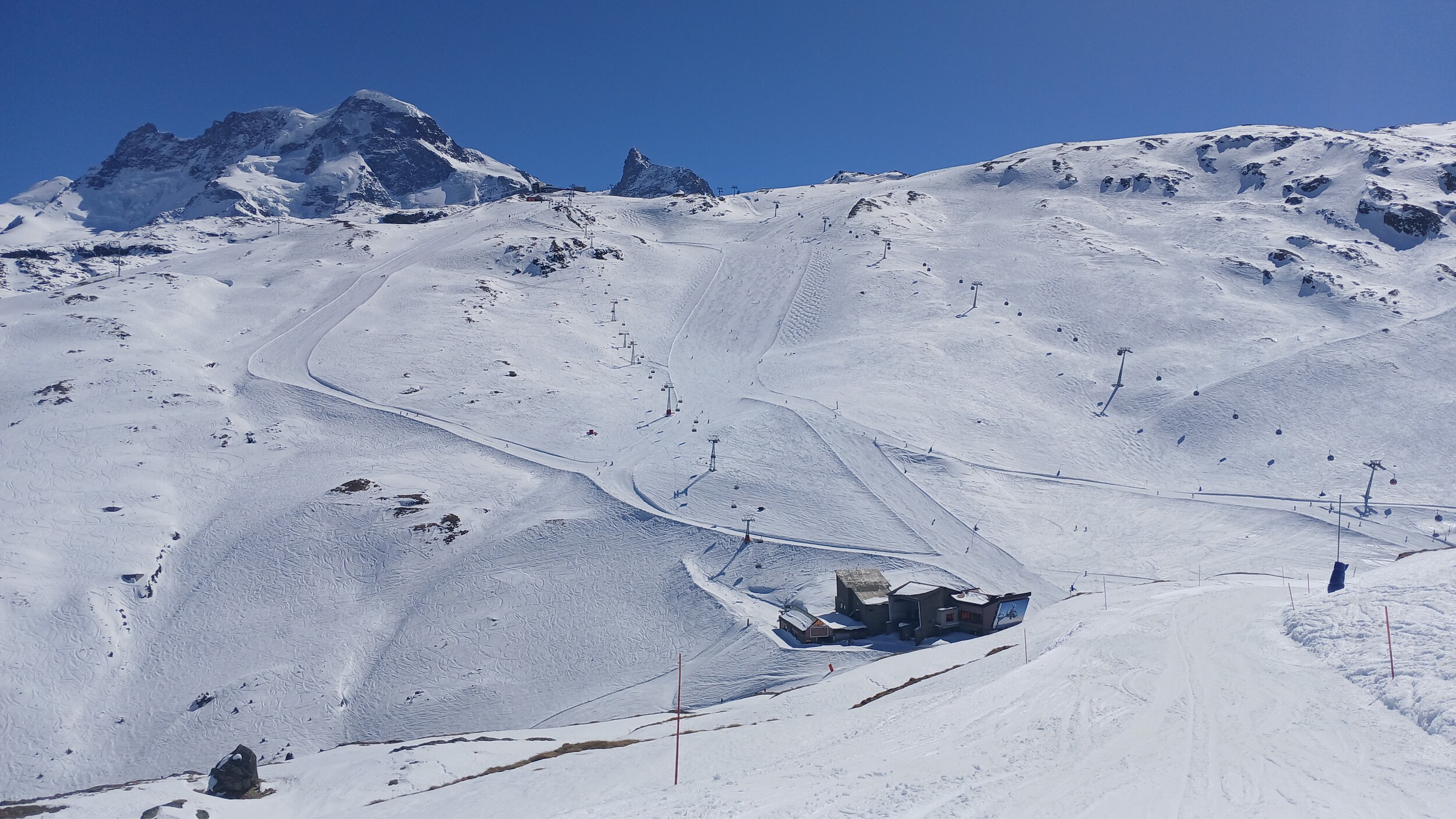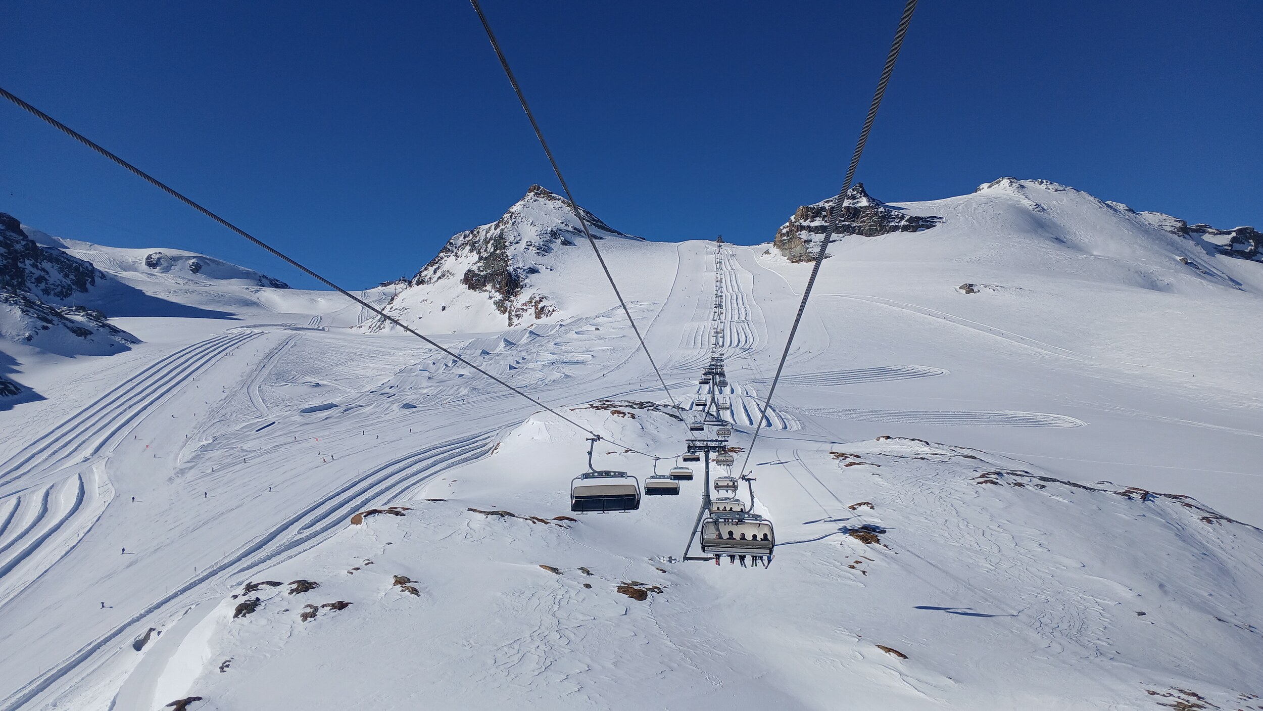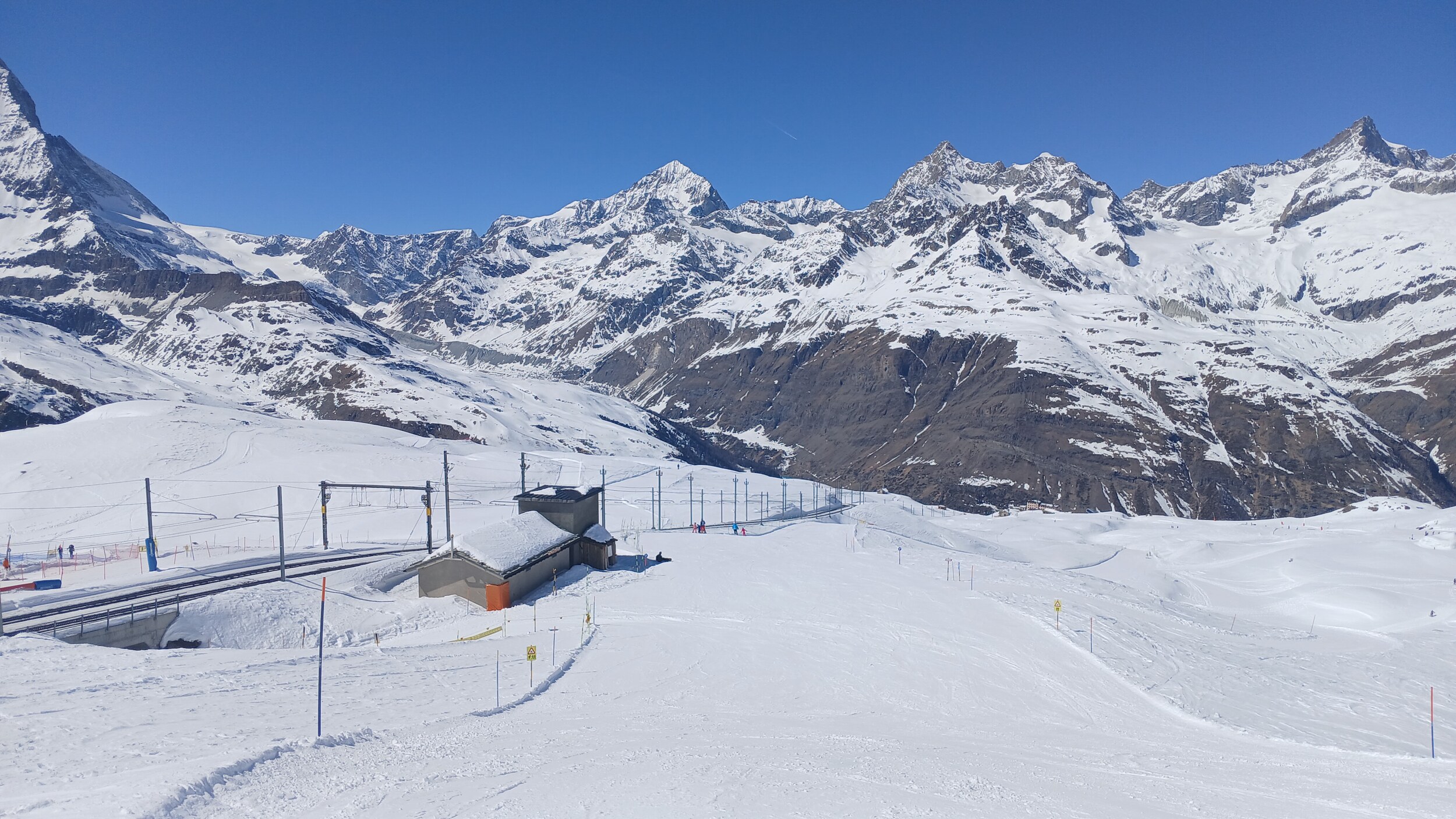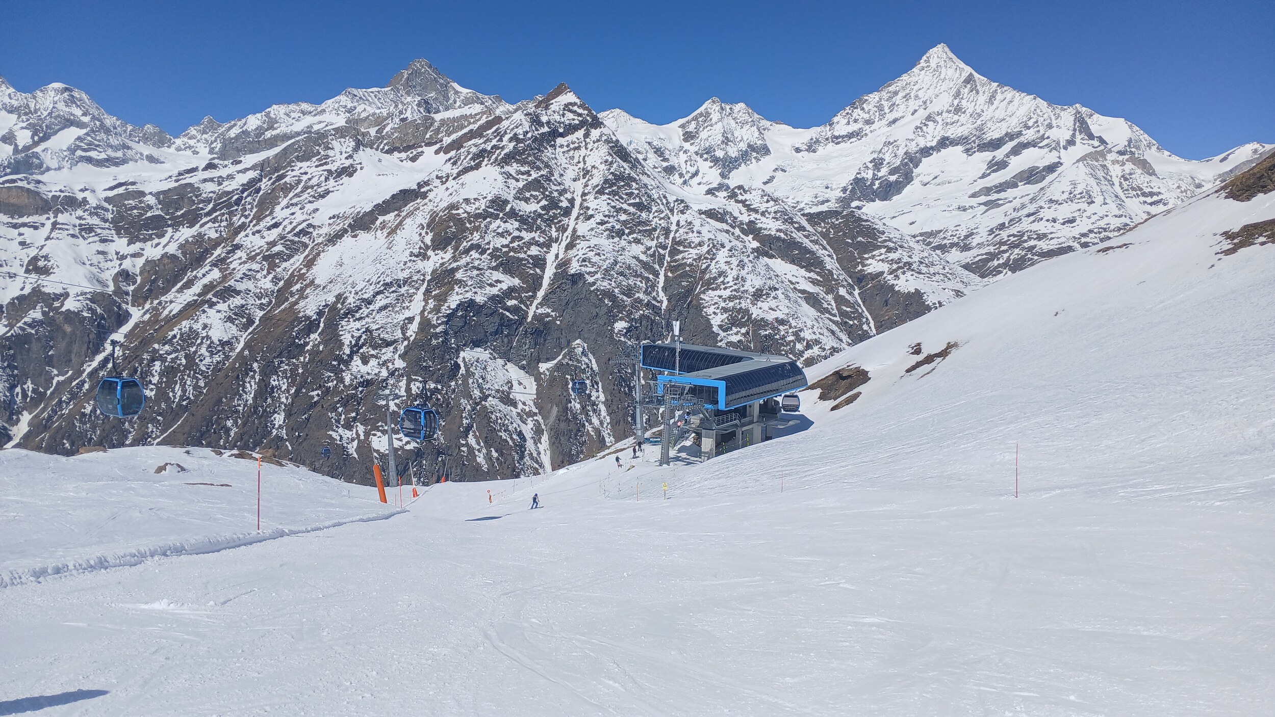 Die Pisten hier sind aber recht flach. Der Sommerskibetrieb dürfte eher langweilig sein und ich würde behaupten, dass die Zermatter Bergbahnen in nicht all zu ferner Zukunft Probleme bekommen, überhaupt noch ein ausreichendes Gefälle anzubieten, um alle Relationen aufrecht zu erhalten