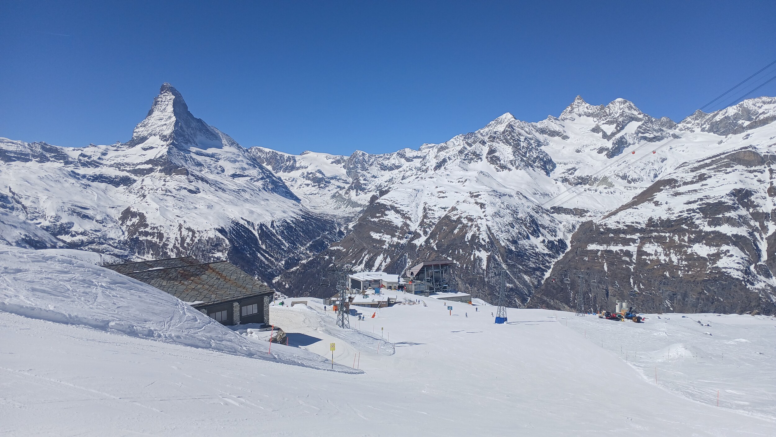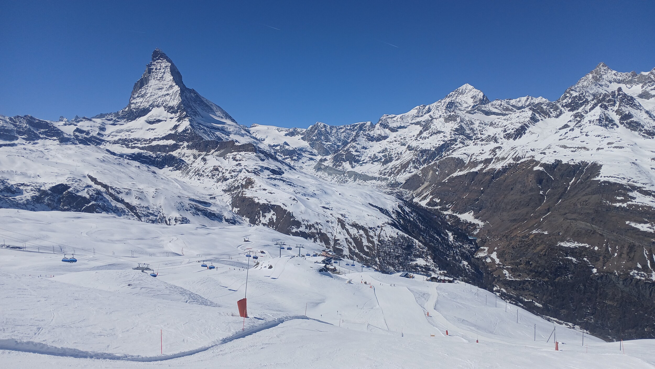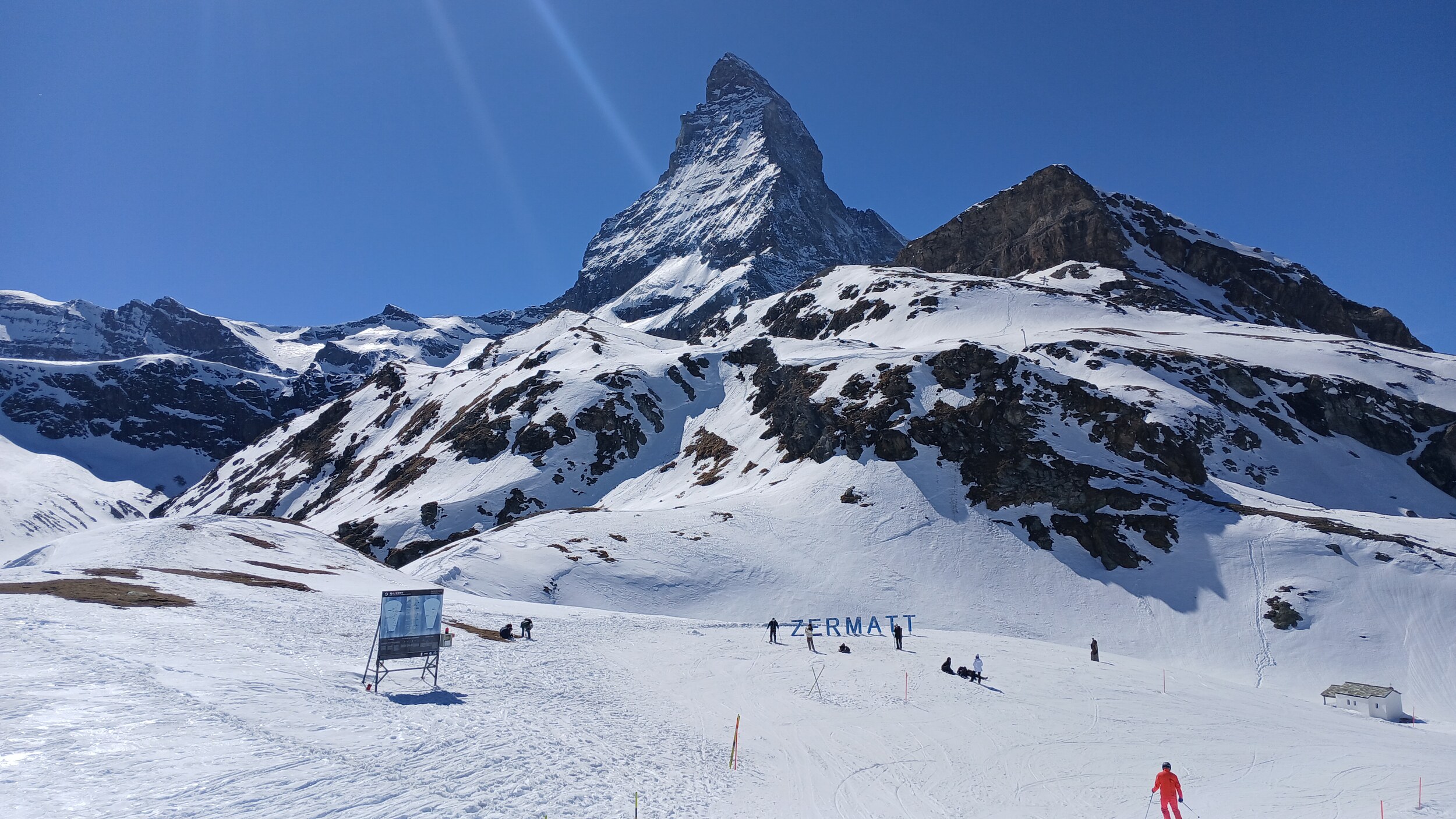 Die Landschaft ist eine Wucht. Das ist wirklich in dieser Hinsicht Premium hoch drei. Das Skigebiet selbst ist auch gut, aber da gibt es schon noch Luft nach oben (z.B teilweise alte Verbindungen wie PB Gant - Hohtälli) und auch andere Gebiete, die - wenn man rein das skifahrerische betrachtet - besser abliefern. Dennoch wird mich Zermatt wieder sehen. Die Berge hier sind schon besonders, aber ich muss auch eingestehen: 2 Tage im Gebiet hätten völlig gereicht. Drei Tage waren jetzt aber auch kein Weltuntergang und das Matterhorn kann ich von meiner Unterkunft ja auch noch ein paar weitere Tage genießen, auch wenn der Berg von der schweizerischen Seite schon deutlich schöner ist.