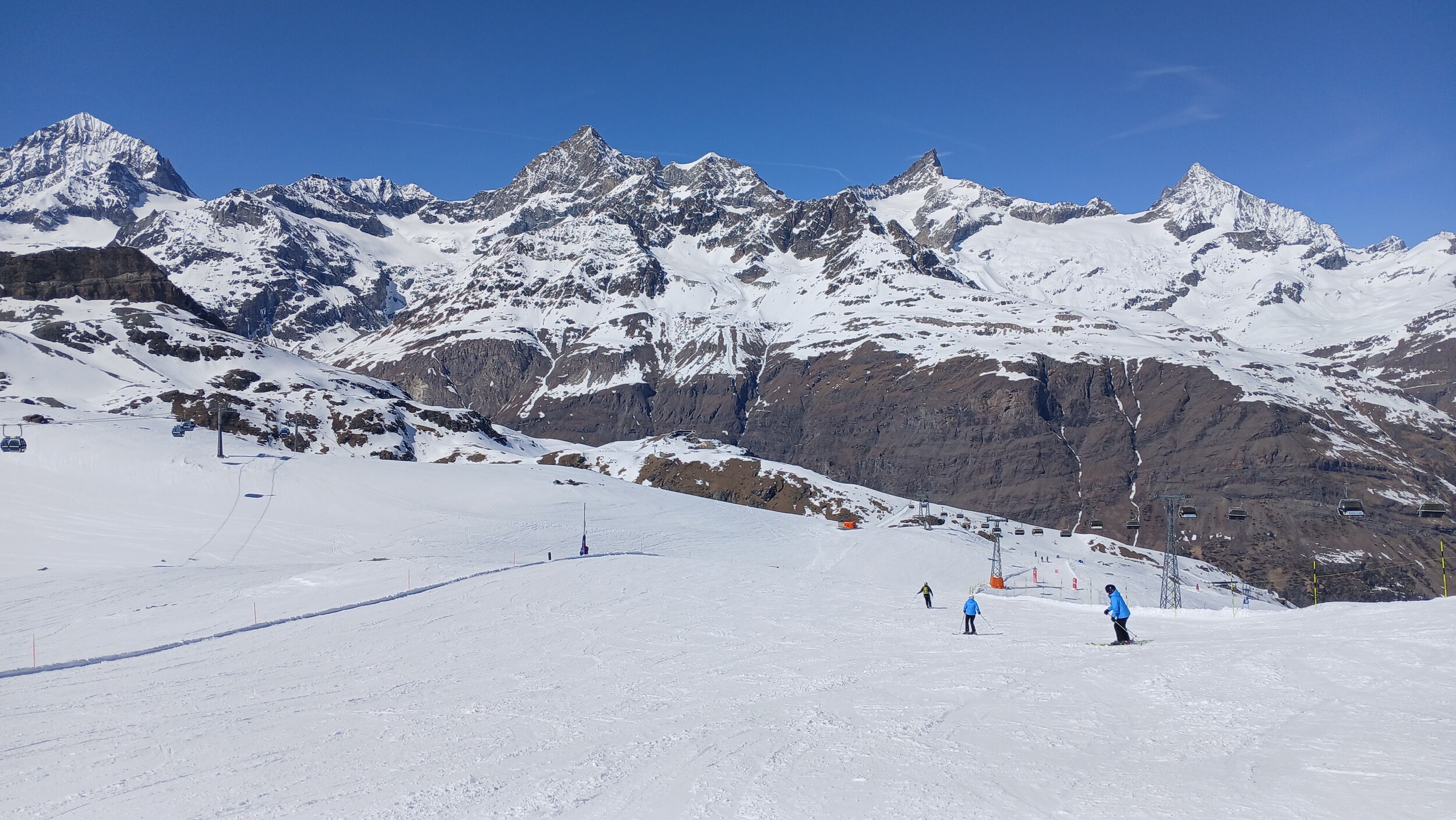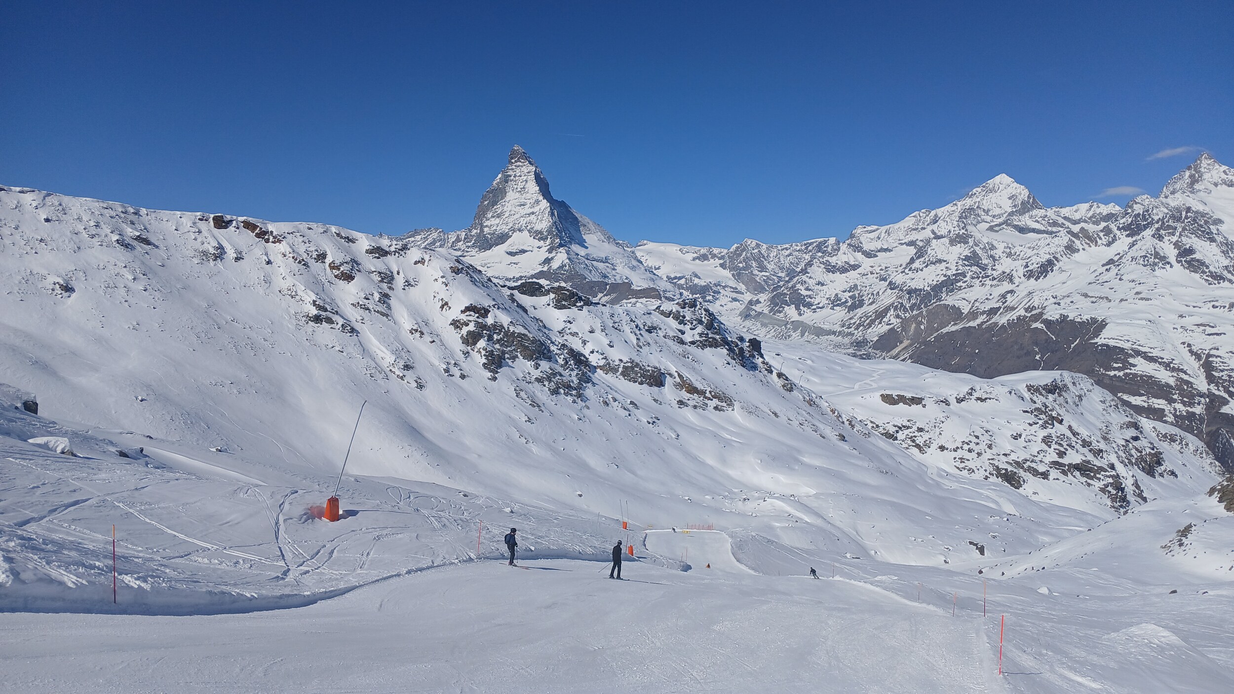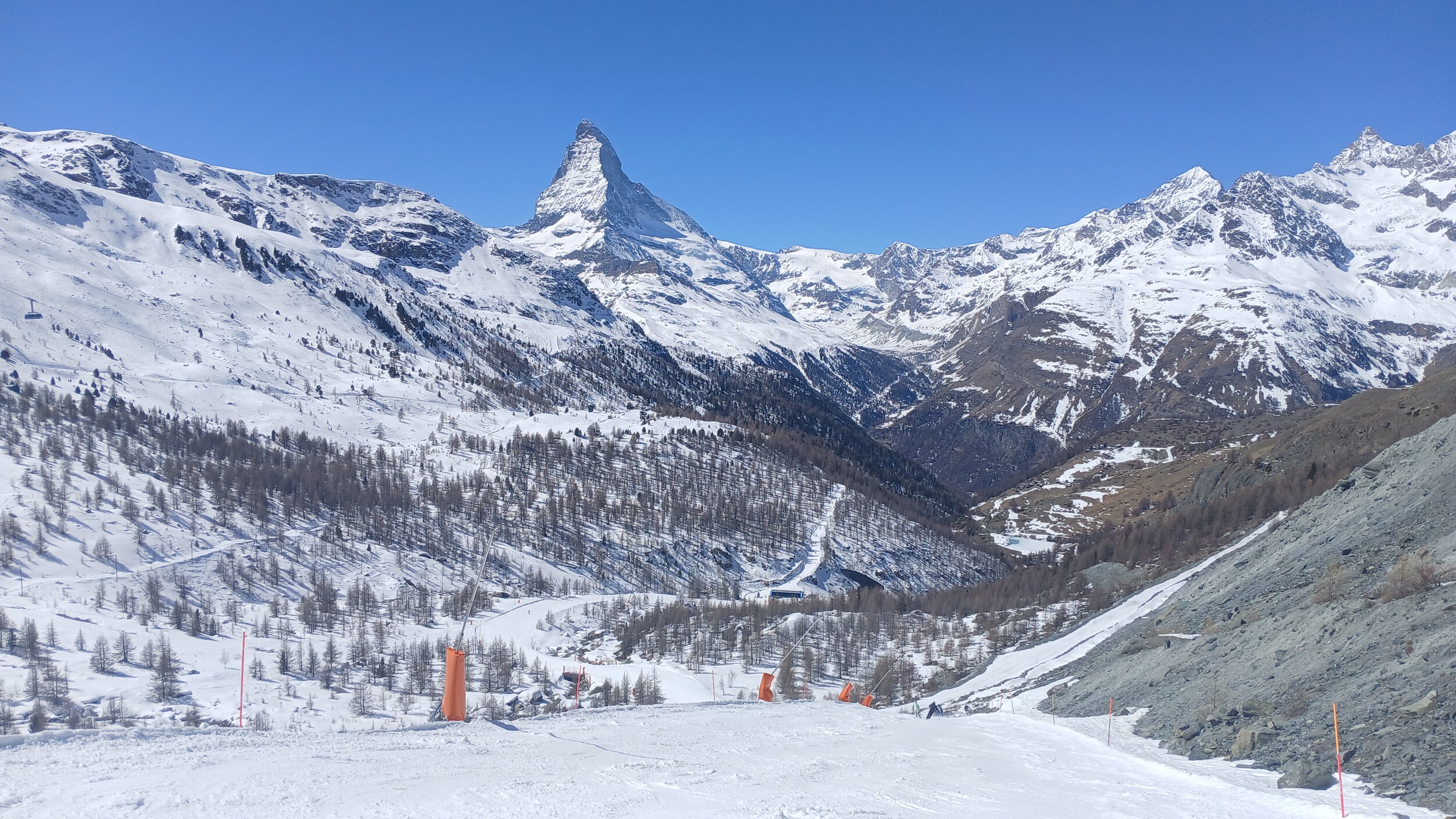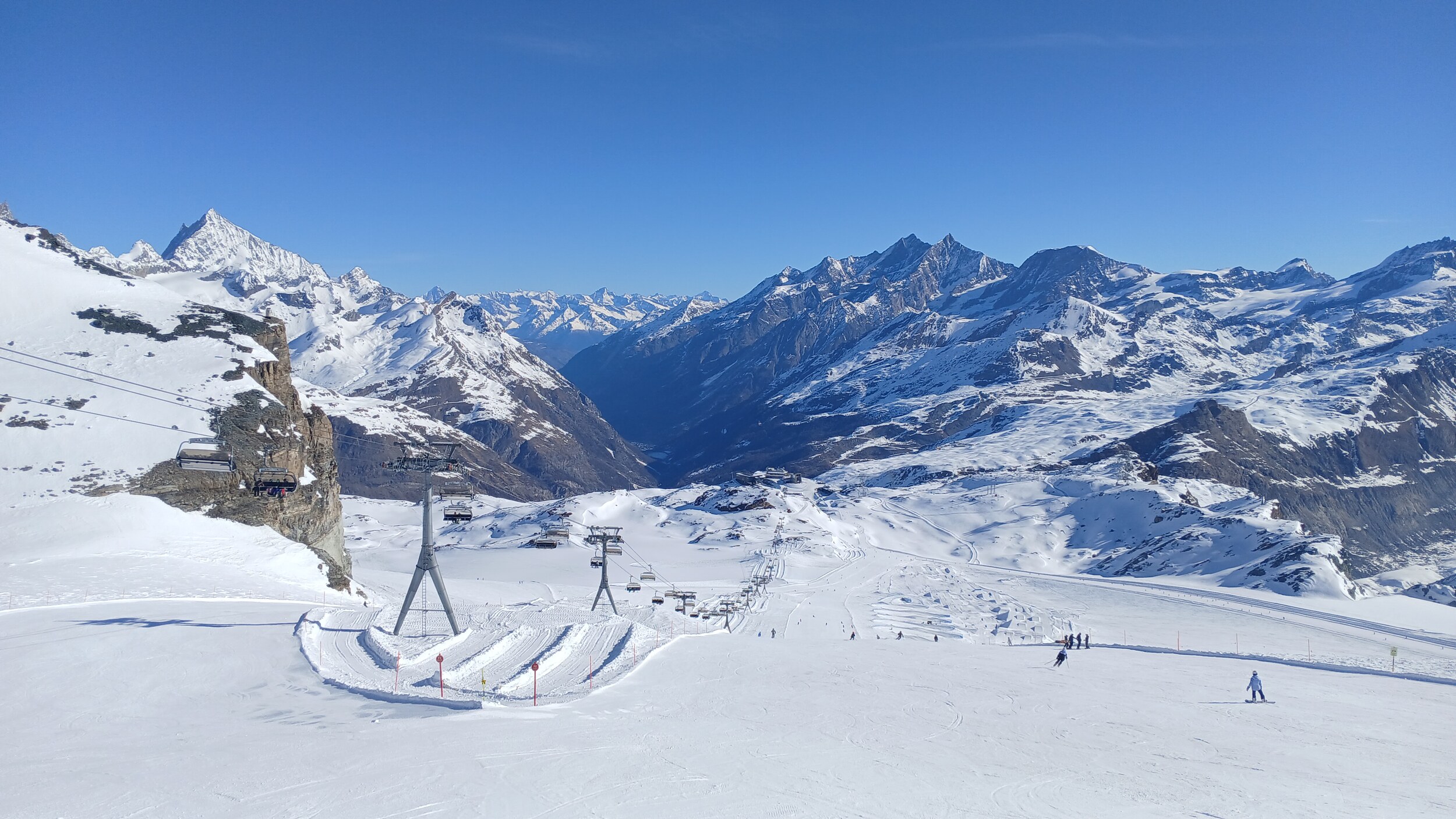 Die Landschaft ist eine Wucht. Das ist wirklich in dieser Hinsicht Premium hoch drei. Das Skigebiet selbst ist auch gut, aber da gibt es schon noch Luft nach oben (z.B teilweise alte Verbindungen wie PB Gant - Hohtälli) und auch andere Gebiete, die - wenn man rein das skifahrerische betrachtet - besser abliefern. Dennoch wird mich Zermatt wieder sehen. Die Berge hier sind schon besonders, aber ich muss auch eingestehen: 2 Tage im Gebiet hätten völlig gereicht. Drei Tage waren jetzt aber auch kein Weltuntergang und das Matterhorn kann ich von meiner Unterkunft ja auch noch ein paar weitere Tage genießen, auch wenn der Berg von der schweizerischen Seite schon deutlich schöner ist.