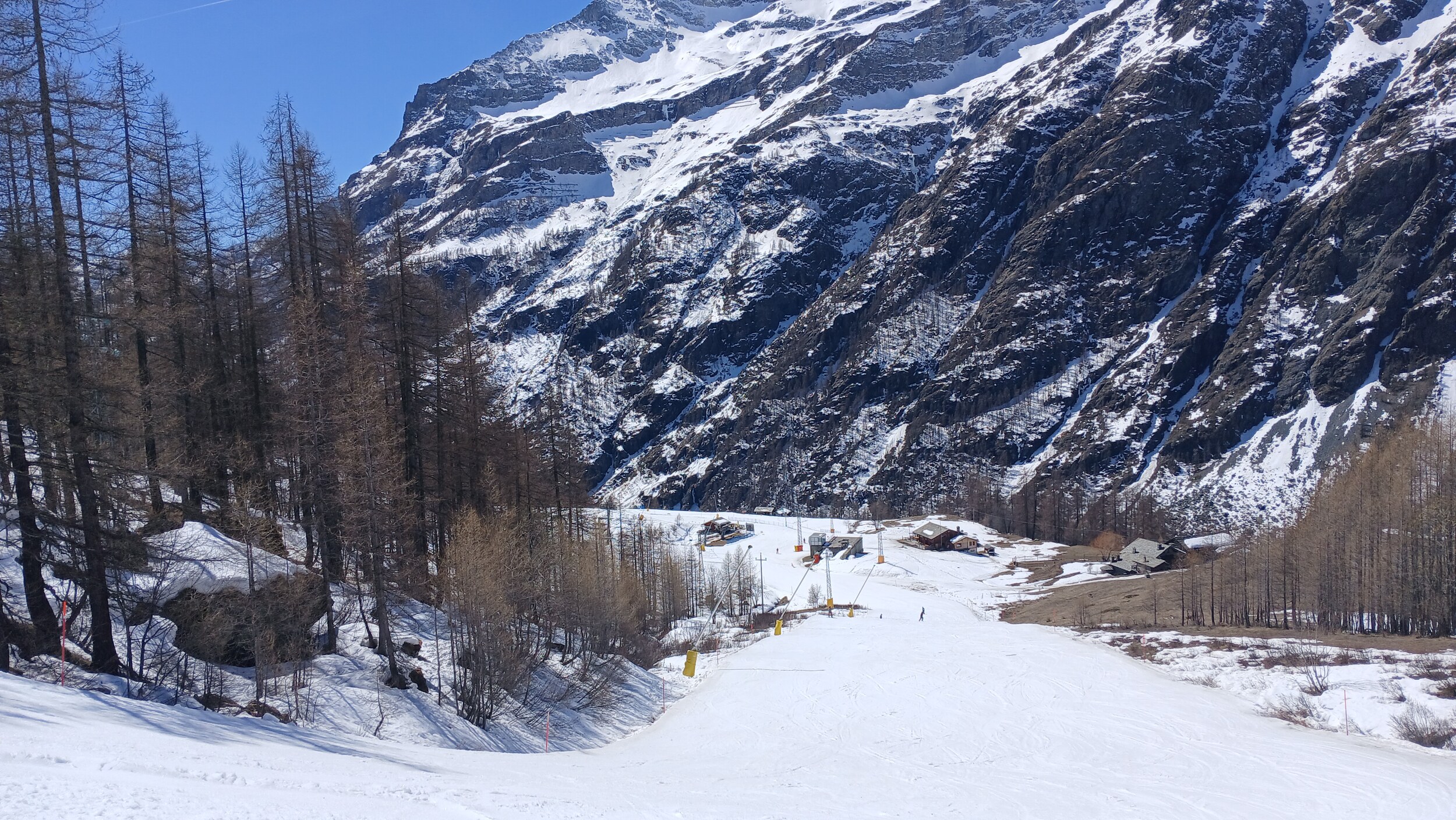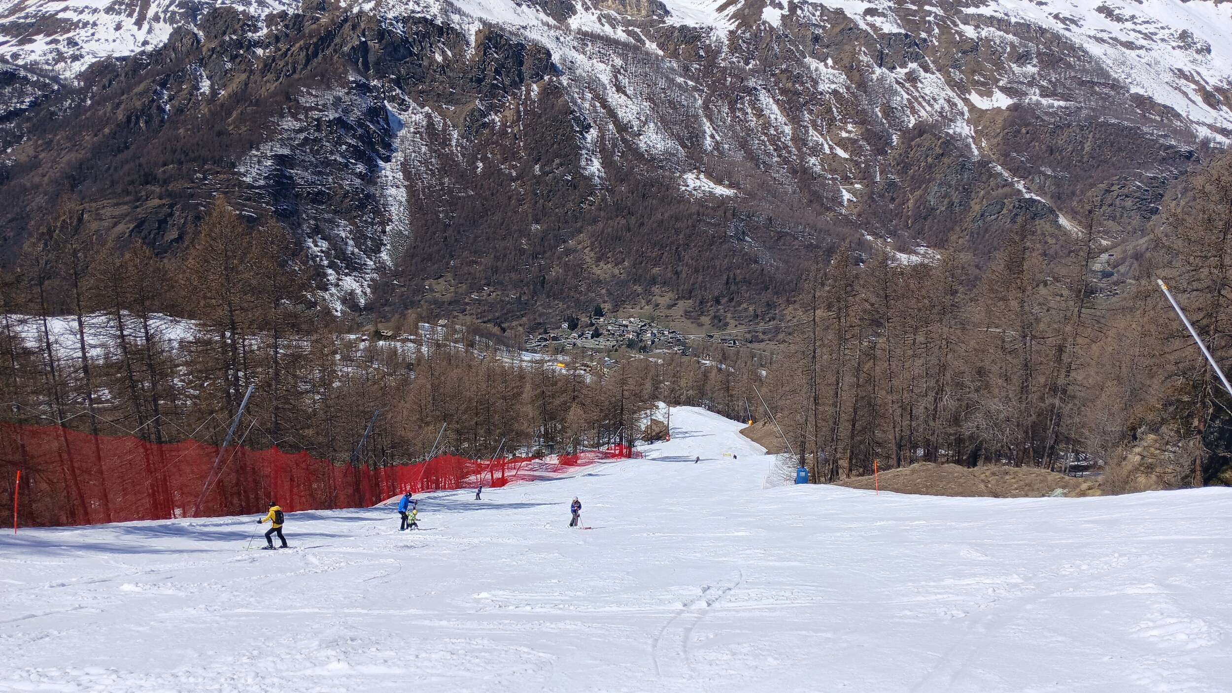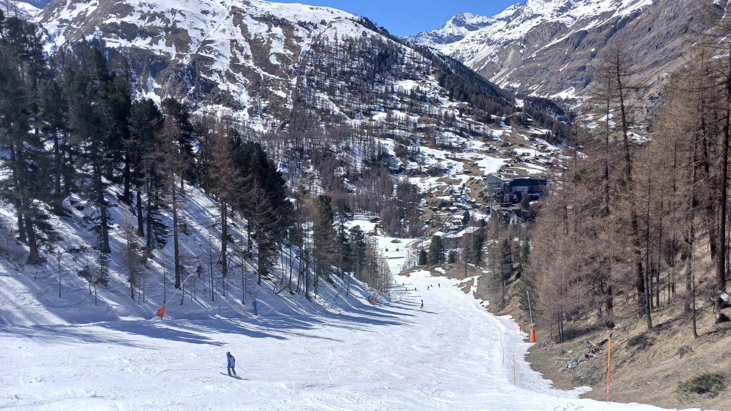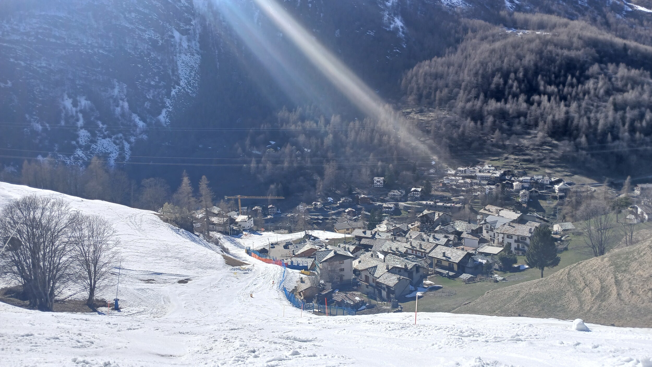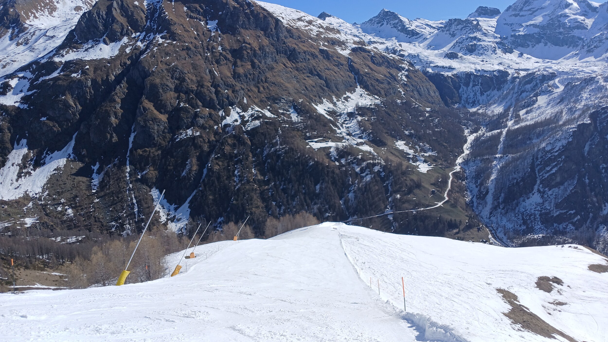 Blick auf die Mittelstation Crest. Die Schneebänder hier sind noch sehr dick.