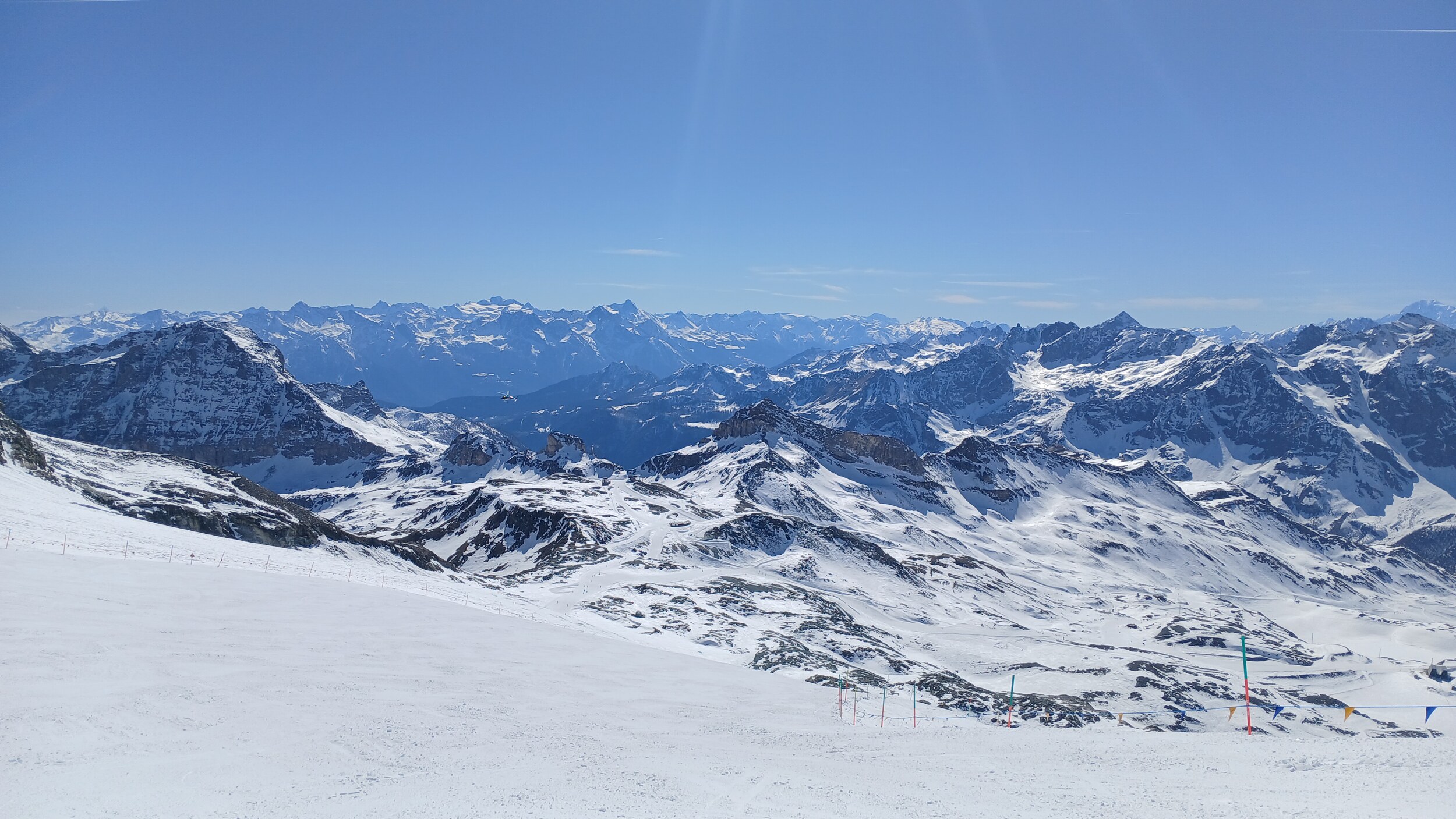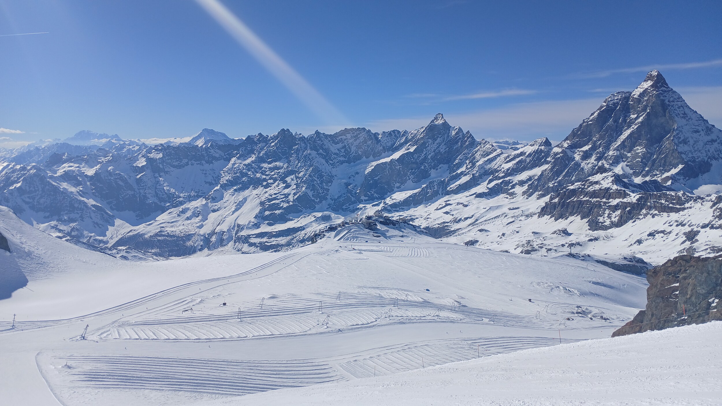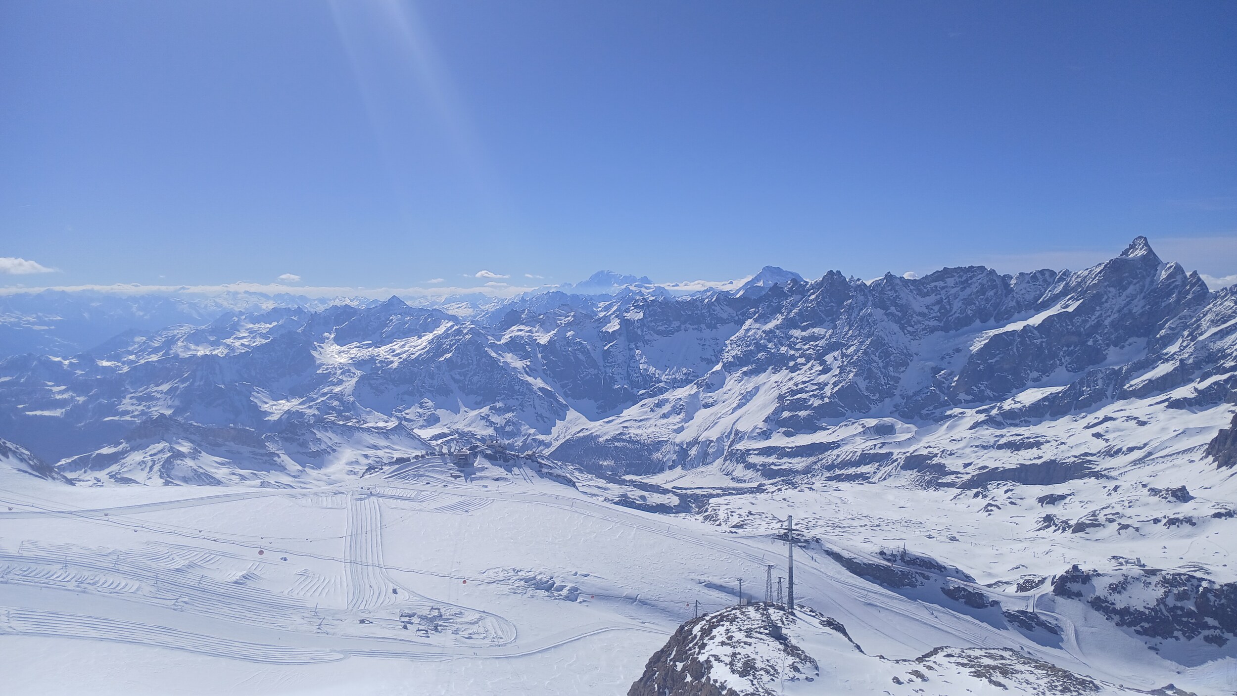 Fantastischer Ausblick vom Kleinmatterhorn auf das Gletscherskigebiet in Richtung Plateau Rosa