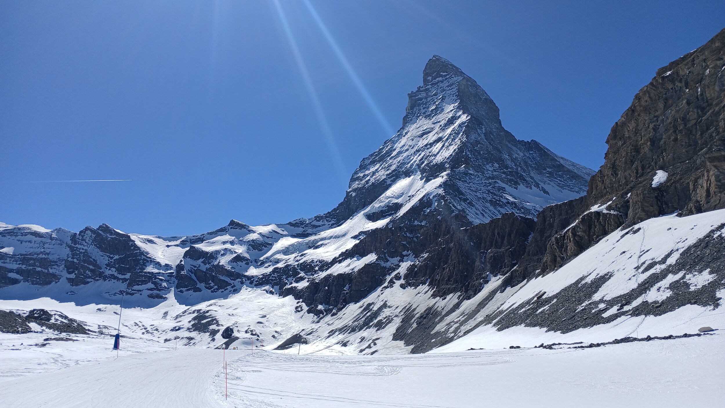 Das Matterhorn ist im Skigebiet allgegenwärtig, so wie hier z.B. auf der Gran Sometta 3