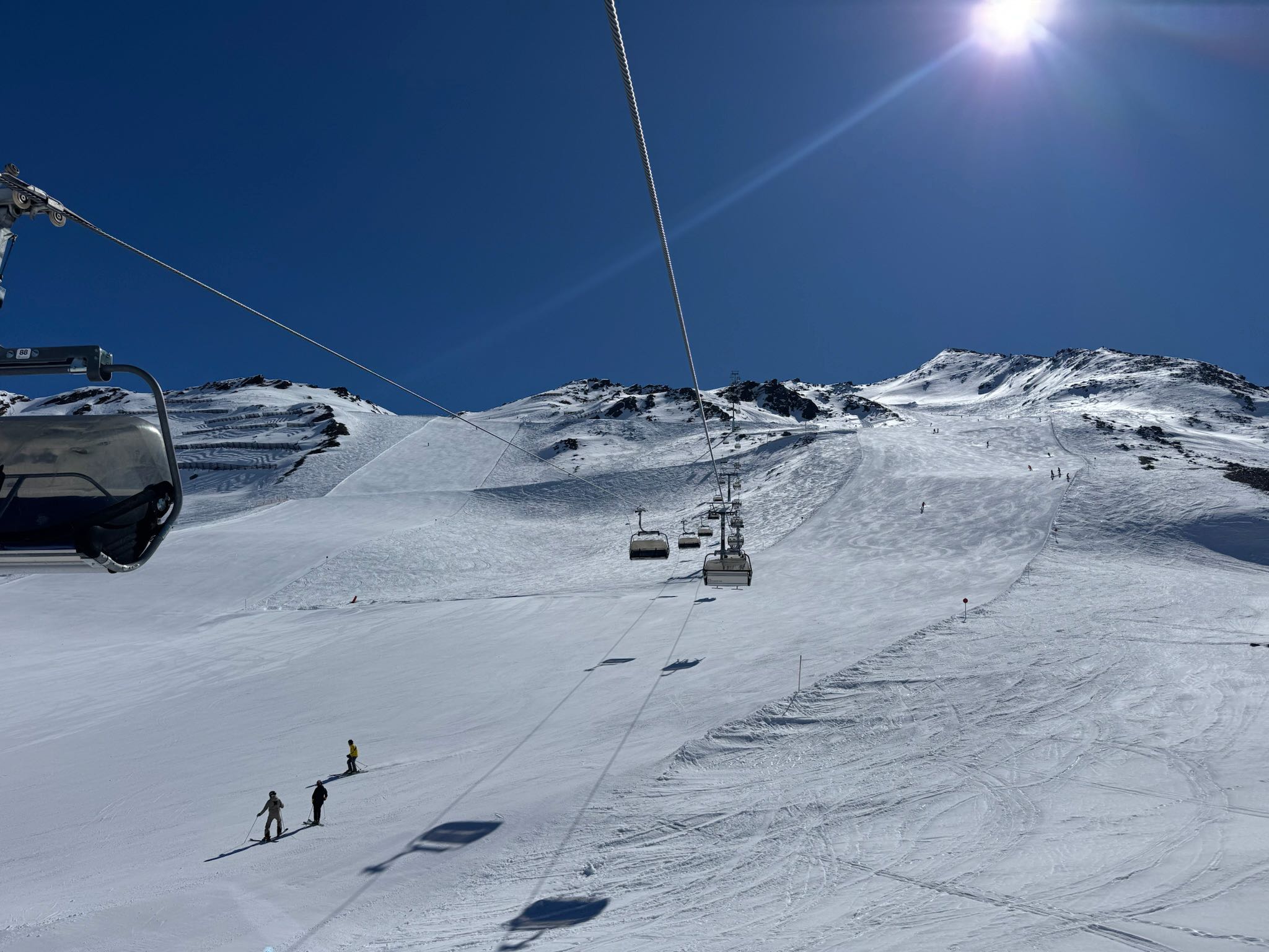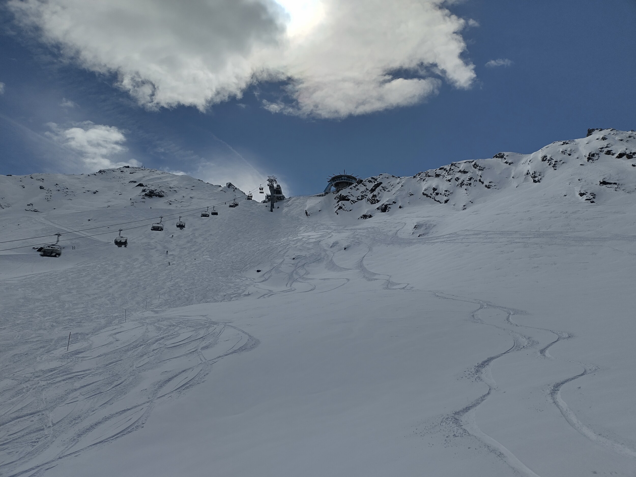 Wechsel nach Obergurgl, hier deutlich weniger los und Pisten oben gerade am auffirnen, macht viel Spaß, hier runter zur Festkohlbahn:PXL_20260409_104947546.jpg